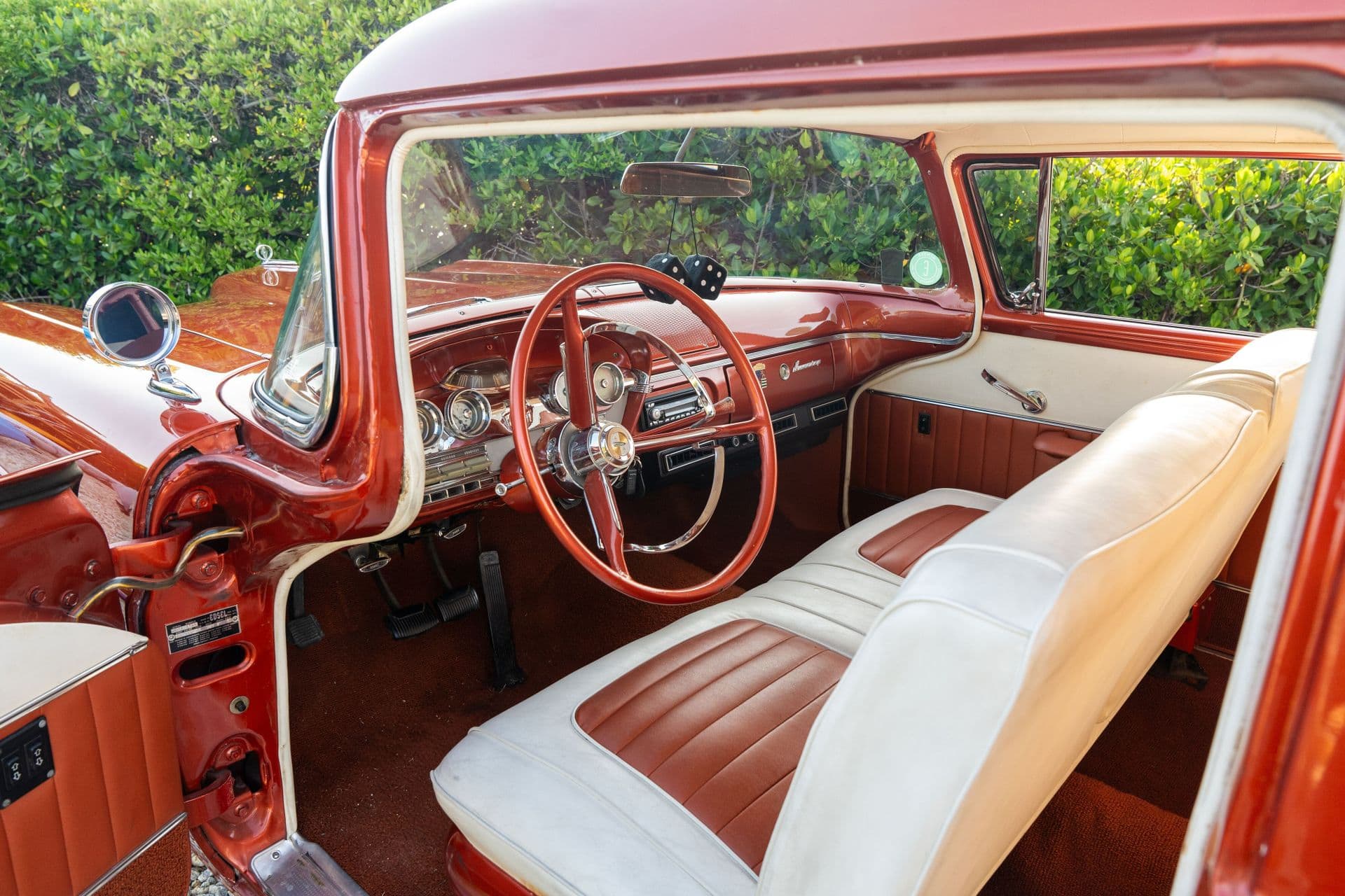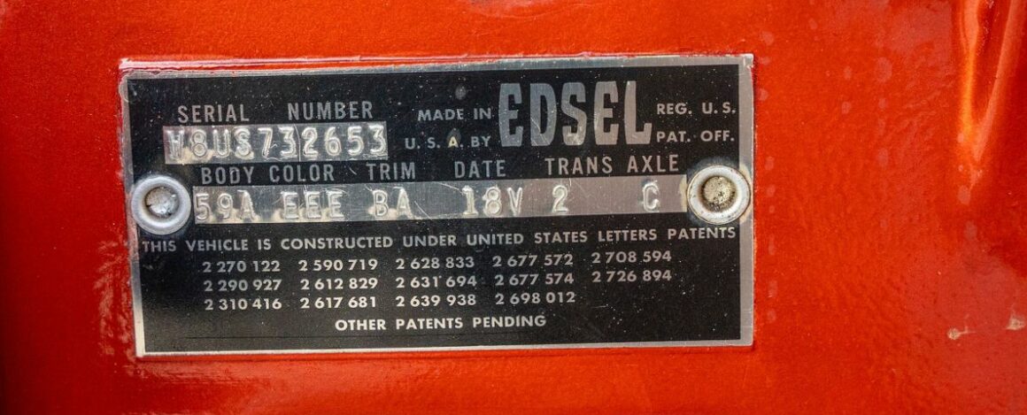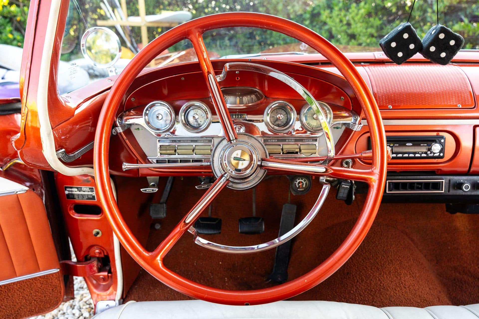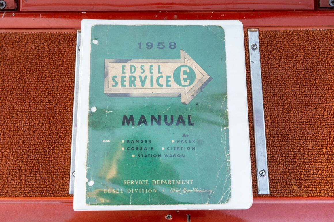 Il n’y a pas de jeu de direction, les pompes d’assistances ne fuient pas et les freins sont excellents de même que les pneus BFGoodrich Silvertown à flancs blancs larges. Ce véhicule dispose d’un titre de propriété vierge et d’une caisse pleine de documentation du suivi depuis son origine, dont toutes les factures et leurs reçus, la documentation d’achat originale y compris le bon de commande de Page Lowe Mercury Edsel de West Covina, en Californie…
