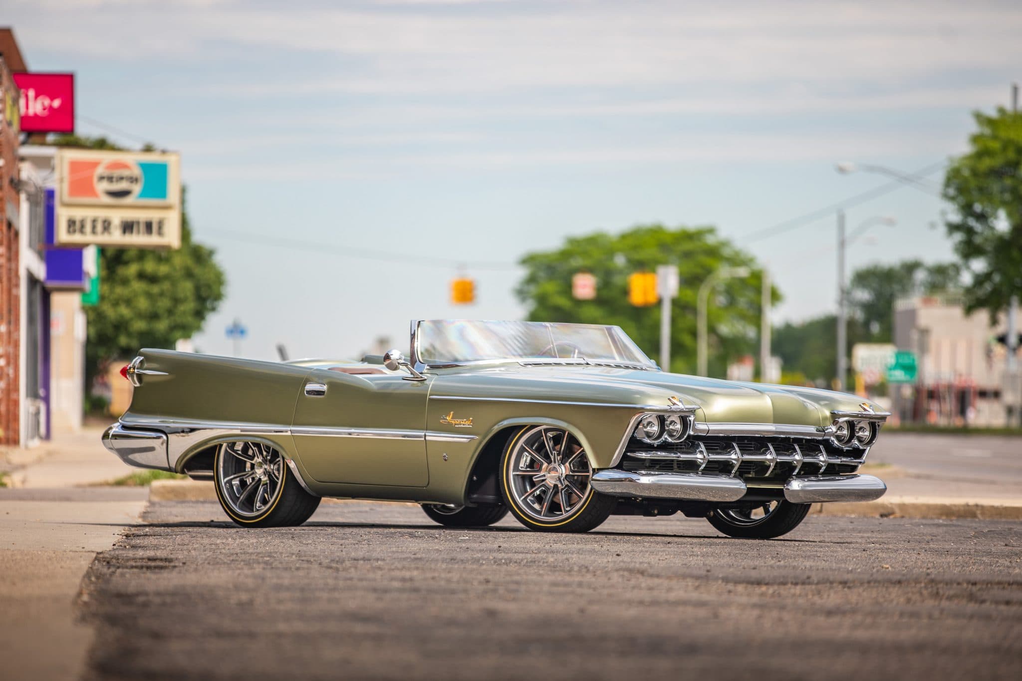 Au cours de l’un de ses nombreux moments de rêverie, Pfaff a conçu la Chrysler de sport qui aurait dû exister. Son père l’a aidé à trouver la voiture donatrice parfaite, une berline quatre portes Chrysler Imperial Crown de 1959 (un design “mix” de Virgil Exner, Harley Earl et Bill Mitchell) qui dormait depuis 35 ans dans une grange du nord de l’État de New York. Dans le panthéon des designers brillants, après avoir créé des classiques durables pour Pontiac, Studebaker, Lincoln et même Volkswagen (la Karmann Ghia 2 + 2), les trois designer de l’Impérial Crown s’étaient laissés aller aux nageoires caudales planantes, aux dents de calandre étincelantes, aux pare-chocs brillants et aux feux arrière style “passoire à moineau”, toutes folies reprises dans le Speedster de Pfaff. Après avoir été transportée au Michigan en 2007, les travaux de conversion ont commencé dans le garage de Murray Pfaff.