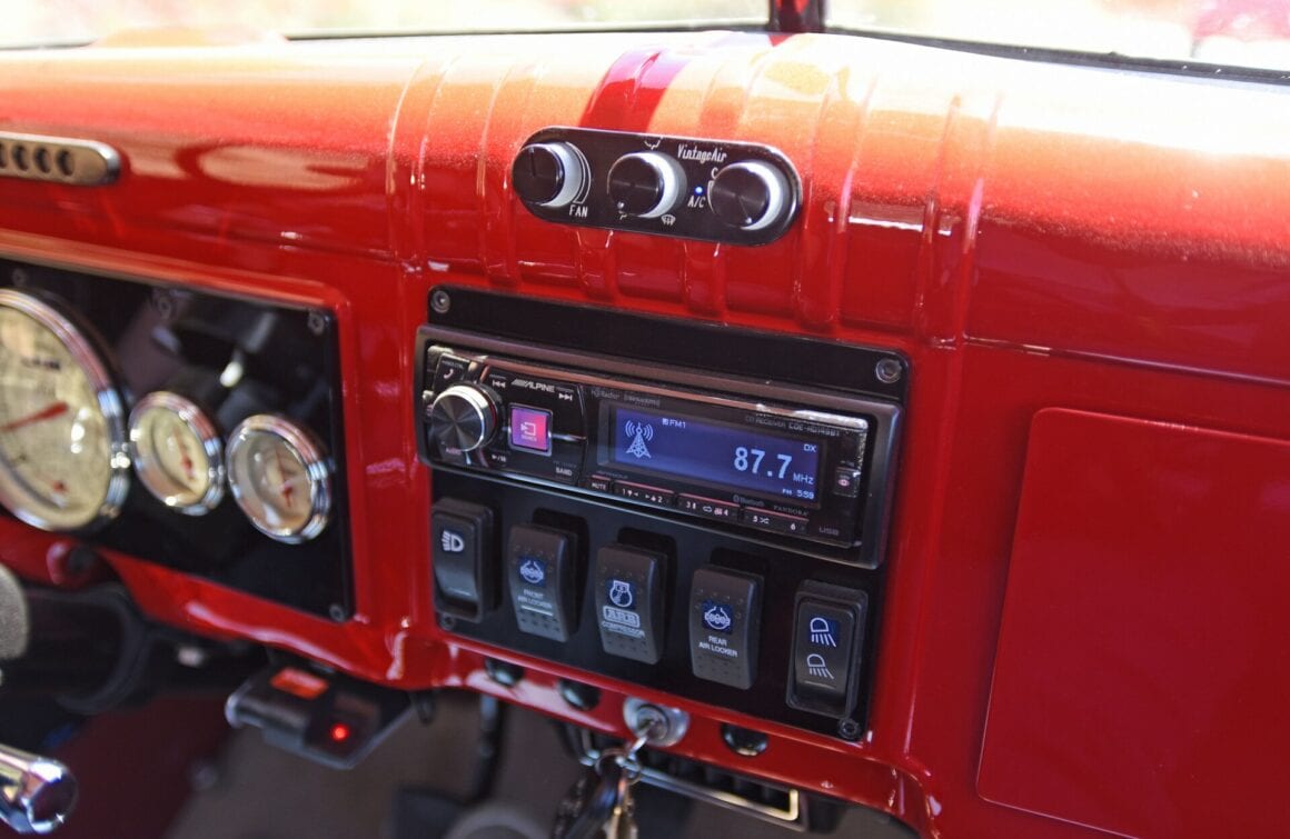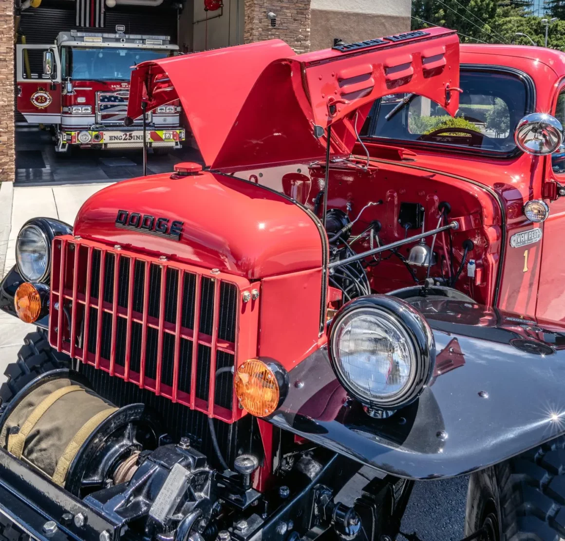 Le Dodge Power Wagon à carrosserie en acier est parfois surélevé sur des jantes de 20 pouces et des pneus de 53 pouces reliés à des essieux militaires de 2,5 tonnes. Baigné de teintes militaires comme le “gris cuirassé” c’est toutefois en rouge qu’il frappe les imaginations qui sont toutes reliées par les camions de pompiers qui faisaient rêver les jeunes mecs encore puceaux.
