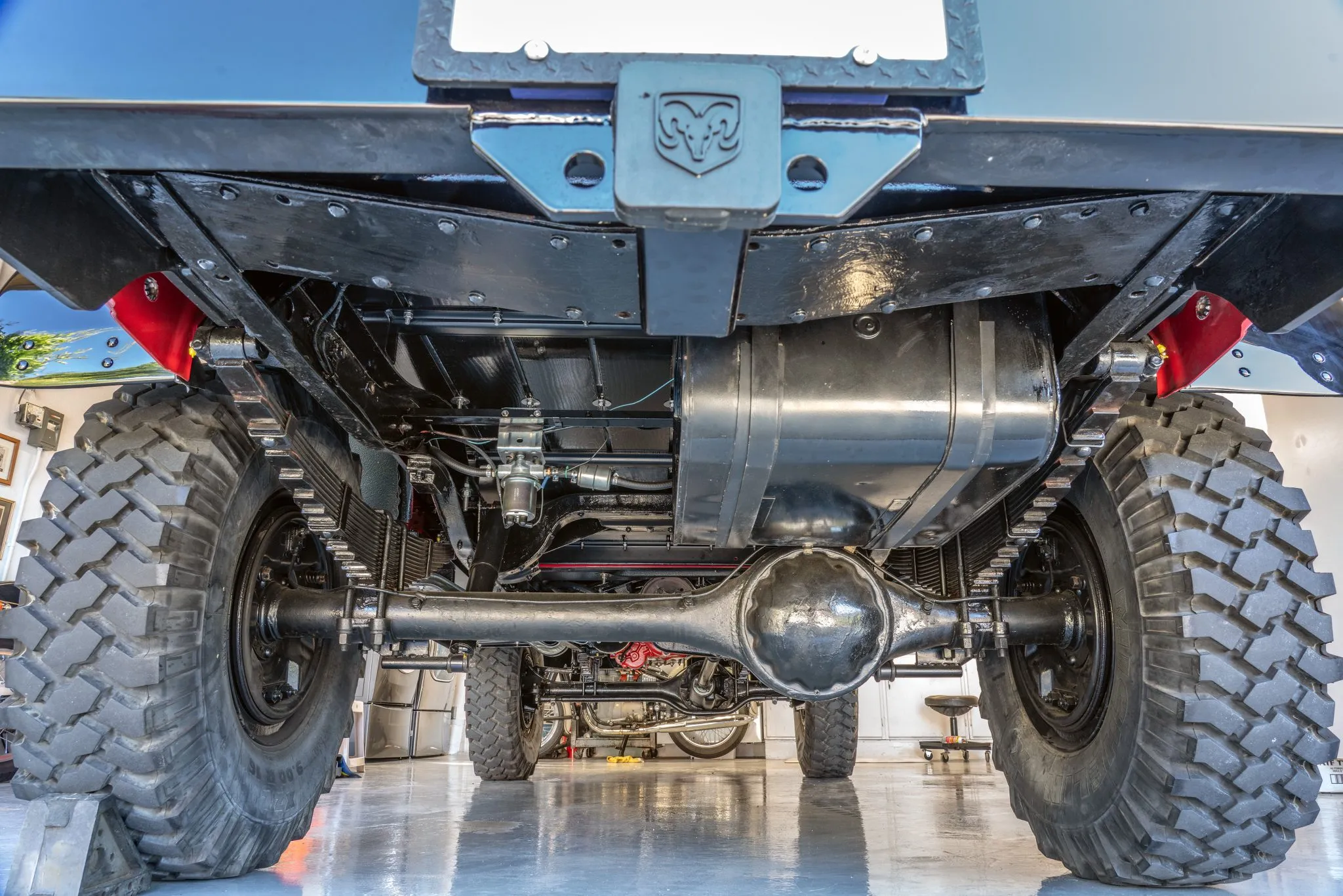 Une boîte de transfert Advance Adapters Atlas est la version standard, bien que d’autres boîtes de transfert puissent être utilisées si vous le commandez. La quincaillerie d’essieu Dynatrac ProRock est la norme sous les Legacy Power Wagons, et les spécifications typiques sont de 80 à l’arrière et de 60 à l’avant. Les ProRock 80 sont équipés de tubes de 4 pouces et d’arbres à 40 cannelures. Le rapport de 4,56 est un point de départ, mais les 5,13 s sont disponibles.