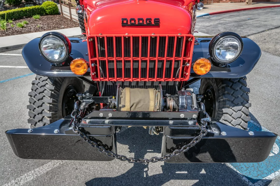 Et aussi à refaire la carrosserie en rouge. L’intérieur a été garni de cuir noir et la puissance provient d’un six cylindres en ligne dont j’ai causé dès le début de cet article… Le Dodge Power Wagon occupe une place unique dans l’histoire du 4×4, outre les diverses itérations de Jeeps utilisées avec succès dans le monde entier pendant la Seconde Guerre mondiale qui ont catapulté la popularité toujours croissante des Jeeps.