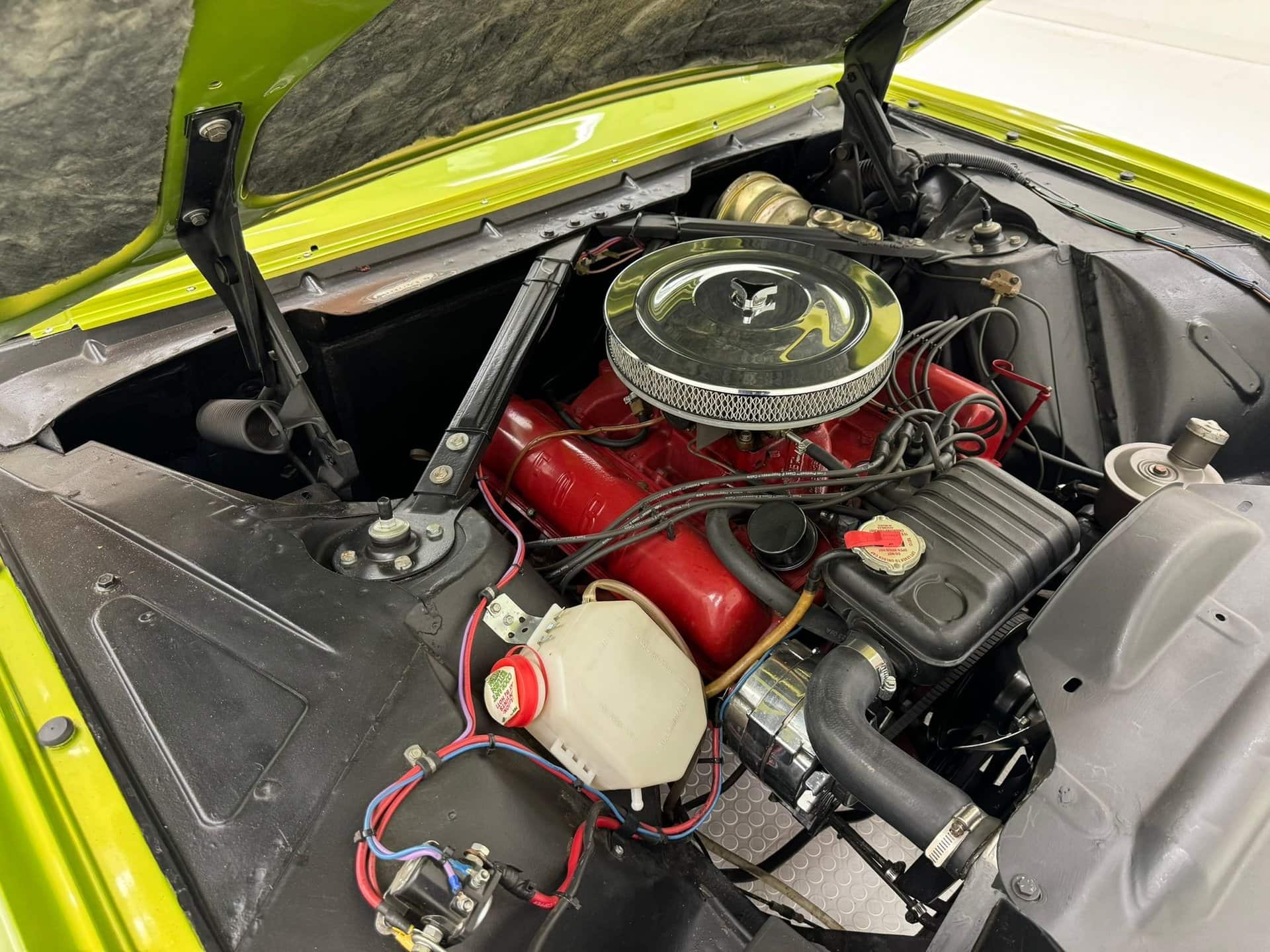 De plus, le compartiment moteur n’est malheureusement pas à la hauteur des V8 avec Blowers montés sur des Hot Rod’s… Le V8 390ci surmonté d’un carburateur à 4 corps et relié à une transmission automatique Cruise-O-Matic à 3 vitessesest malheureusement “convenu”… La puissance est envoyée à l’arrière où une pont Ford 9” avec un rapport 3,00 se charge du job… Des freins à tambour assistés sont fournis à l’avant et à l’arrière. En dessous de “la chose” il y a diverses zones de rouille de surface, un peu d’huile sur le différentiel arrière et quelques saletés générales héritées de la route lorsque la bête y parvenait encore. Nous notons deux zones de patching précédent sur la monocoque arrière. Le double échappement quitte le moteur indépendamment puis entre dans deux silencieux MagnaFlow et se décharge juste avant l’essieu arrière sous la voiture. Les ressorts hélicoïdaux se trouvent dans la suspension indépendante avant tandis que les ressorts à lames gèrent la charge à l’arrière.