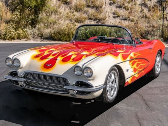 L’intérieur a été refait dans un mélange de vinyle marin imperméable… La version de Lamm de la célèbre Ferrari à poil de souris et des sièges récupérés avec des inserts en tissu GM des années 1950 à carreaux. L’assemblage final, le réglage et la configuration ont été effectués par John Ficarra, vétéran de Canepa de Ficarra Classics, dont le travail comprenait des révisions de la géométrie de la suspension, de la structure de la pile à combustible, d’un radiateur haute capacité unique, et plus encore. Dans un trait de génie coloré, une couche de peinture très appropriée a été appliquée avec d’innombrables boulettes de viande blanches qui ont été ultérieurement poncées. Un ensemble de pneus radiaux Hankook Kinergy 225/70R15 (arrière) et 205/65R15 (avant) ont été installés en 2020. Parmi les autres détails historiquement critiques, citons d’abord un pare-brise Studebaker de 1949-52,…
