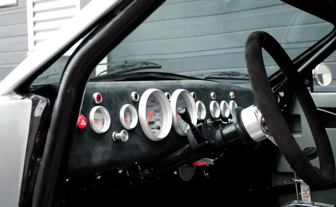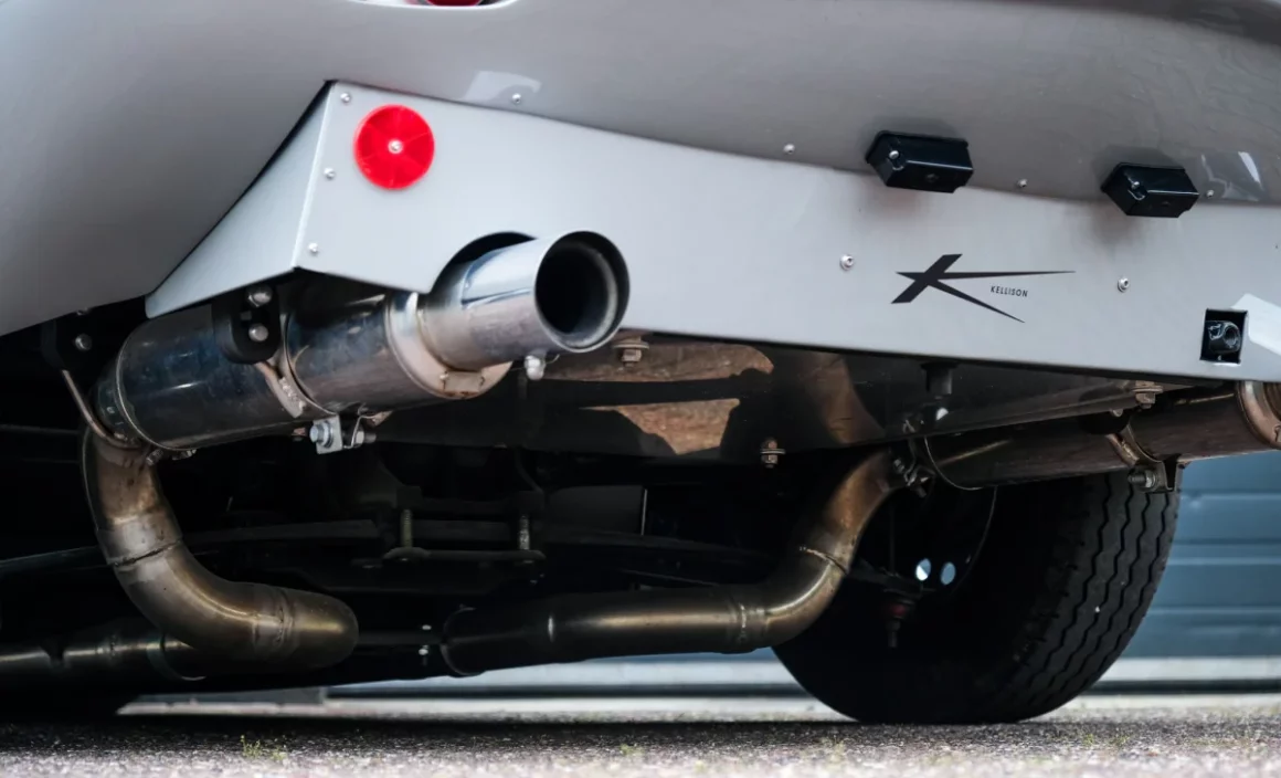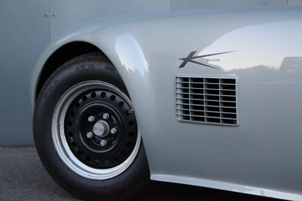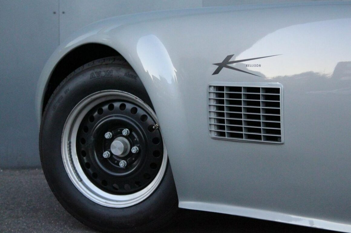 Les détails dans les montants de porte et sous le capot, des zones où les voitures de cette origine donnent souvent lieu à des finitions “maison” de moindre qualité avaient été étonnement bien exécutées de même que le capot et les portes qui présentaient des espaces étonnamment bons et un ajustement approprié à la carrosserie, s’ouvrant et se fermant facilement. C’est une caractéristique régulièrement absente des voitures en fibre de verre construites à la main. Le travail lumineux extérieur se limitait toutefois à une garniture légère soulignant l’ouverture latérale, des enjoliveurs centraux de roue de marque Kellison et un emblème de capot singulier, tous minimalistes et bienvenus dans cette conception. Les détails de la carrosserie comprenaient une légère réduction du bord de la culbuteuse permettant une sortie d’échappement latérale, une petite pelle de capot et des ouvertures d’ailes arrière…