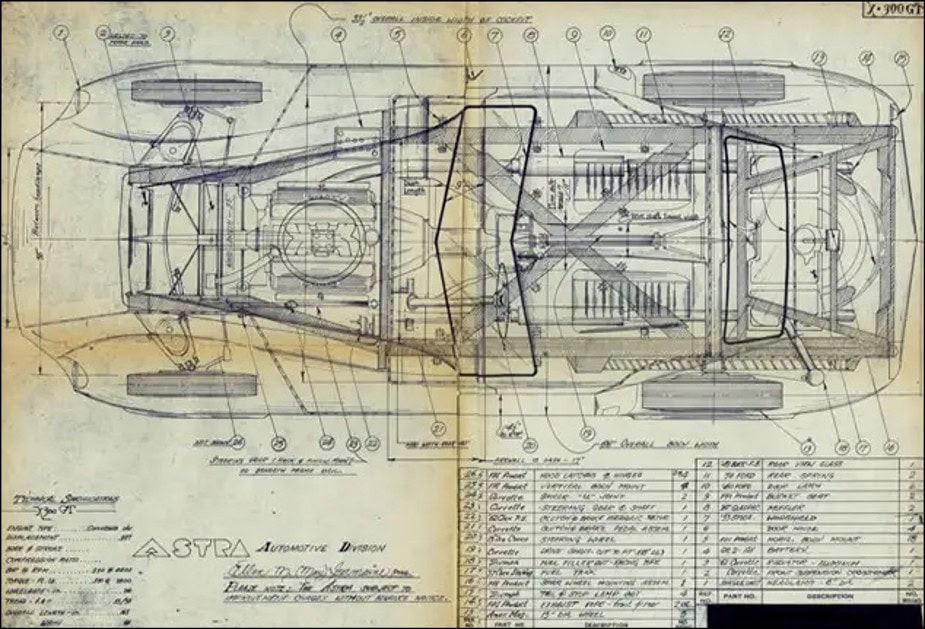 La voiture porte l’évolution finale du design du coupé à deux phares de Kellison, qui sera vendu par le partenaire de Kellison à son rival Allied sous le nom d’Astra X300-GT jusqu’à la fin des années 1960, uniquement pour faire chier Kellison pour une affaire monnayable de 676 dollars… Le musicien californien et passionné de voitures de sport Skip Snyder a sauvé la voiture d’un dépotoir, la faisant revivre à un niveau basique de Rat-rod compatible avec la plupart des minables constructions d’époque. De Snyder, la voiture est passée par le garage Fantasy Junction en 2014 qui a vendu l’épave à Jay Lamm, rédacteur en chef de magazines minables et organisateur d’événements “citron” pour bouseux fauchés, qui a entrepris de réexécuter complètement l’exemple dans la langue vernaculaire européenne GT initialement envisagée par Kellison.