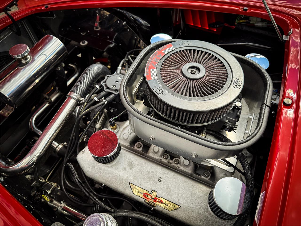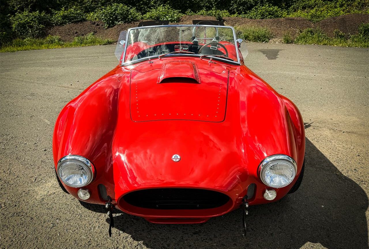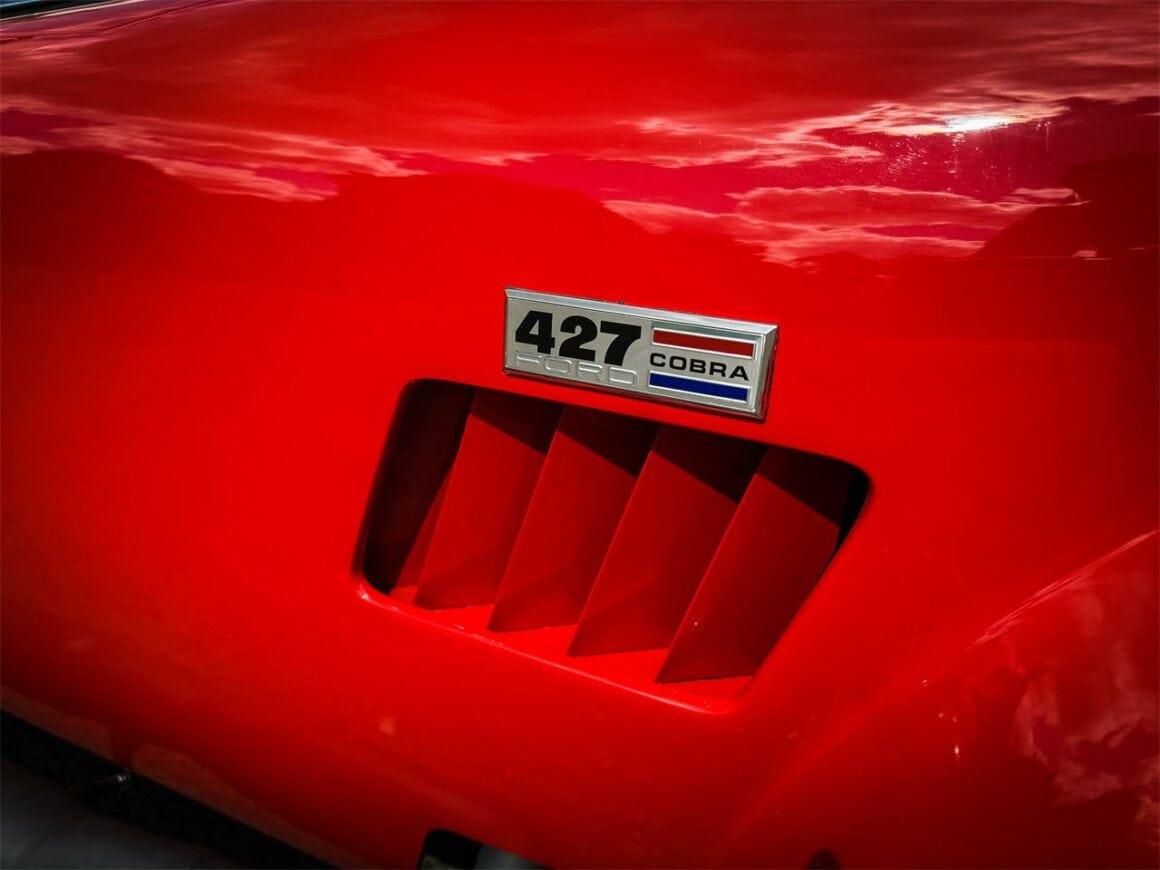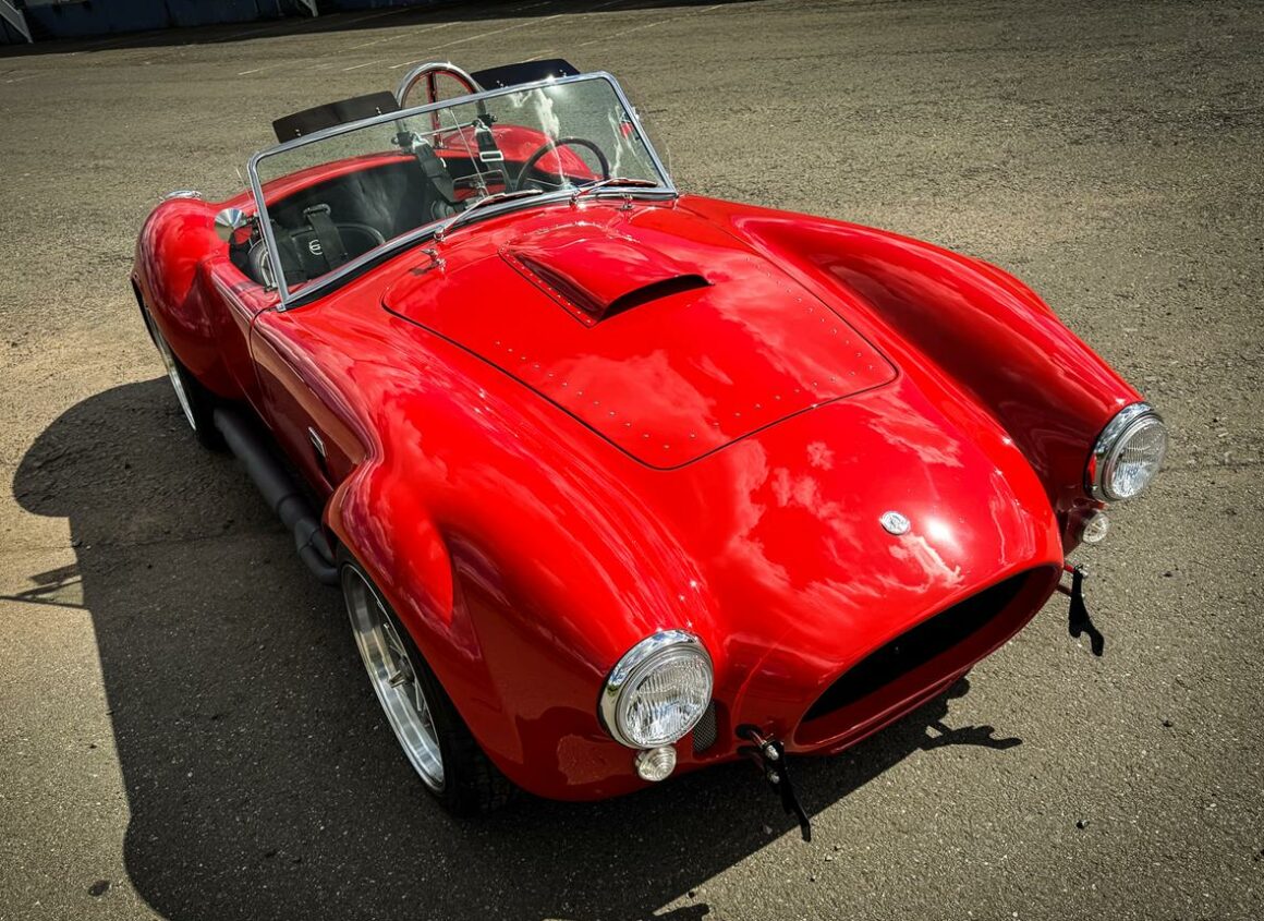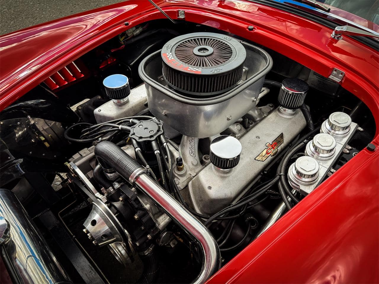 Fini à l’origine en Ford Race Red sans bandes et propulsé par une Ford Racing 427ci avec un système FAST EFI à double quadruple corps, la bête a fait l’objet de nombreuses améliorations depuis lors. Pour la construction initiale, une édition Heritage a été créée qui comprenait quelques modifications de garniture de « style d’époque », y compris l’ensemble de pare-brise chromé sur laiton (avec renfort central), un tableau de bord gainé de cuir avec des instruments de style Stewart Warner dans la disposition d’origine, une barre de harnais pour les courroies latérales de conduite, un levier de vitesses courbé vers l’avant et des feux arrière rectangulaires comme les Cobra 427 d’origine. Le propriétaire a mis à jour le groupe motopropulseur complet avec Holley Sniper EFI, AFR 205 Heads, Edelbrock Victor Sr Intake, Comp Cams Solid Roller Camshaft, entre autres améliorations.