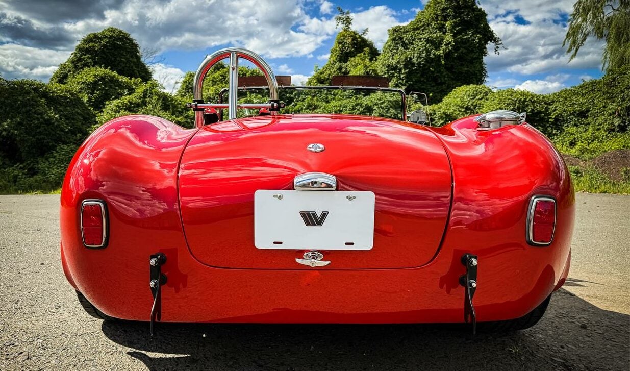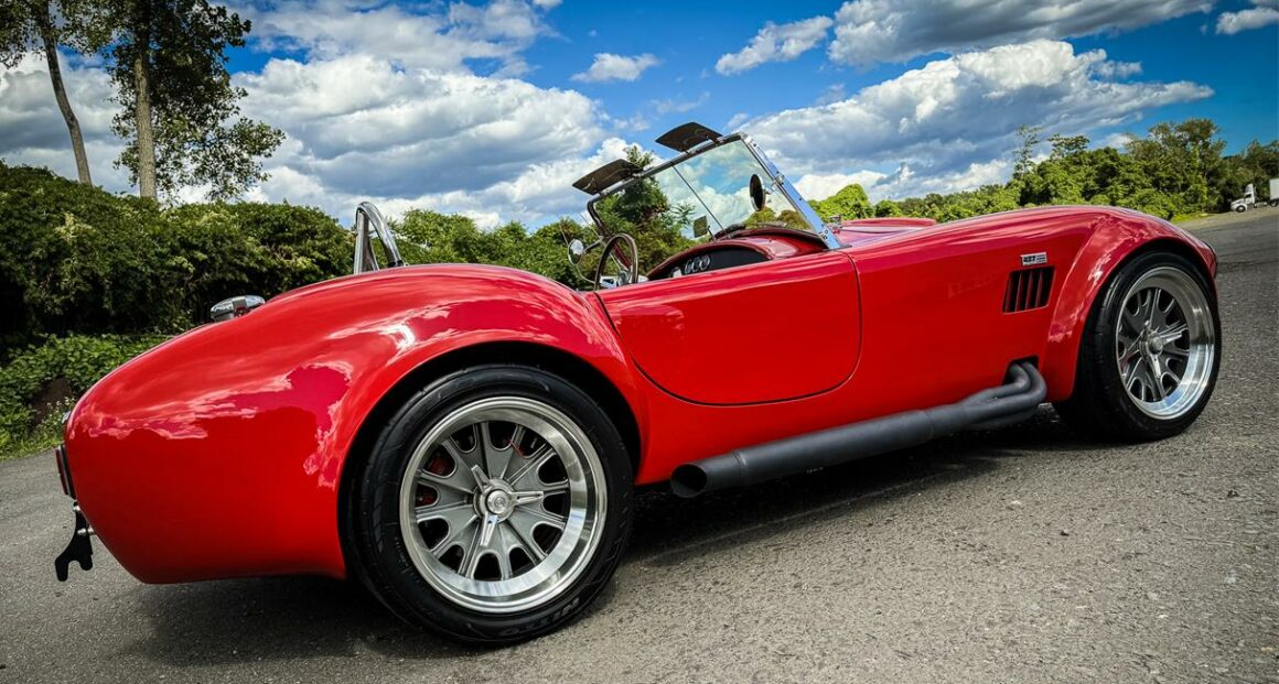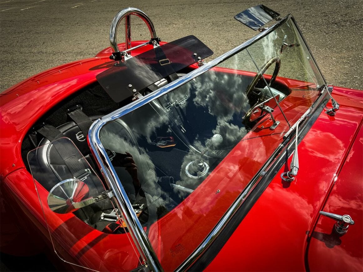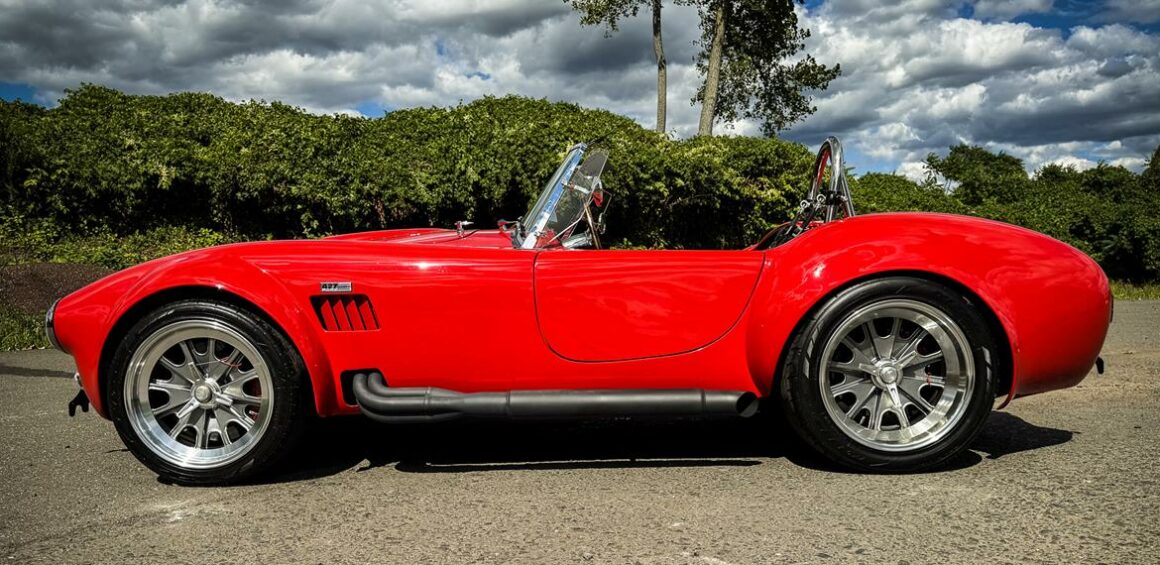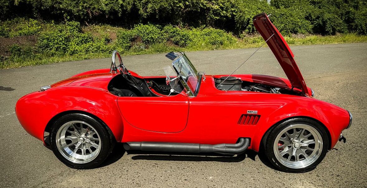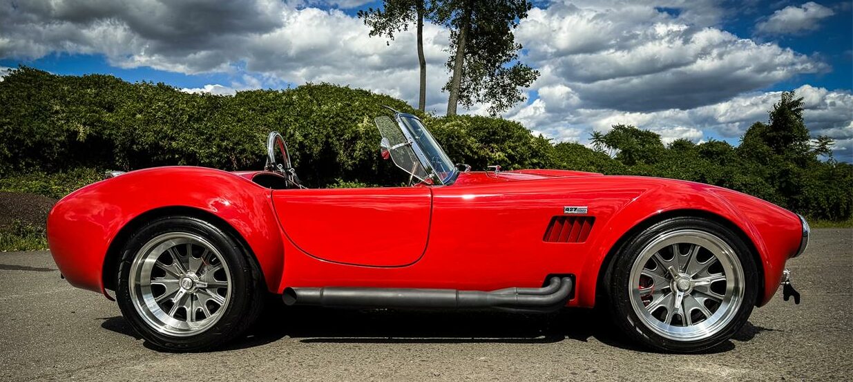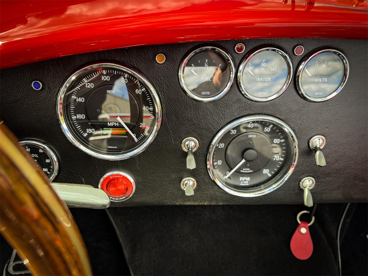 Fini à l’origine en Ford Race Red sans bandes et propulsé par une Ford Racing 427ci avec un système FAST EFI à double quadruple corps, la bête a fait l’objet de nombreuses améliorations depuis lors. Pour la construction initiale, une édition Heritage a été créée qui comprenait quelques modifications de garniture de « style d’époque », y compris l’ensemble de pare-brise chromé sur laiton (avec renfort central), un tableau de bord gainé de cuir avec des instruments de style Stewart Warner dans la disposition d’origine, une barre de harnais pour les courroies latérales de conduite, un levier de vitesses courbé vers l’avant et des feux arrière rectangulaires comme les Cobra 427 d’origine. Le propriétaire a mis à jour le groupe motopropulseur complet avec Holley Sniper EFI, AFR 205 Heads, Edelbrock Victor Sr Intake, Comp Cams Solid Roller Camshaft, entre autres améliorations.