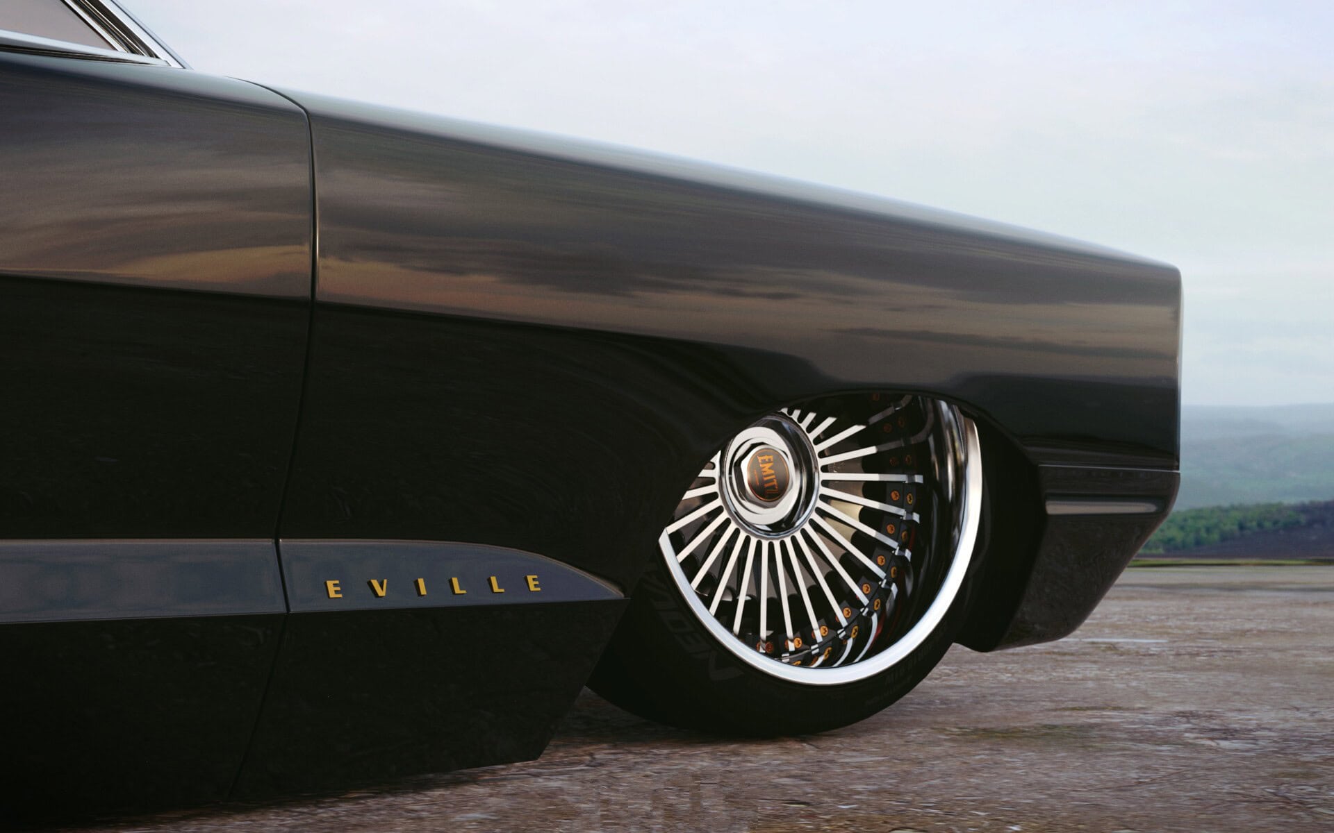 Je vais faire court ! Voici la simple mais complexe reconstruction d’une Pontiac Bonneville 1966. Toit découpé, calandre sur mesure, garnitures lisses avec extensions et caches-roues arrières. La déco se limite à quelques pinstriping et lettrages personnalisés, posés sur un ensemble de jantes Work Emitz. Elles ont des rayons finement sculptés comme des nageoires, avec des cercles profonds qui déchaînent une présence puissante mais de grande qualité, avec une finition chromée éblouissante qui capte l’attention. Armée d’une telle dignité brillante, la légendaire marque Emitz a un jour conquis le monde. Emitz était une marque adorée comme l’équivalent d’un choix orthodoxe ultime et aspirant sur la scène des berlines Kustom’s reconnues comme des chef-d’œuvres et s’avérant être le Pass-VIP ultime en remerciement d’avoir orné élégamment mais avec relance la posture des voitures haut de gamme.