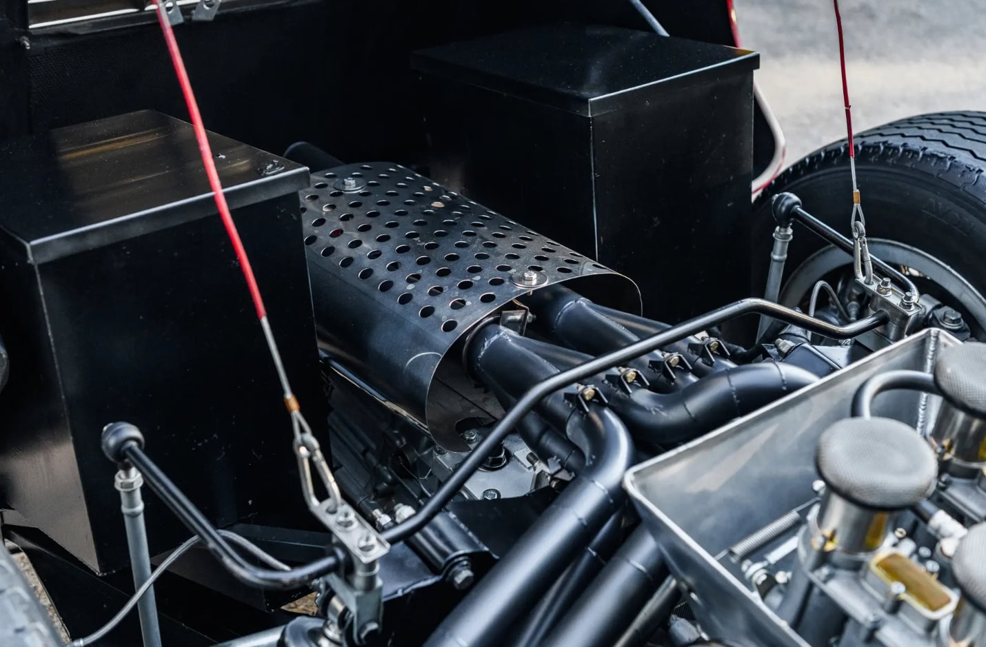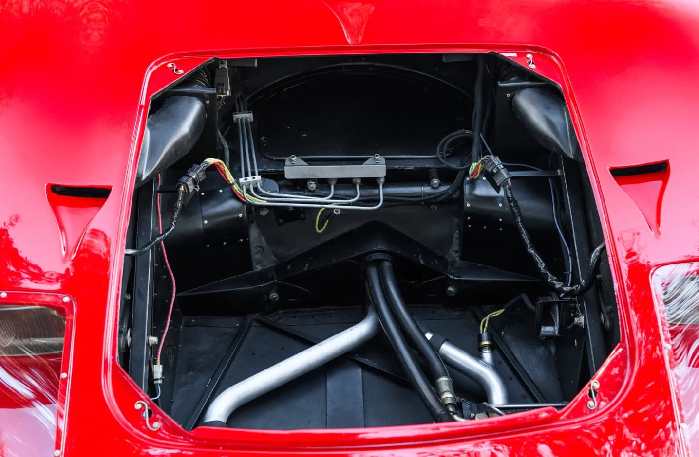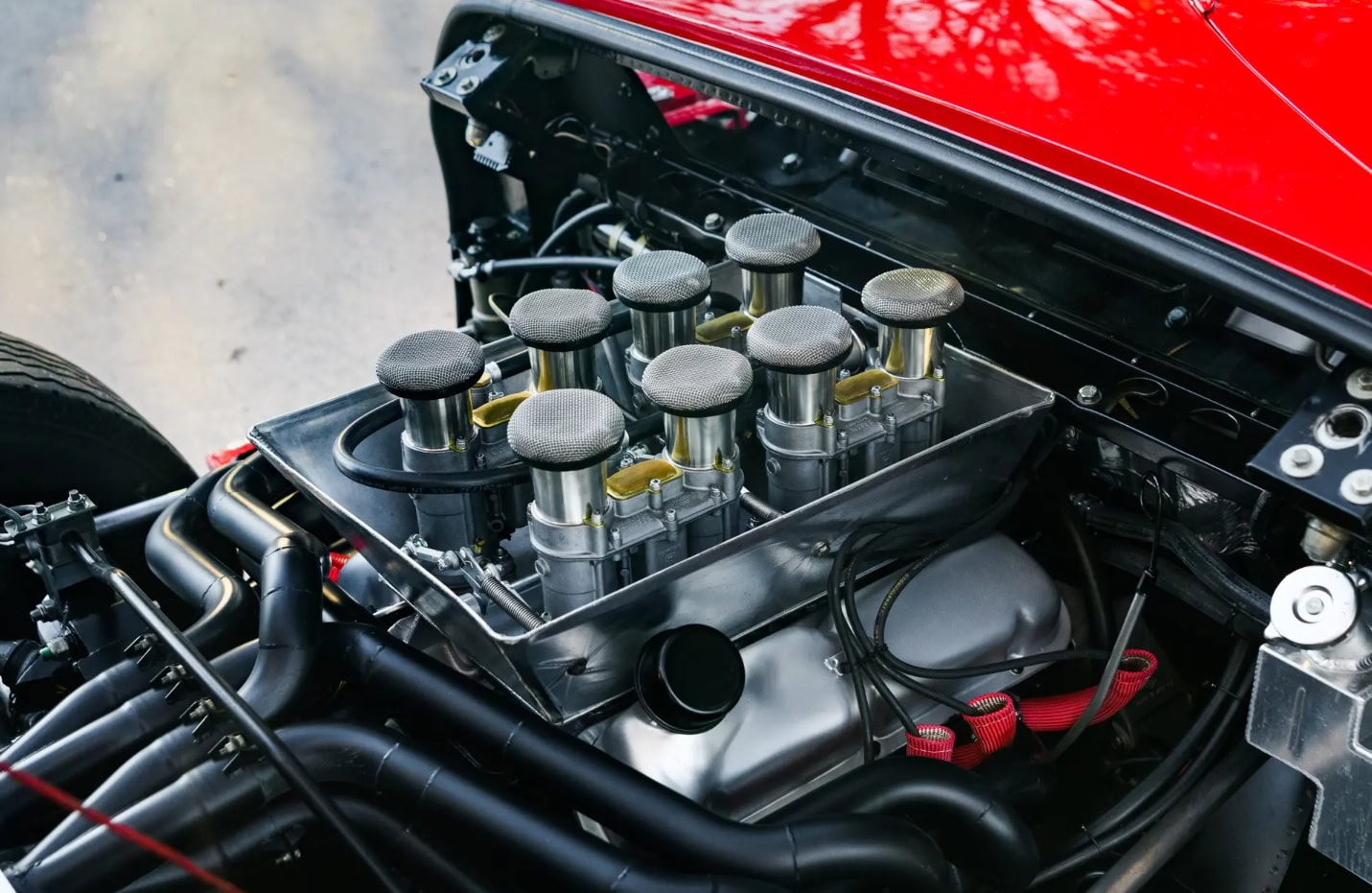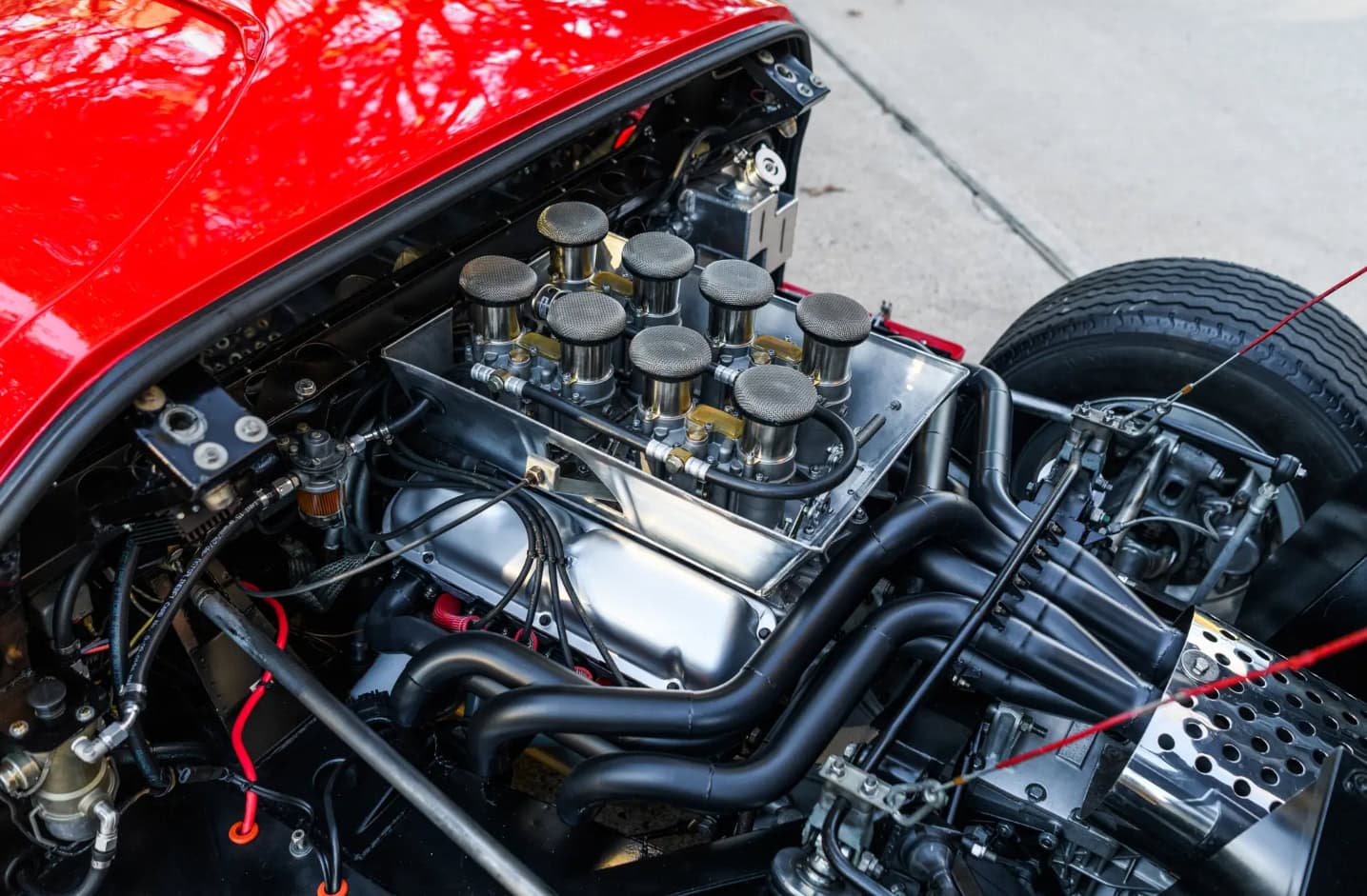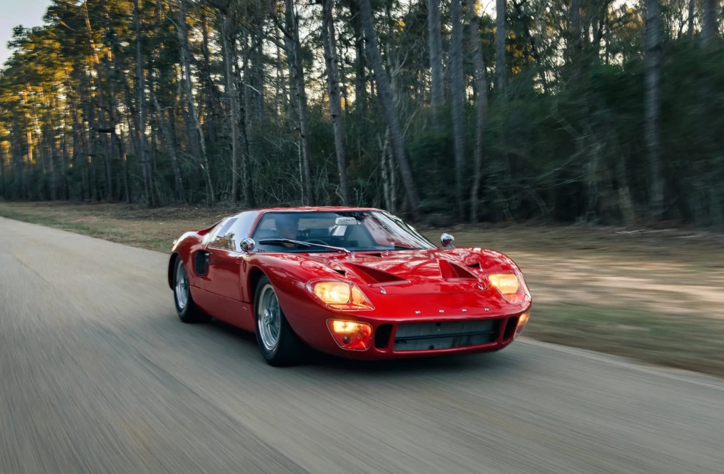 Peinte en rouge Carmen avec un intérieur noir, le châssis P/1058 a été officiellement affecté au programme de promotion et de liquidation en février 1967, puis a rejoint six autres voitures identiques au sein du département commercialisation de la division Ford. Bien qu’il existe quelques divergences concernant les détails de quelle GT40 est apparue dans quel concessionnaire particulier, les recherches de l’expert de la marque Ronnie Spain, telles que révélées dans son ouvrage de 2024 “Ultimate GT40 – The Definitive History”, affirment que P/1058 a été présentée en avril 1967 chez le légendaire concessionnaire Tasca Ford à Seekonk, dans le Massachusetts, à l’occasion du troisième anniversaire du modèle Mustang. Bob Tasca étant une figure de l’ère “Total Performance”…