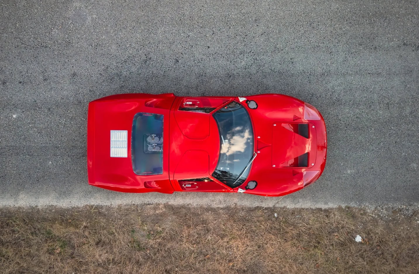 Cela, il convient de le noter, les rend aussi rares que les légendaires voiture de course 250 GTO de Ferrari du début/milieu des années 1960. Le châssis numéro P/1058 porté par la GT40 star de cet article, est l’un des 87 exemplaires de la Mk I construits, et l’un des 31 seulement à avoir été réalisés d’emblée en version routière afin de répondre aux exigences d’homologation du Groupe 4 de la FIA (évitant ainsi la catégorie Prototype). Ces voitures de route étaient donc des voitures d’opportunisme… Très mal assemblées, très mal finies, elles prétendaient bénéficier d’un confort accru, quoique limité, avec notamment des ajouts préfigurant le Tuning des accessoiristes : rétroviseurs d’aile, rétroviseur intérieur jour/nuit fixé au pare-brise, des feux de recul…