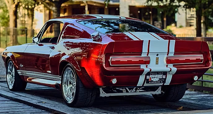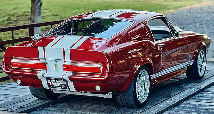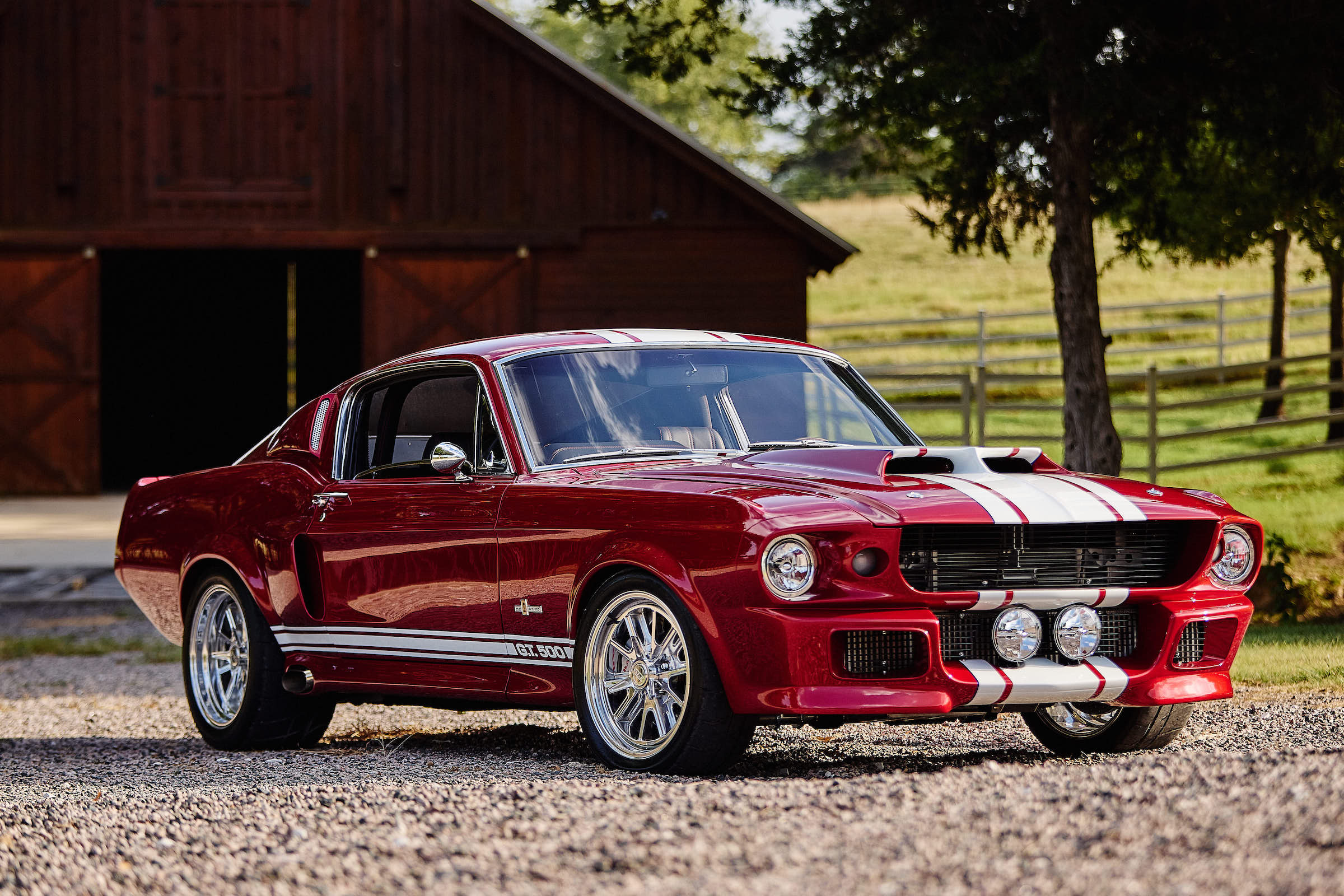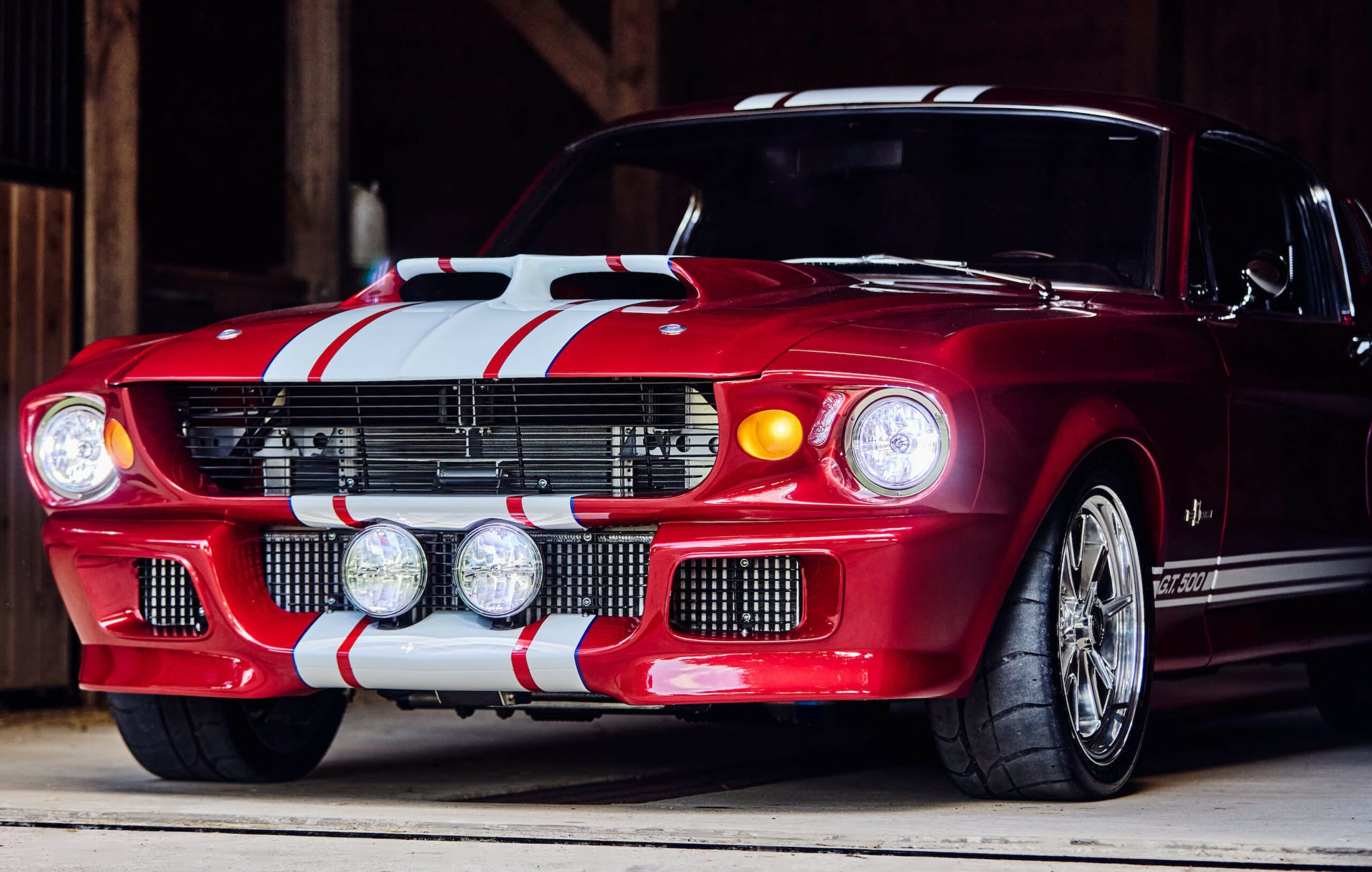 C’est l’œuvre du garage “Red River Customs” et cette création se prénomme “1967 Shelby GT500 Restomod”... L’avant est équipé d’un kit carrosserie “Mustangs To Fear”, d’ouvertures intercooler inférieures sur mesure et d’une prise d’air fonctionnelle sur le capot. Chaque ouverture est conçue pour optimiser le flux d’air et le refroidissement du moteur V8 427 biturbo, tout en affinant le profil original de la GT500.