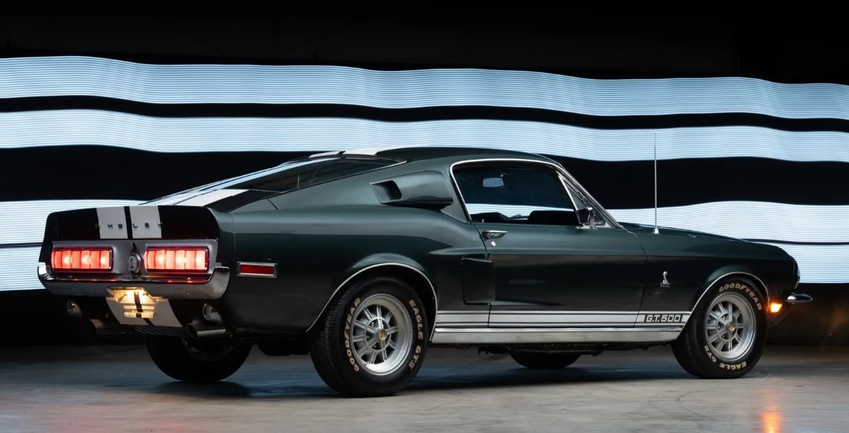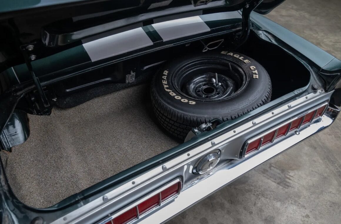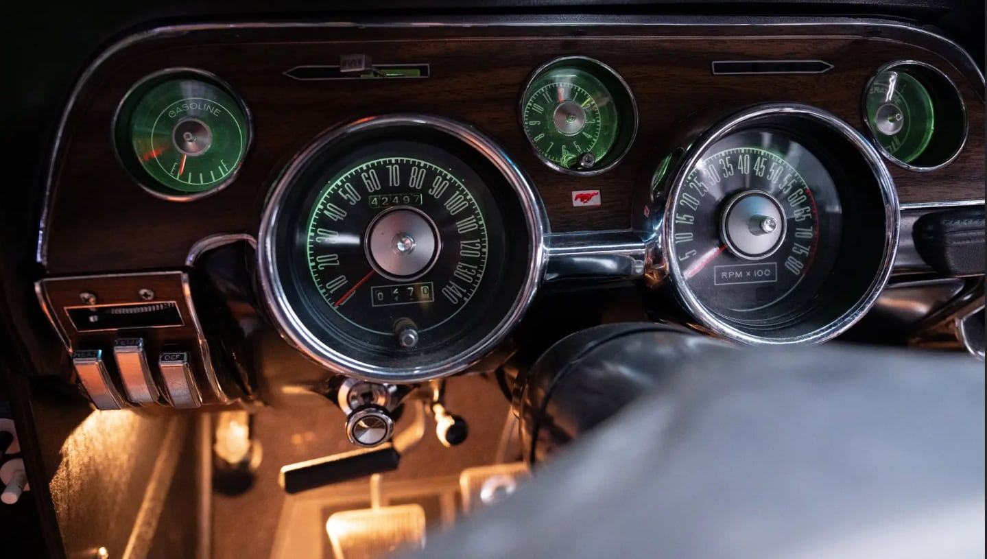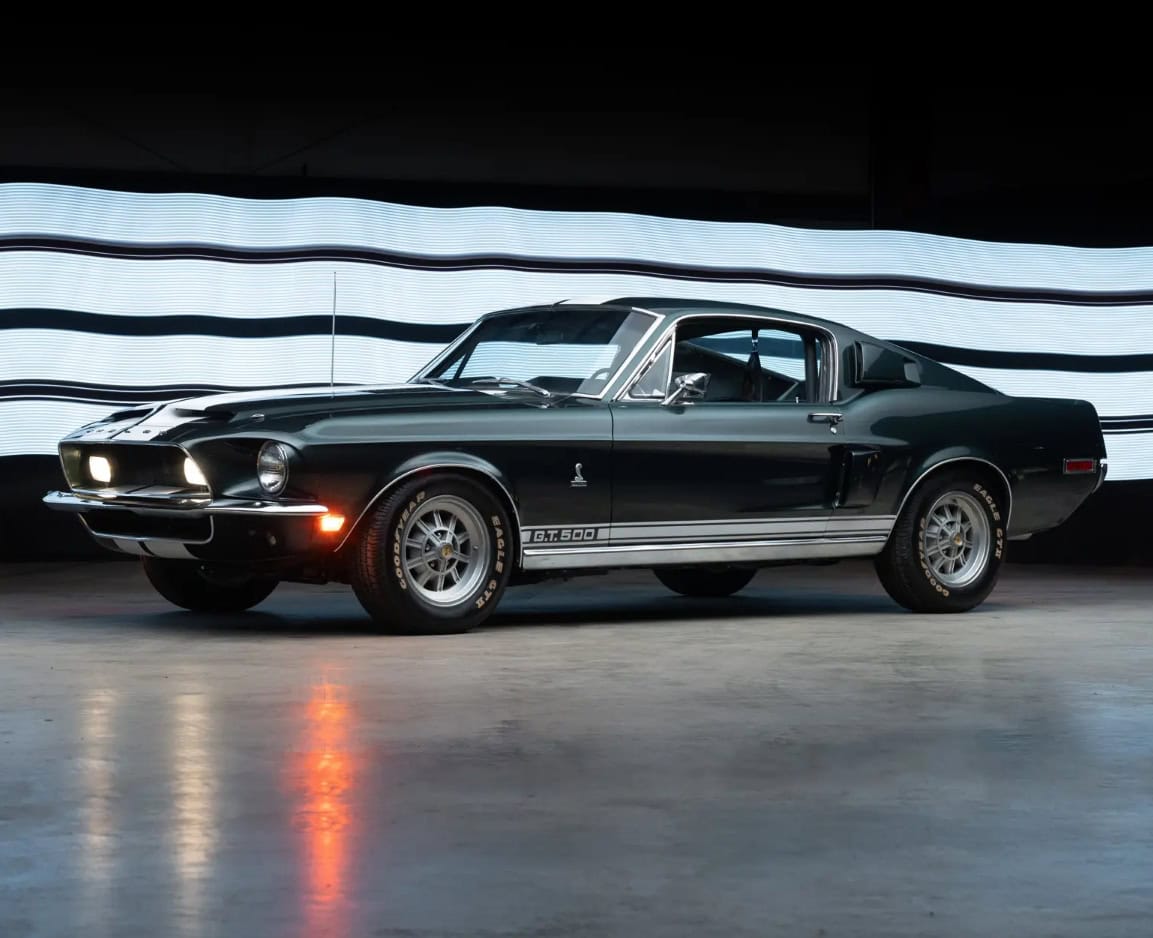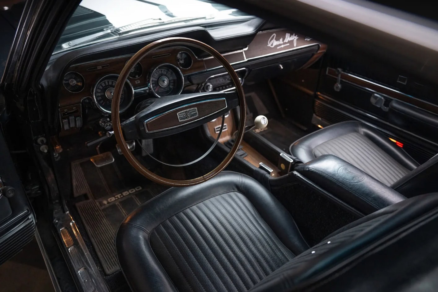 1968 verra également l’introduction de la nouvelle GT500 KR haut de gamme. Un total de 4.451 Shelby ont été produites pour 1968 et elles sont vénérées par beaucoup comme les dernières de la race, car Ford a pris le contrôle de la conception et de la production de la Shelby Mustang pour 1969, en transférant tout en interne. Cette Shelby GT500 Fastback de 1968 a été commandée le 7 septembre 1967. Initialement produite à Metuchen, dans le New Jersey, cette Shelby a quitté l’usine finie en Highland Green sur vinyle tricoté noir. La Shelby était propulsée par le légendaire Police Interceptor V-8 de 428ci, soutenu par une transmission manuelle à quatre vitesses qui envoyait la puissance à un essieu arrière conventionnel de 3,50:1.