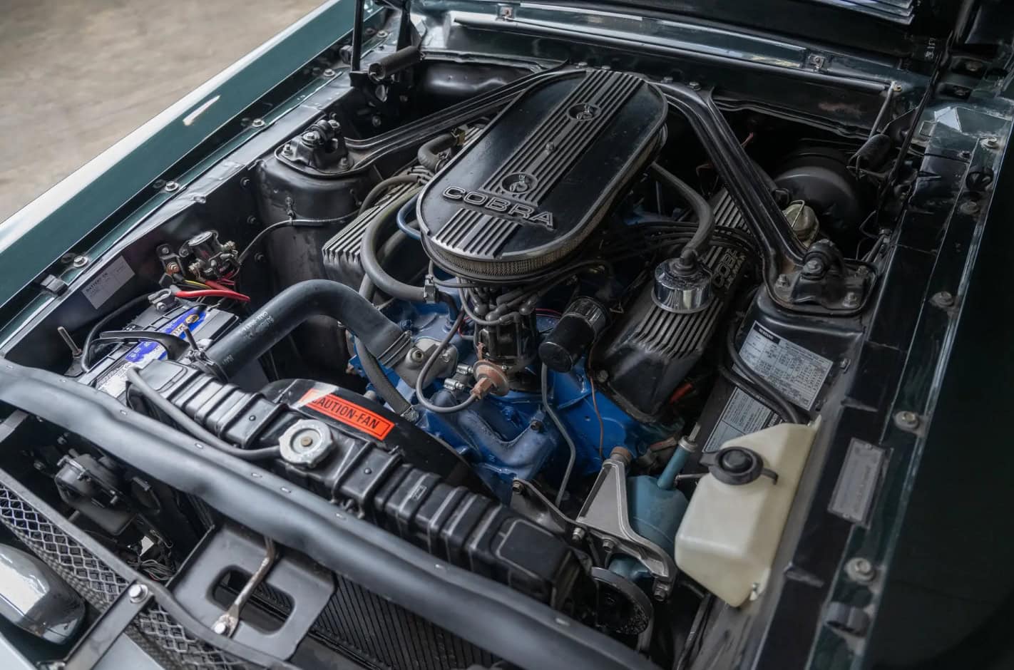 Plus haut sur la console se trouvent les compteurs Stewart Warner, et juste au-dessus se trouve une radio Philco. Les sièges baquets sont équipés de ceintures abdominales et de harnais d’épaule montés sur l’arceau de sécurité pour plus de sécurité lors de la conduite animée. L’arrière de la voiture offre une banquette escamotable pour deux personnes. Les tapis de sol en caoutchouc GT500 protègent la moquette avant et arrière. En tant que l’une des 1.019 Shelby GT500 Fastback construites pour 1968, cela rend la bête plus rare, en fait, qu’une Shelby GT500 KR Fastback de 1968. C’est donc un exemple bien équipé de l’une des créations Carroll Shelby les plus célèbres…