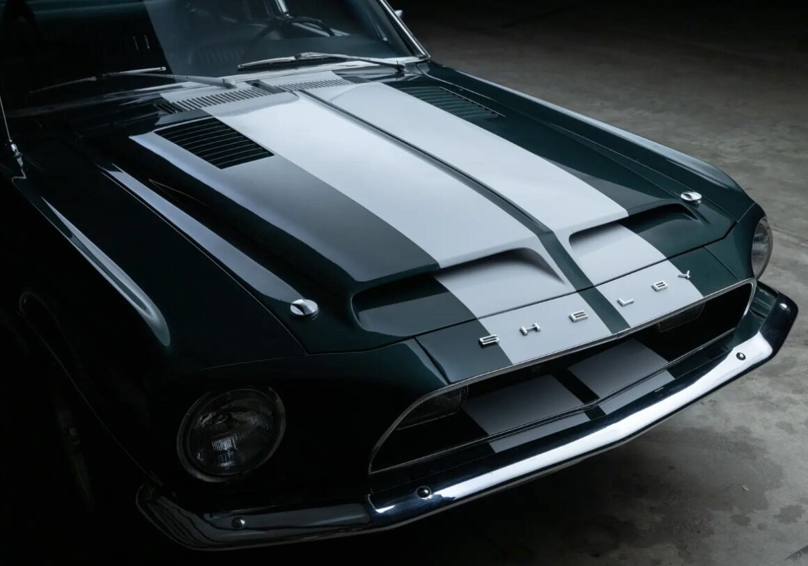 Finie en vert Highland avec sièges baquets en vinyle tricoté noir, la bête est équipée d’une boîte manuelle à quatre vitesses et est documentée dans le registre SAAC et accompagnée du fameux rapport Marti qui pérennise même les voitures qui ne le méritent pas… Avec un appétit toujours croissant des consommateurs pour les produits Shelby, et dans le but de raccourcir la distance d’expédition des Mustang nues à partir desquelles les Shelby ont été construites, Ford a réussi à faire pression pour déplacer la production de Shelby hors de Californie et au Michigan pour l’année 1968. Le style des modèles Shelby de 1968 a essentiellement été repris dee Mustang’s 1967 et, pour la première fois, Shelby/Ford a proposé un cabriolet en sus du fastback.