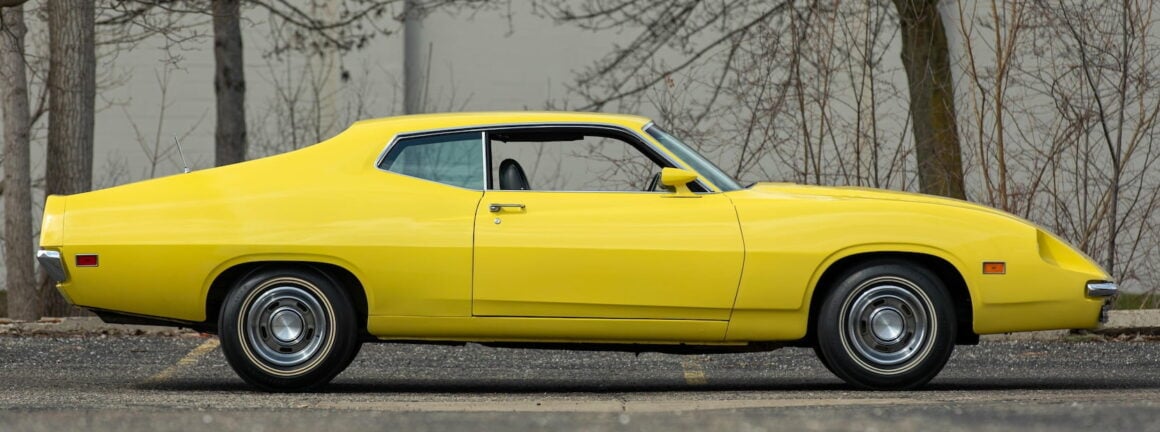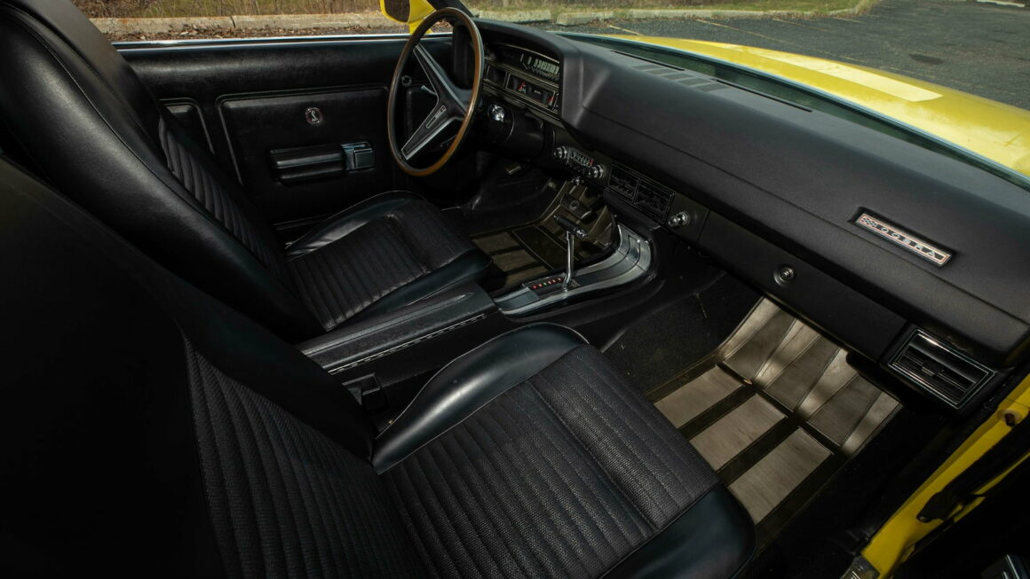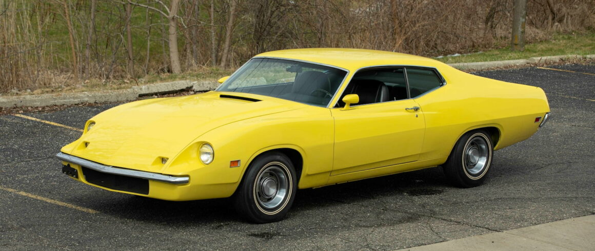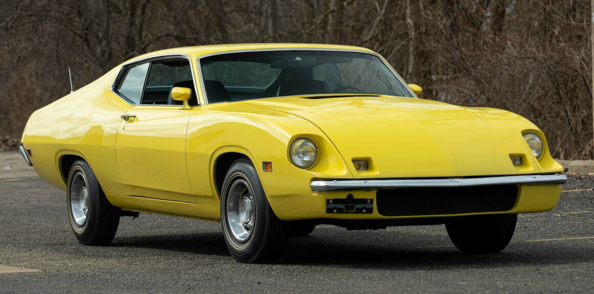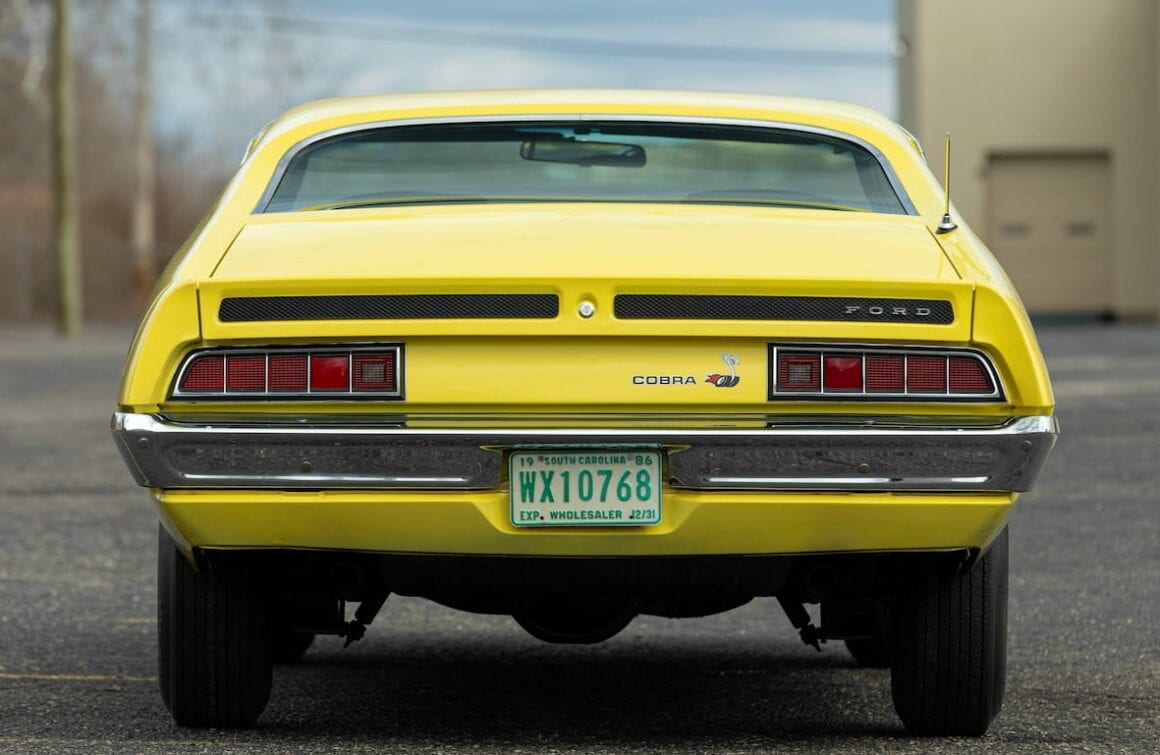 En fait pas du tout. Non restaurée avec seulement 837 miles d’origine, cette Ford Torino King Cobra de 1970 de couleur jaune, est notée sérieusement par les plus grands et importants experts américains comme étant la seule King Cobra disposant d’un certificat “VIN” de production (ce qui parait, vu d’Europe, totalement grotesque), ce qui lui fait atteindre une valeur “potentielle” de 350.000$ ! Pas trop toutefois en égard aux 525.000$ obtenus sans le “VIN” de production (sic !) pour la même, en rouge avec bandes décoratives noires, quelques années plus tôt…