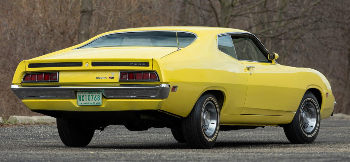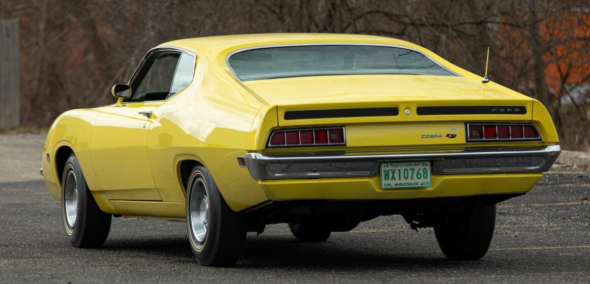 Cette Torino Cobra a été livrée avec un moteur 351-4V d’une puissance de 285cv (213 kW) et elle comprenait également une boîte manuelle à 4 vitesses avec un levier de vitesses Hurst, des pneus F70-14, des emblèmes Cobra, une suspension de compétition, des chapeaux de moyeu et une calandre noircie. Une nouvelle option pour les modèles Cobra était la bande laser réfléchissante, autrefois une option réservée aux modèles GT. Bien que les moteurs Cobra Jet 429 à hautes performances aient toujours la même puissance que sur les modèles de 1970, Super Stock and Drag Illustrated ont eu des résultats décevants lors de son test d’une Torino Cobra de 1971. Ils ont testé une Cobra équipée du moteur CJ 429 de 370 ch (280 kW), transmission automatique C-6, rapport d’essieu de 3,50:1, et n’ont pu faire qu’un meilleur quart de miles en environ 15 secondes à 97 mph (156 km / h). L’article déclare que “cette voiture répondrait mieux avec un bon système d’allumage, un meilleur collecteur d’admission, un carburateur plus grand et un ensemble de collecteurs.” Le magazine Cars a eu plus de chance avec son essai d’une Torino Cobra de 1971 équipée du moteur CJ 429 de 370cv (280 kW) avec Ram Air, transmission automatique C-6 et rapport d’essieu de 3:50:1. Ils ont parcouru le quart de miles en 14,5 secondes à 102 mi / h (164 km / h) dans une Torino de 4 100 lb (1 900 kg). Ce dernier temps a été obtenu après que le personnel de Cars ait effectué un “réglage correct”.