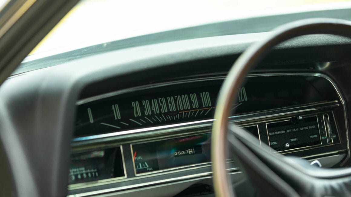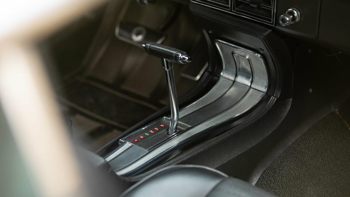 Comme une américaine destinée “à la masse”, elle avait été équipée dès l’origine de la climatisation d’usine, d’une direction assistée, de freins assistés, de vitres électriques et d’un intérieur tristounet, en simili noir, d’allure bas-de-gamme bon-marché (c’est dire que c’est proche de la médiocrité) comprenant deux sièges à dossier haut, une console centrale en stratifié avec levier de boite automatique “au sol” et l’emblème Cobra à l’extrême droite du tableau de bord. Roulant sur des pneus riquiqui à double bande blanche montés sur des jantes GT, la bête était également équipée de deux rétroviseurs sport, d’une antenne arrière (signifiant qu’une radio était disponible en option) et d’un lettrage autocollant “Cobra” près d’un des feux arrières.