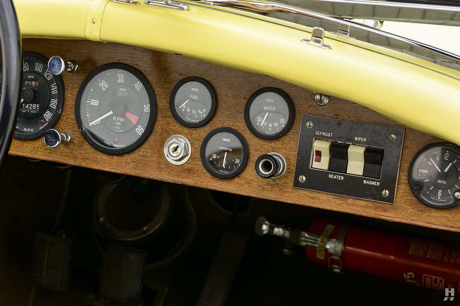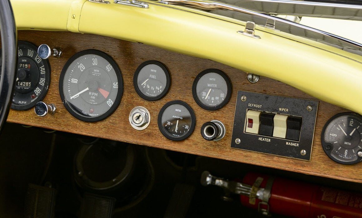 Le style Vanden Plas transpire de partout. En parlant des portes, elles sont construites en fonte d’aluminium et elles s’ouvrent et se ferment avec une précision impressionnante, reflétant l’intégrité du design et l’esprit que les Ruger’s voulaient transmettre à leur voiture. L’intérieur 100% d’origine offre de la place pour quatre passagers sur une sellerie verte à effet ancien. Un tableau de bord en panneau de bois abrite une gamme d’instruments Smiths, qui font un clin d’œil à l’inspiration britannique de la voiture et maintiennent l’aspect agréable et correct d’époque.