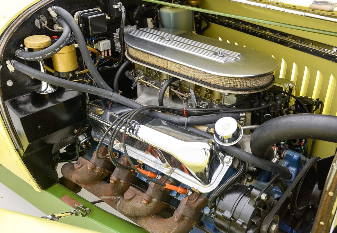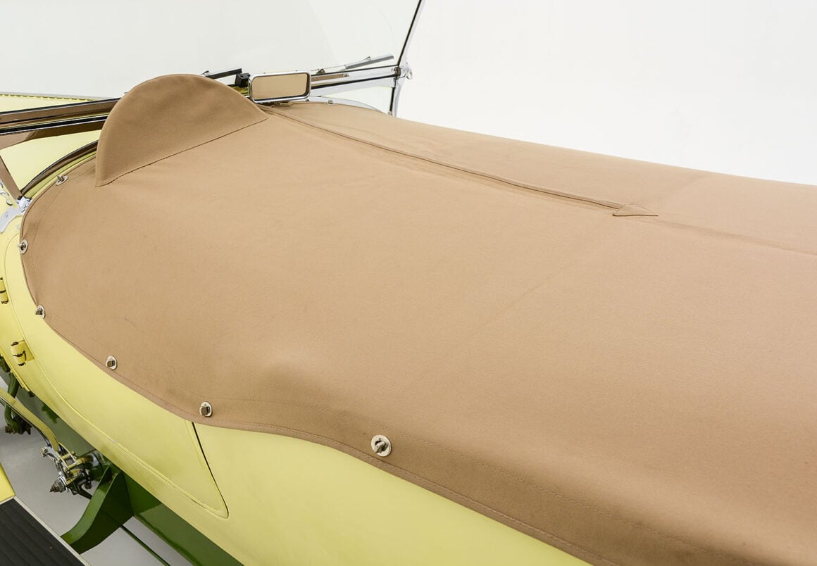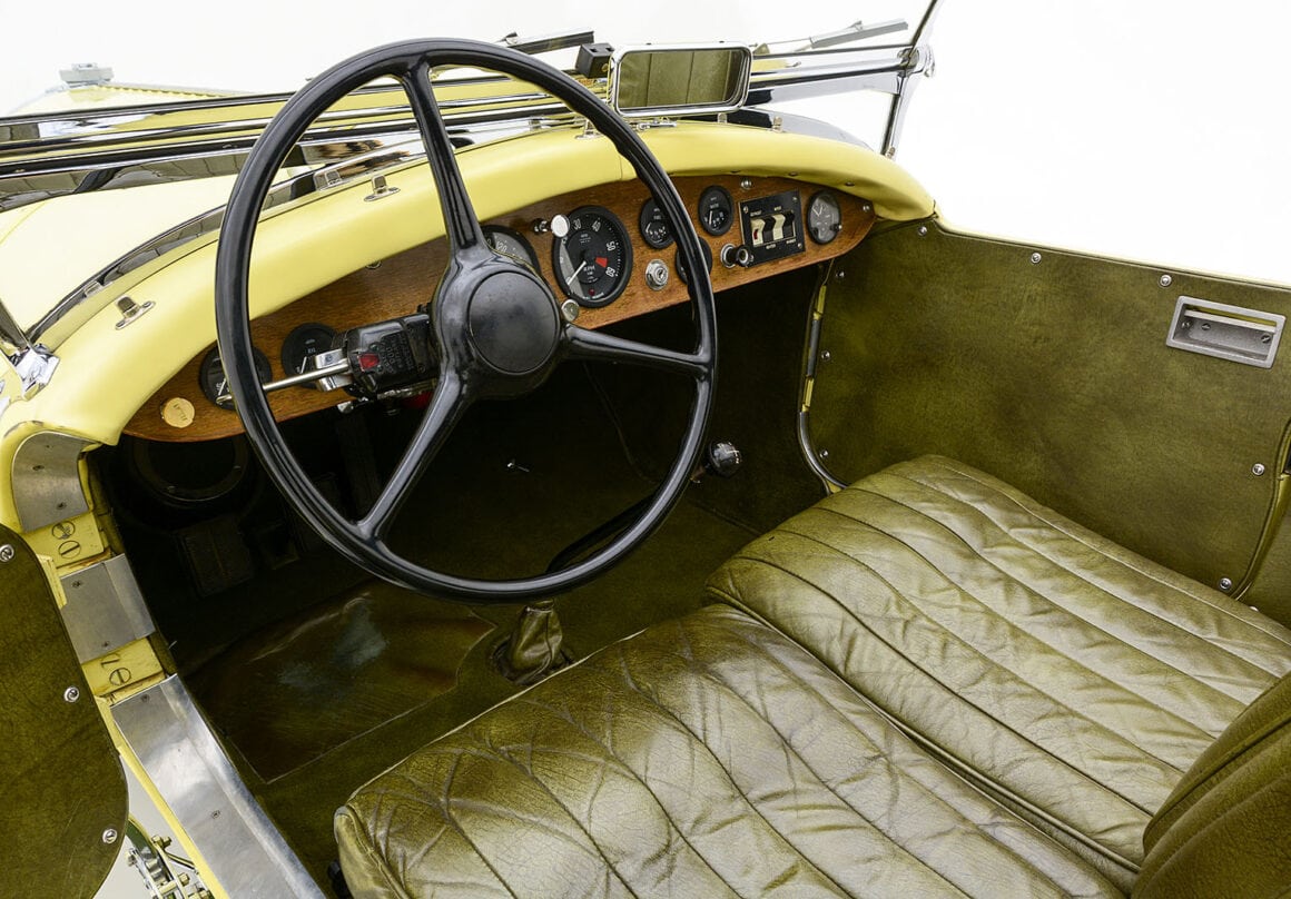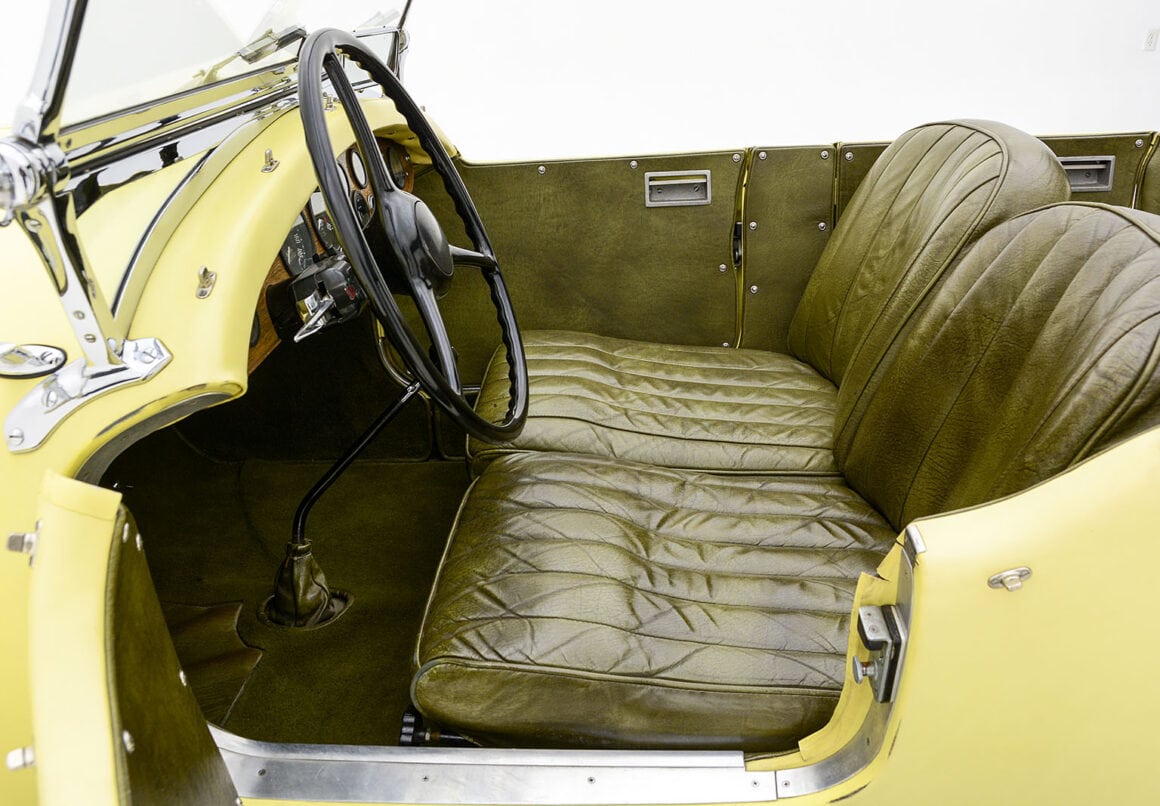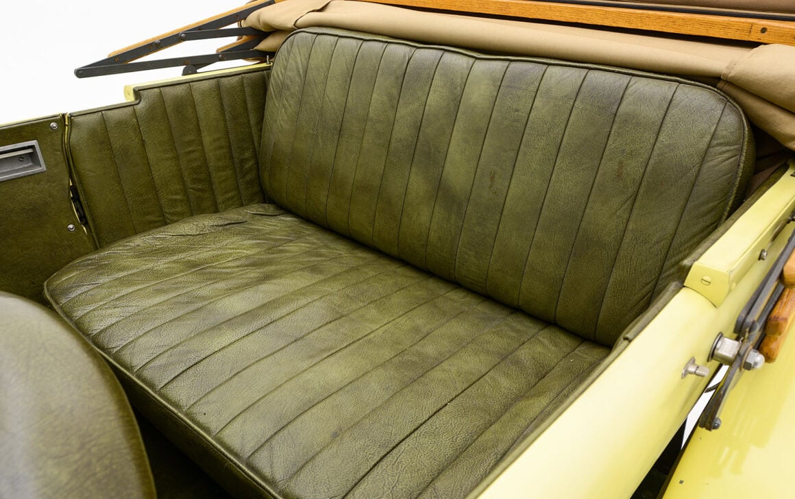 Un peu également à Bar Harbor, dans le Maine pour des visites extra-conjugales. Chuuuut ! Pendant toutes ces années, la voiture va rester magnifiquement conservée dans un état totalement original. Le schéma de peinture jaune et vert trahit les racines des années 1970 de la Ruger, mais elles conviennent assez bien au caractère de la voiture. La peinture a remarquablement bien survécu, avec une légère patine appropriée à la finition. La carrosserie est en excellent état avec des détails évocateurs tels que le frein à main extérieur et la grande coque de radiateur chromée avec garde en pierre en maille.