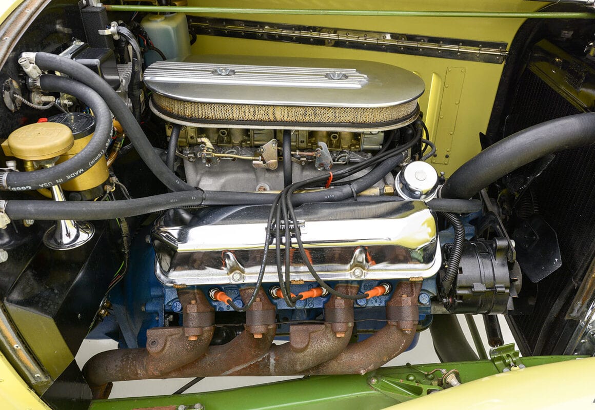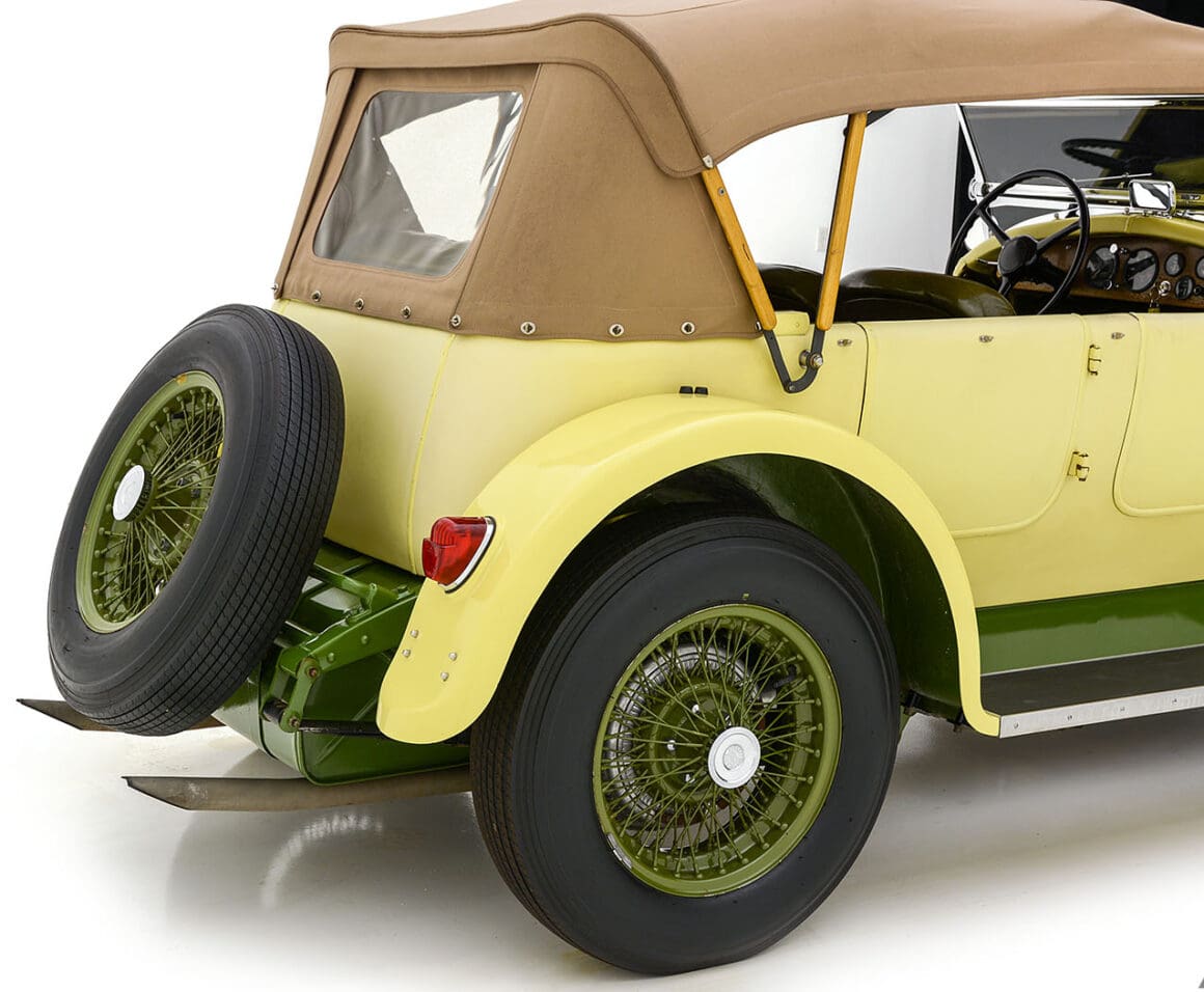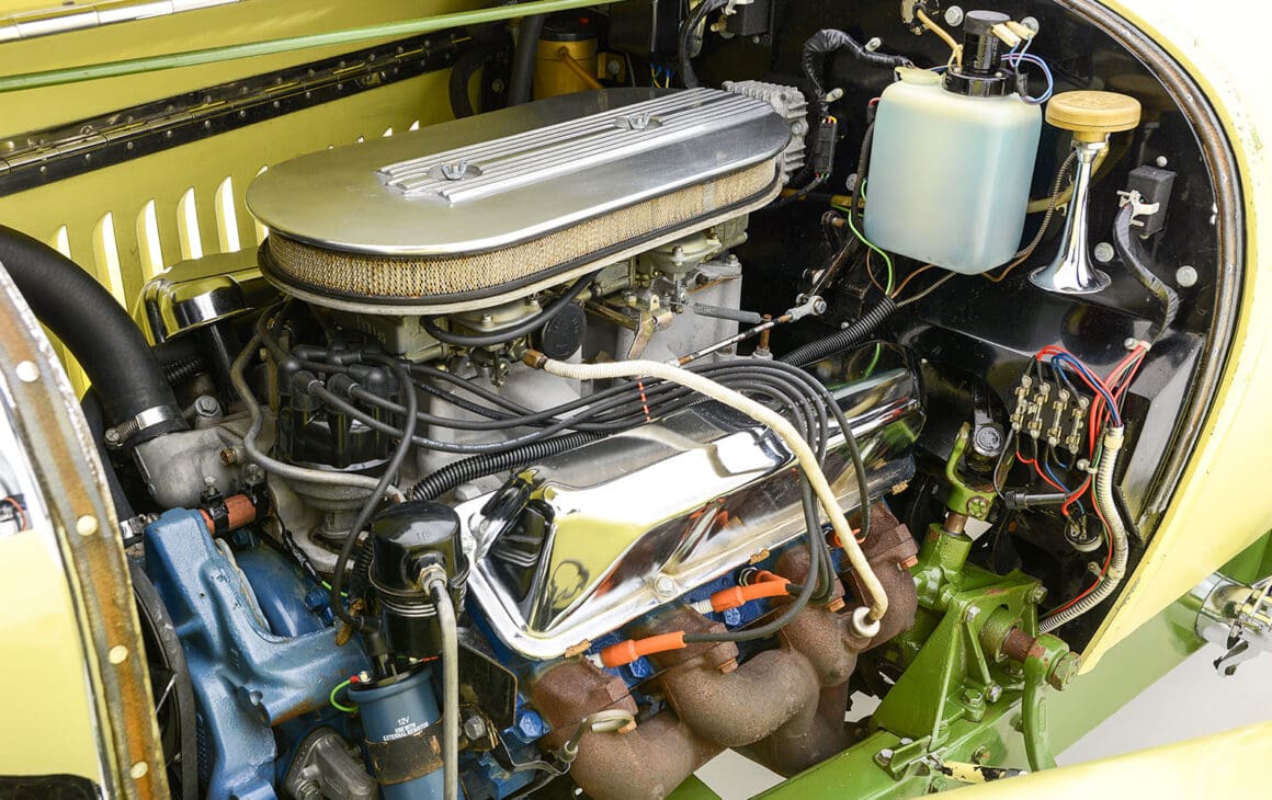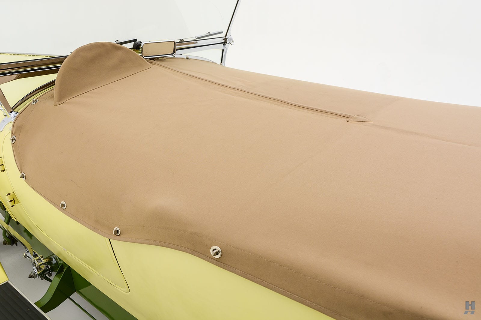 Un peu également à Bar Harbor, dans le Maine pour des visites extra-conjugales. Chuuuut ! Pendant toutes ces années, la voiture va rester magnifiquement conservée dans un état totalement original. Le schéma de peinture jaune et vert trahit les racines des années 1970 de la Ruger, mais elles conviennent assez bien au caractère de la voiture. La peinture a remarquablement bien survécu, avec une légère patine appropriée à la finition. La carrosserie est en excellent état avec des détails évocateurs tels que le frein à main extérieur et la grande coque de radiateur chromée avec garde en pierre en maille.