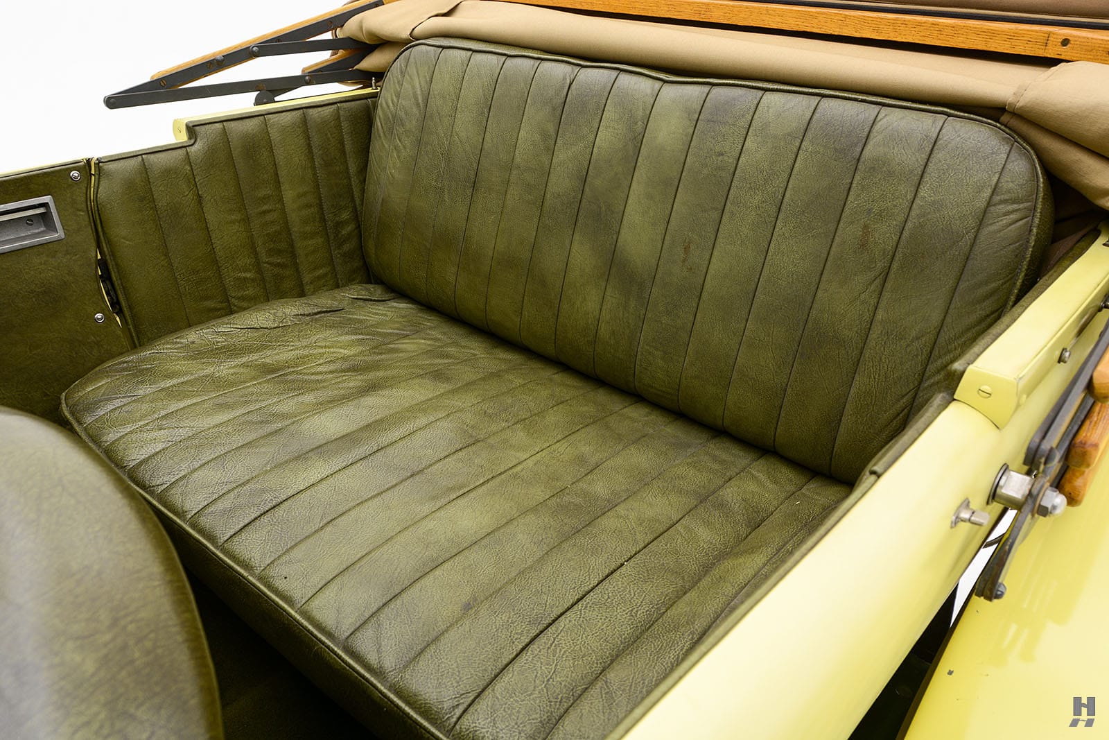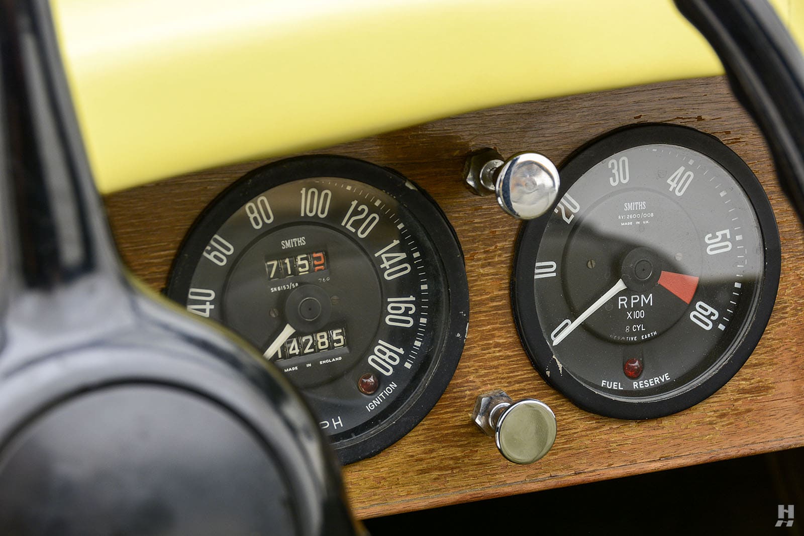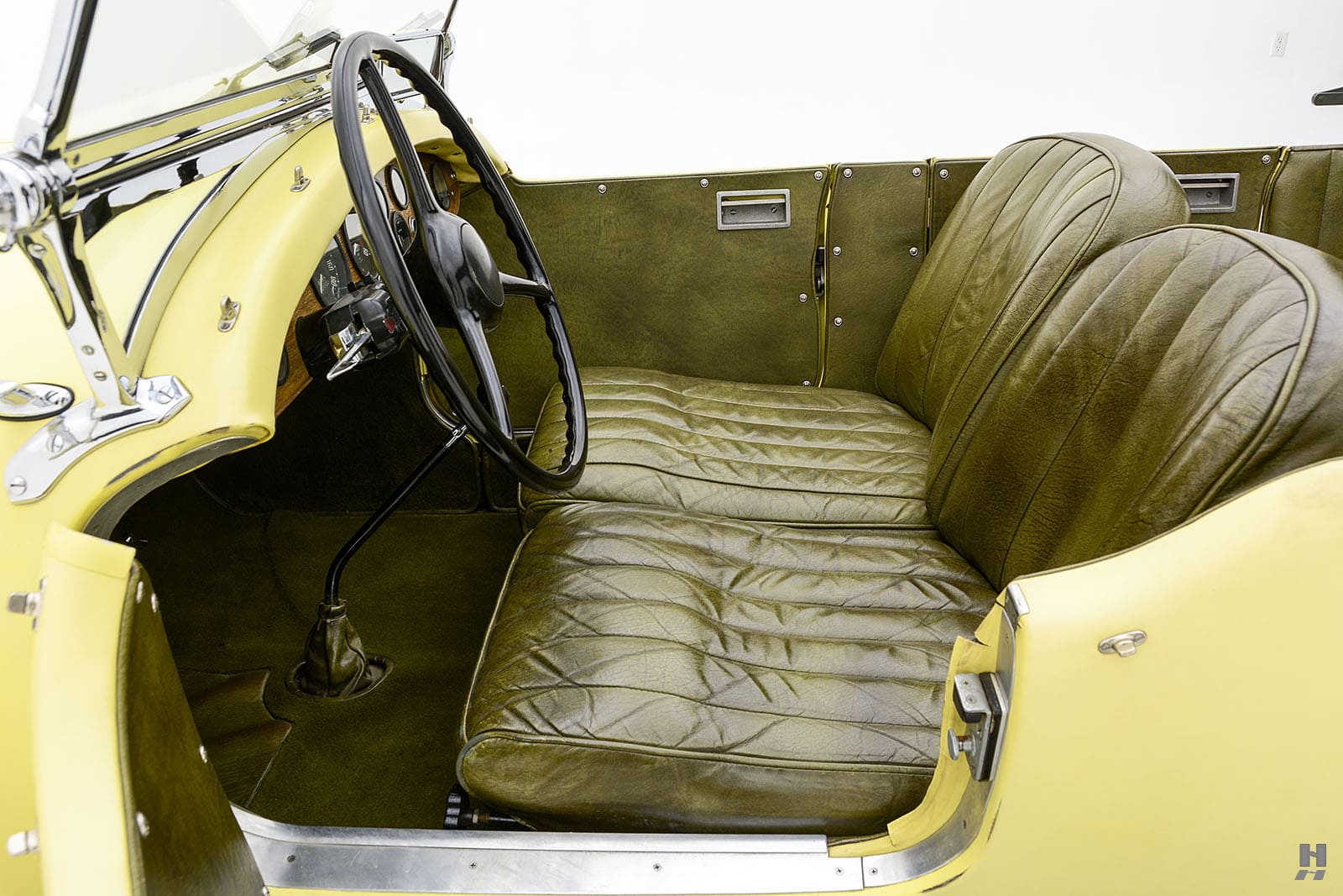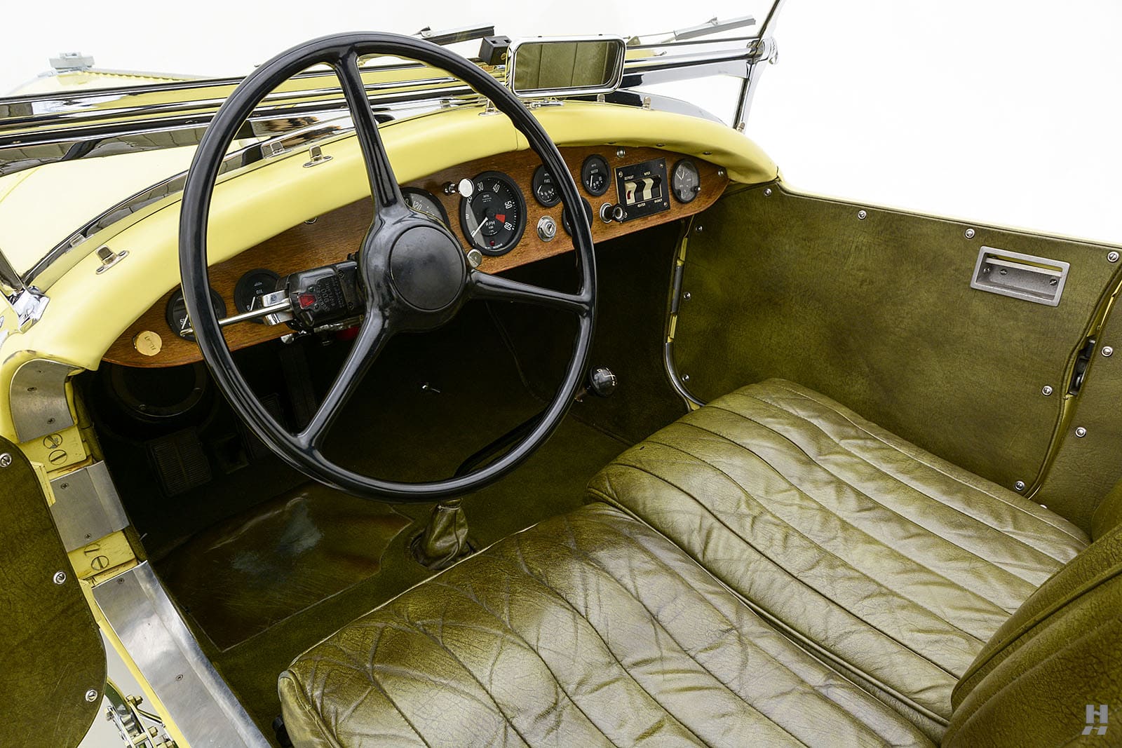 Un peu également à Bar Harbor, dans le Maine pour des visites extra-conjugales. Chuuuut ! Pendant toutes ces années, la voiture va rester magnifiquement conservée dans un état totalement original. Le schéma de peinture jaune et vert trahit les racines des années 1970 de la Ruger, mais elles conviennent assez bien au caractère de la voiture. La peinture a remarquablement bien survécu, avec une légère patine appropriée à la finition. La carrosserie est en excellent état avec des détails évocateurs tels que le frein à main extérieur et la grande coque de radiateur chromée avec garde en pierre en maille.
