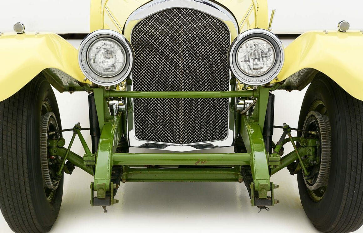 Ce duo de collectionneurs passionnés, avait une affinité particulière pour les Bentley de l’ère W.O. des années 1920, mais étaient fascinés par les Hot-Rods et les Dragsters. La paire a créé un design vierge d’un mix de ce qu’ils aimaient en automobiles, qui capturait le style, l’esprit et l’essence des grandes voitures de tourisme sportives européennes de la fin des années 1920, tout en utilisant des composants fiables, facilement disponibles et faciles à entretenir. L’élément élémentaire du projet était un châssis sur mesure avec un renfort cruciforme pour la rigidité, tels qu’étaient 95% des châssis des américaines.