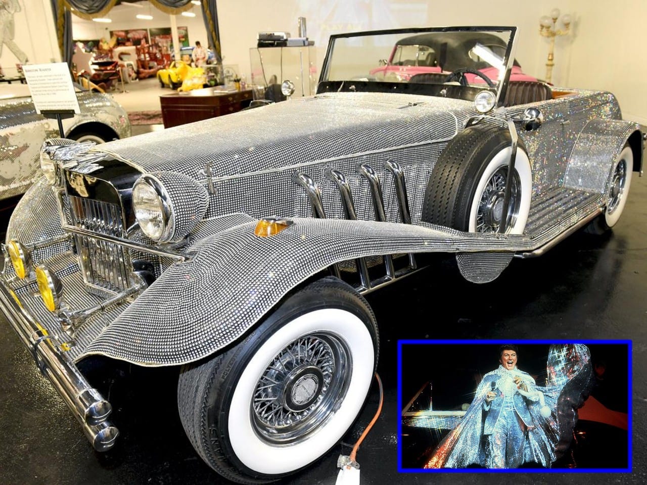 Les années ’70 furent prolifiques en folies, on se souviendra du groupe ABBA et de leurs accoutrements bizarres et de très mauvais goût qui étaient alors une constante dans les groupes “Pop” et “Disco”, aux USA, dans cette mouvance, le pianiste-chanteur Liberace était davantage connu pour ses excentricités que pour ses chansons… La Kanzler dont il va être question plus loin dans cet article, représente l’époque “Disco-Pop” de l’automobile, dans la mouvance des Clénet, Gatsby (eh oui… il faut assumer, j’y reviendrai plus tard) et autres “néo-classiques“, c’est donc “normal” que Liberace a acheté une Kanzler en 1979 et s’en est servi quotidiennement. Liberace, né le 16 mai 1919, gagnait des montagnes d’or et était un “avide” collectionneur d’objets étranges et clinquants.