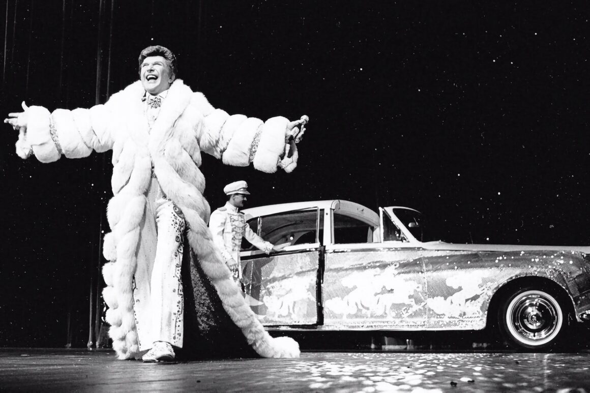 Entre les années 50 et 80, il gagnera le plus gros salaire de l’histoire de “l’entertainment américain”, mais si le succès est total chez lui, il peine à exporter la formule, ses tournées à succès en Europe ne suffisent pas à l’imposer autant qu’en Amérique… Il poursuit donc sa carrière à Las Vegas où il s’installe au Hilton ainsi qu’au Lake Tahoe, tout en faisant fructifier d’autres affaires (restaurants, hôtels, etc). En 1972, son cachet pour se produire dans des nightclubs de Las Vegas, s’élevait à 300.000 dollars la semaine. Il fut alors le précurseur du “Glam-Rock“… Liberace captivait son public par un environnement coloré, des chansons dégoulinantes de tendresse, des costumes à paillettes et un humour décapant…