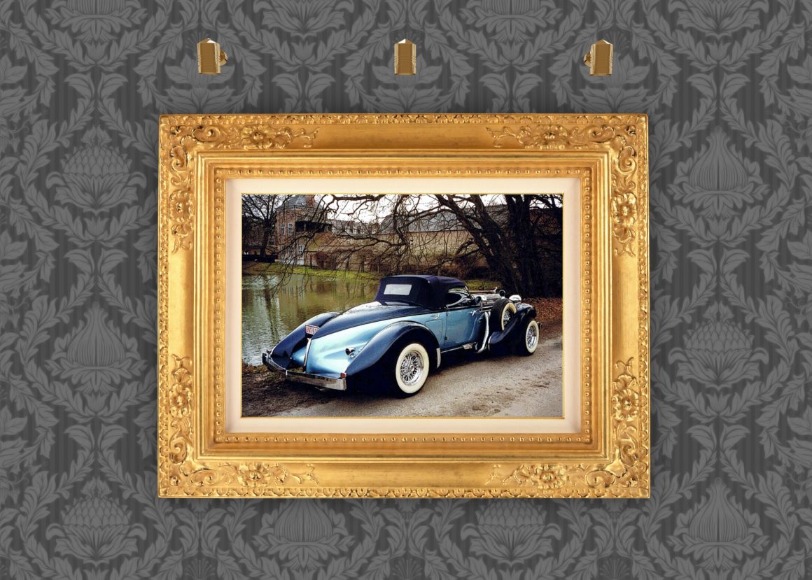 – Qu’elle n’ait rien pour déplaire, cette automobile extraordinaire, paradoxalement pêche par excès de perfection. C’est Gordon Buehrig qui s’occupa avec génie des lignes de l’Auburn Speedster. C’est lui qui dans un fulgurant moment de créativité créa cette merveille, ce chef-d’œuvre qu’on voudrait mettre sous globe pour le regarder pendant qu’on s’ennuie à faire tout et n’importe quoi. Je signale tout de même, que la voiture dont je cause, est une réplique… et que si les formes authentiques sont parfaitement respectées, la mécanique n’a rien d’une tondeuse à gazon. Une voiture aussi belle, aussi originale, c’est exceptionnel, par exemple, la ligne de l’aile arrière, le profil doux et l’avant agressif, féroce, prêt à défoncer l’asphalte, l’arrière également, qui, sous la puissance de l’accélération, rase le sol. Le pare-brise, quant à lui, est juste incliné au bon angle, son élégance et son étroitesse mettent en valeur l’immensité du capot”…