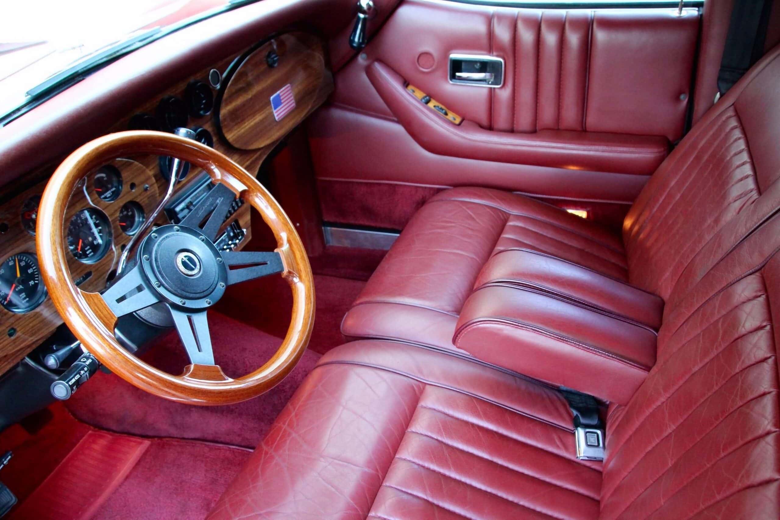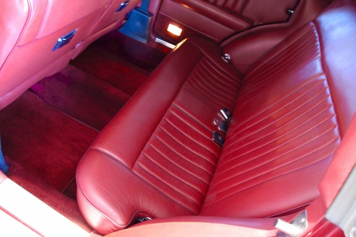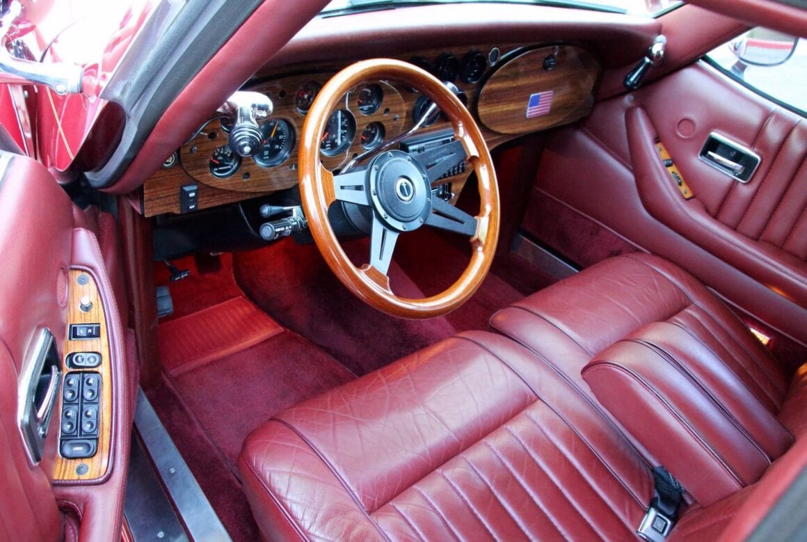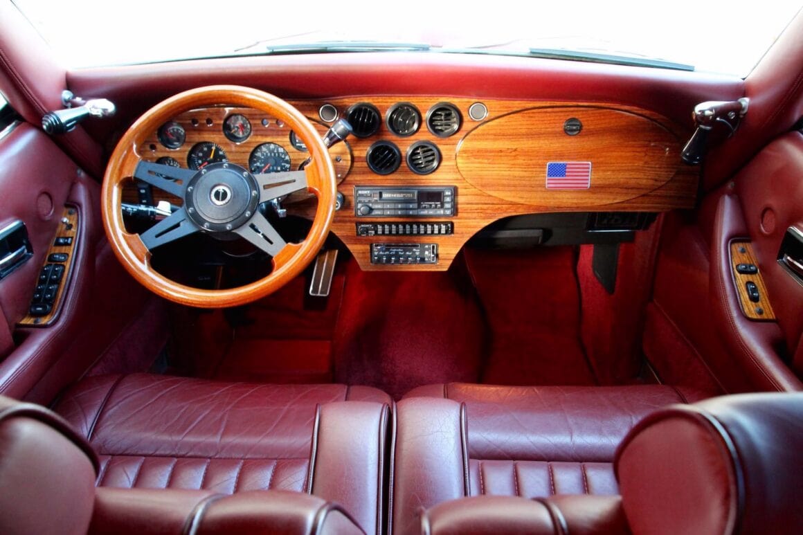 Je les ai en cette suite ubuesque, toutes vendues, y compris la Sedan 4 portes bleue-nuit qui m’avait peu auparavant, valu de subir l’inquisition fiscale, d’ailleurs narrée avec humour dans l’article la concernant.. J’étais excédé, j’en avais marre… J’en ré-attrape nausée, haut-le-cœur et boutons… La berline Excalibur Series V Touring de 1989 présentée ici est une des diverses séries de fin de règne alors qu’étant aux mains d’un troisième repreneur affairiste, a été mise en fabrication une série d’Excalibur 4 portes/4 places, réalisées sur les châssis d’un Pick-Up… Le moteur choisi au moindre coût était un small Bloc V8 de 305ci de seulement 155cv équipé d’une transmission automatique. C’était beau à voir, mais l’engin semblait réalisé pour les parades et enterrements… Aucune puissance… La mienne était bleue nuit sans artifices en cuivre… Cet exemplaire est dans une livrée assez Kitch, un rouge métallisé décoré de pièces chromées et cuivrées, avec un intérieur rouge en cuir, un tapis rouge assorti et un tableau de bord en noyer. Son vendeur américain indique qu’elle sera livrée à l’acquéreur en parfait état de fonctionnement… Elle dispose de presque toutes les options d’usine Excalibur imaginables (ce qui est mensonger) et est prête à servir la vanité de son futur propriétaire qui pourra en outre la conduire, ce qui est le minimum auquel on a droit…