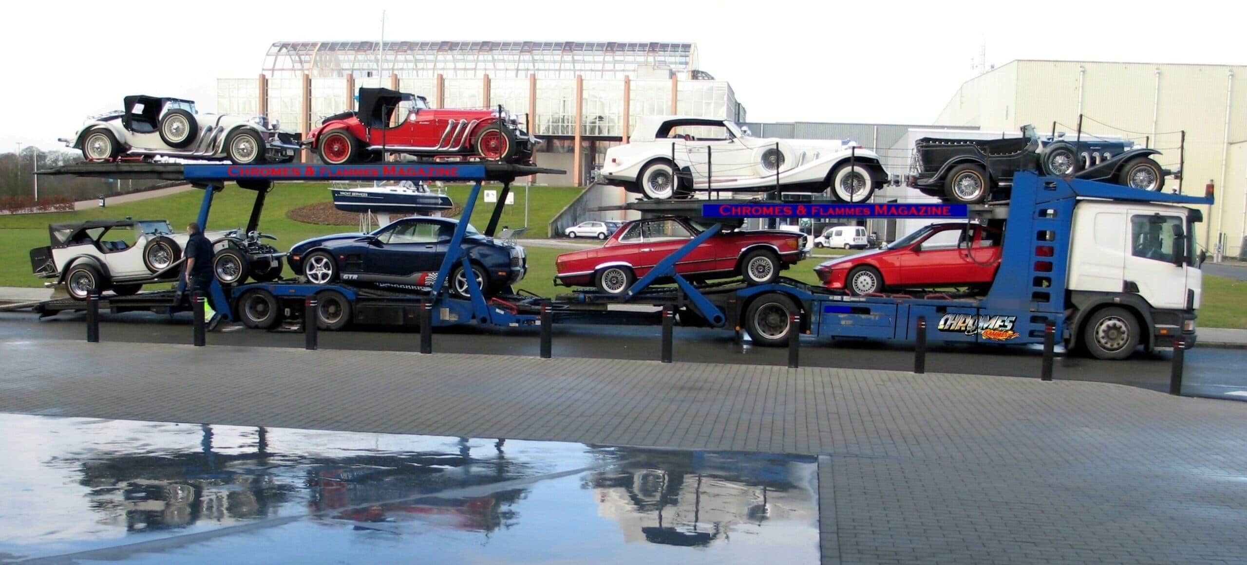 Tout cela n’aboutira à rien d’autre que la reprise finale par une employée Excalibur préposée aux nettoyages et préparations-clients, qui avait été virée et a pris sa revanche en faisant main basse sur l’affaire lorsqu’elle était à l’agonie de deux repreneurs crétins… Je ne soulignerai pas non plus avoir été importateur Excalibur-Europe et m’être m’être frotté aux nouvelles lois scélérates d’homologations impossibles dans toute l’Europe… J’ai d’ailleurs tout envoyé au diable suite aux péripéties d’un dimanche familial… Sur ce point, j’explique… J’avais une douzaine d’Excalibur en collection, dans mon garage-musée et je me suis mis en tête d’aller faire une balade en famille… La première Excalibur est tombée en panne, la second aussi, la troisième pareil, qui n’a jamais voulu démarrer… La quatrième nécessitait l’appoint d’un booster mais l’emplacement sous les échappements coté passager empêchant toute recharge (une ingénierie d’incapables), et rendait le changement de batterie impossible sans enlever les échappements et le capot… Au moins une journée de galère… Puis la suivante avait…. Merde/merdum, j’ai stoppé à la huitième car c’est ce que peut transporter un “Porte-Huit” pour aller les déposer chez un réparateur après un week-end passé à surveiller les belles dispersées dans les extérieurs…