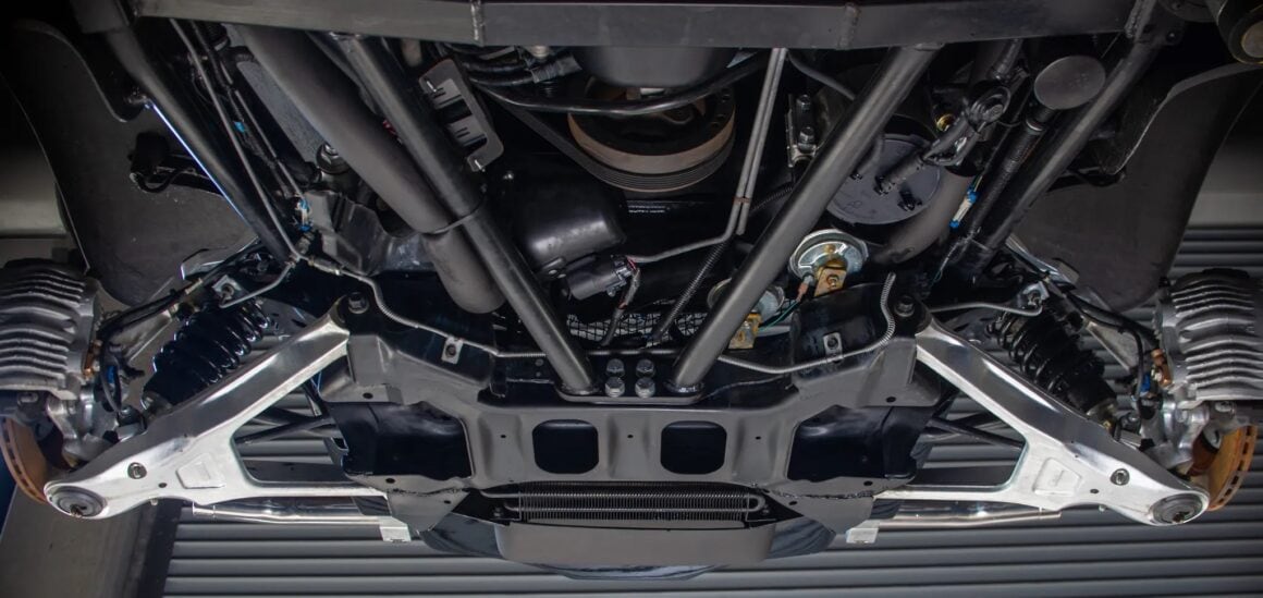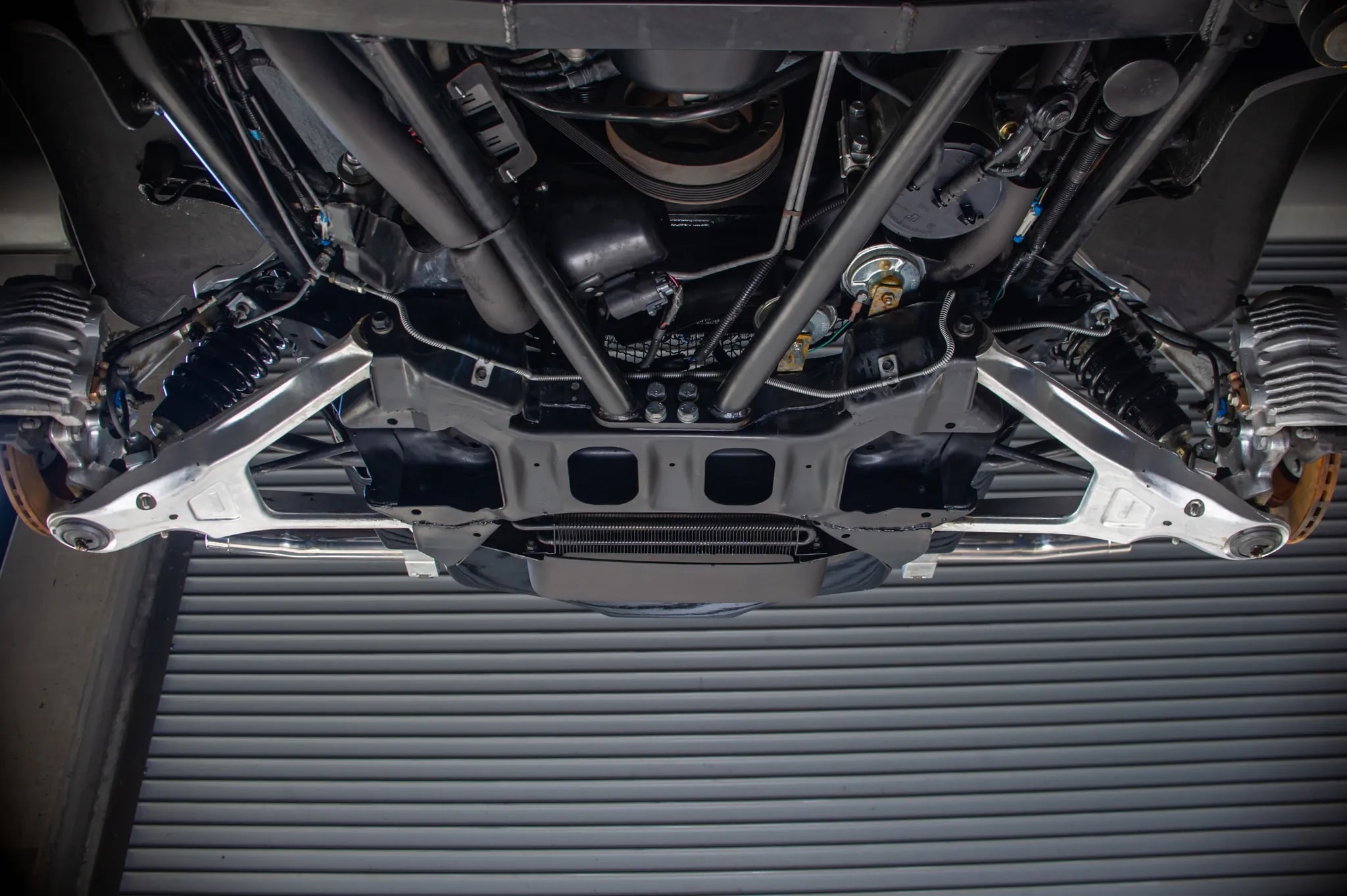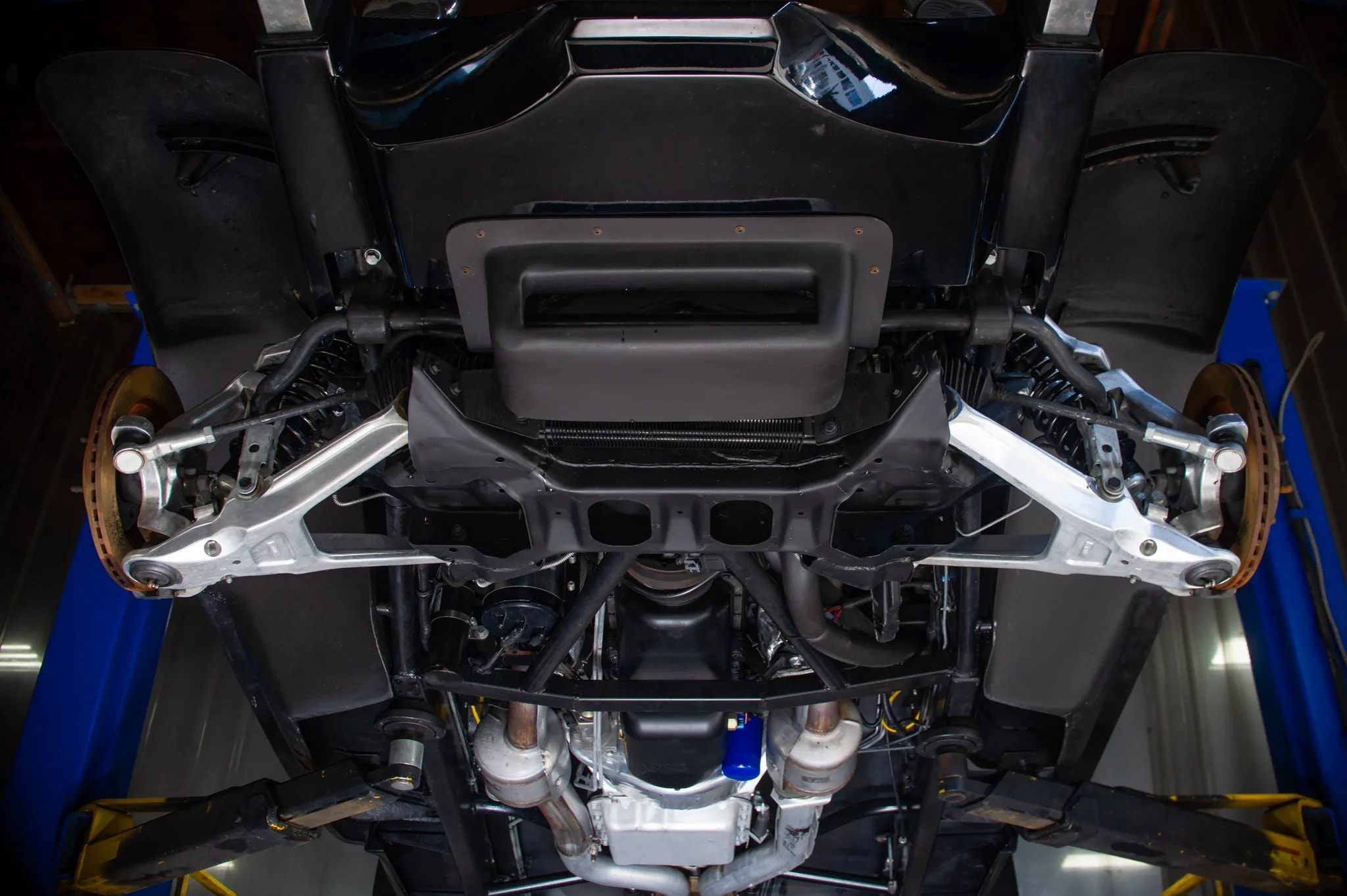 Le châssis tubulaire est doté d’une direction à crémaillère assistée, de bras triangulaires en alliage. Il y a des combinés filetés réglables aux quatre coins. Le freinage est assuré par des disques aux quatre roues avec des étriers ventilés. L’habitacle est doté de sièges façon faux baquets à l’avant et d’une banquette repliable arrière. L’équipement supplémentaire comprend une chaîne stéréo CD Pioneer, la climatisation, des garnitures en faux bois, et des ceintures de sécurité avant à trois points. Le V8 LT1 de 5,7 litres est doté d’une injection de carburant séquentielle…