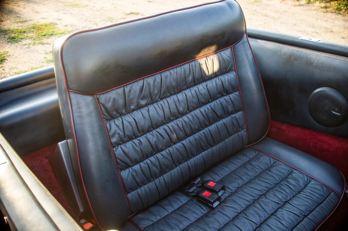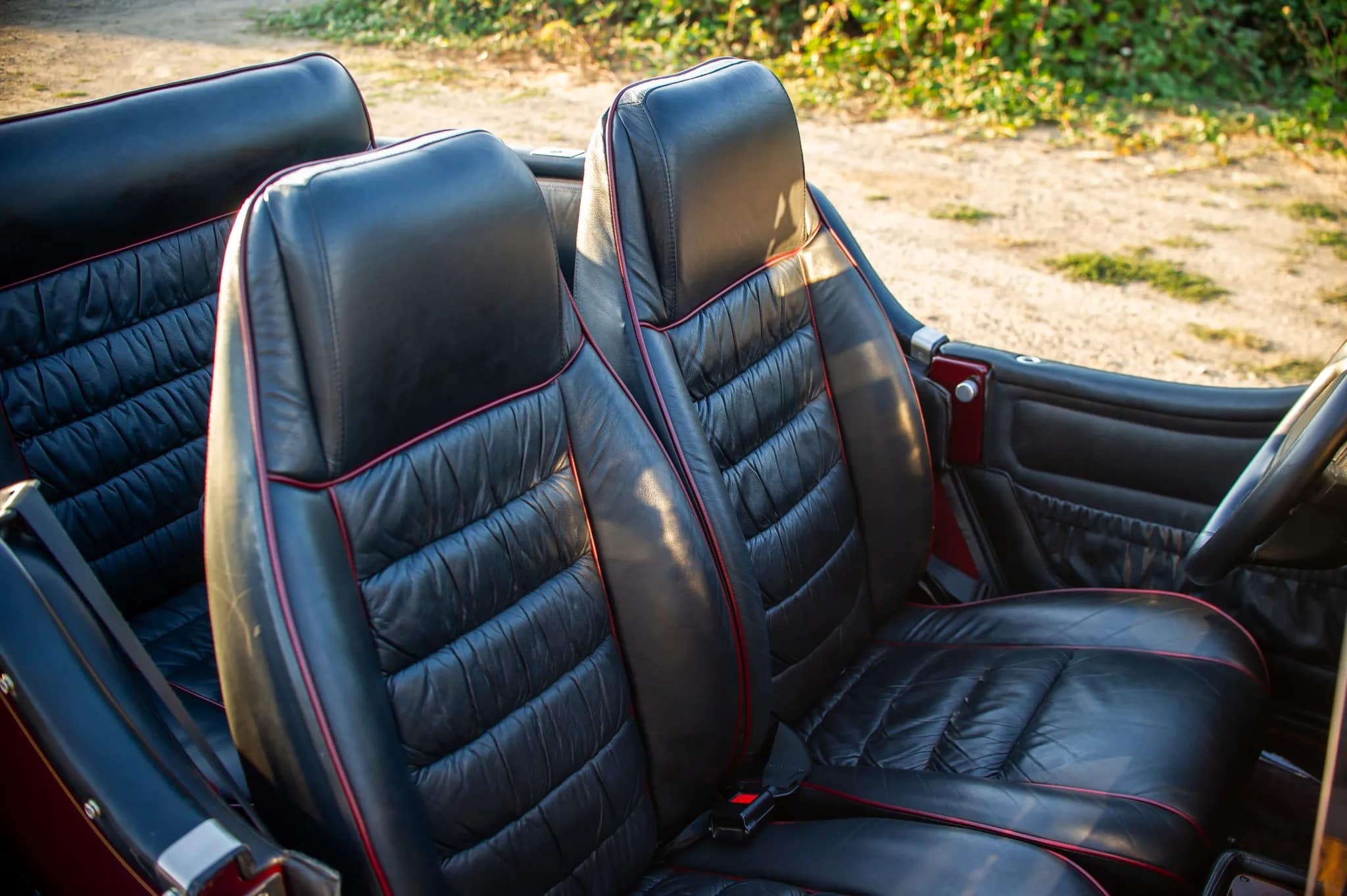 Il y a des freins à disque aux quatre roues, des marchepieds, des combinés de suspensions filetés réglables, une direction trop assistée pour être honnète, des compteurs Classic Instruments trop modernistes, des garnitures en faux bois plastique, la climatisation et une chaîne stéréo CD Pioneer totalement inutile… La voiture a été acquise neuve en 1996 et revendue en 2022. Un entretien basique a été effectué en 2023, consistant avant-tout à réparer une fuite de carburant et à ajuster la manette des clignotants en vue d’une revente spéculative… Elle a été annoncée 150.000 $ comme “collector”, édition limitée…