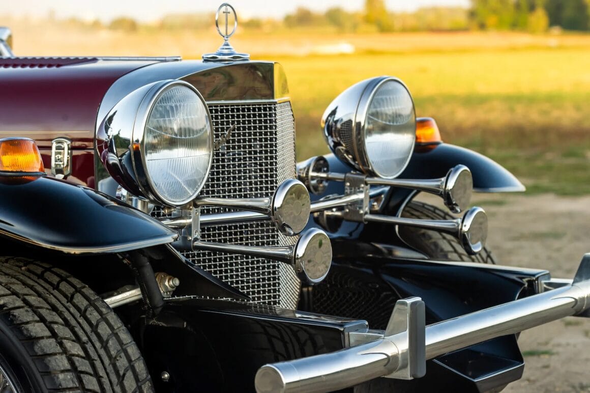 En faits et réalité, la première fausse vieille est l’oeuvre de Zagato recréant début des années’60 la fameuse 1750… Excalibur est venu ensuite et il s’avère que ce serait Guy Storr qui aurait proposé à Brook Stevens le projet d’une Réplique de Bugatti 35 qui a muté en Mercedes SSK car plus “gigantesque” en taille et image. Toujours est-il que ces projets étant refusés par Studebacker, Brook Stevens a décidé de l’exposer son “Excalibur” dans le salon de l’auto national… La marque existait déjà à son nom et initiative concernant des voitures de course équipées de moteurs Jeep… Brook à recréé une Mercedes SSK.
