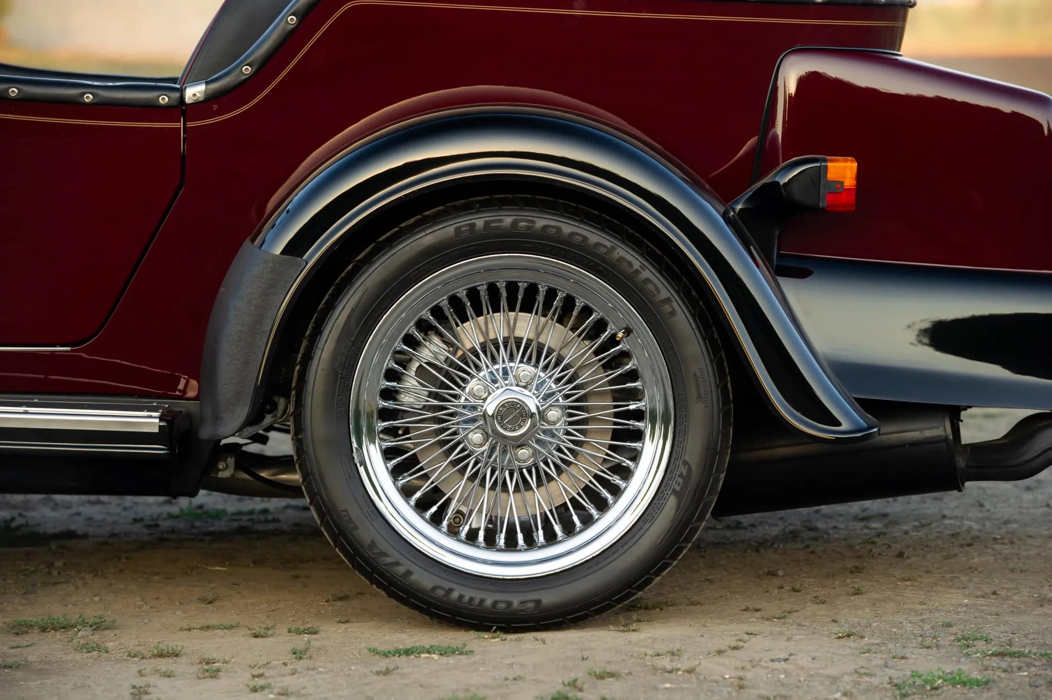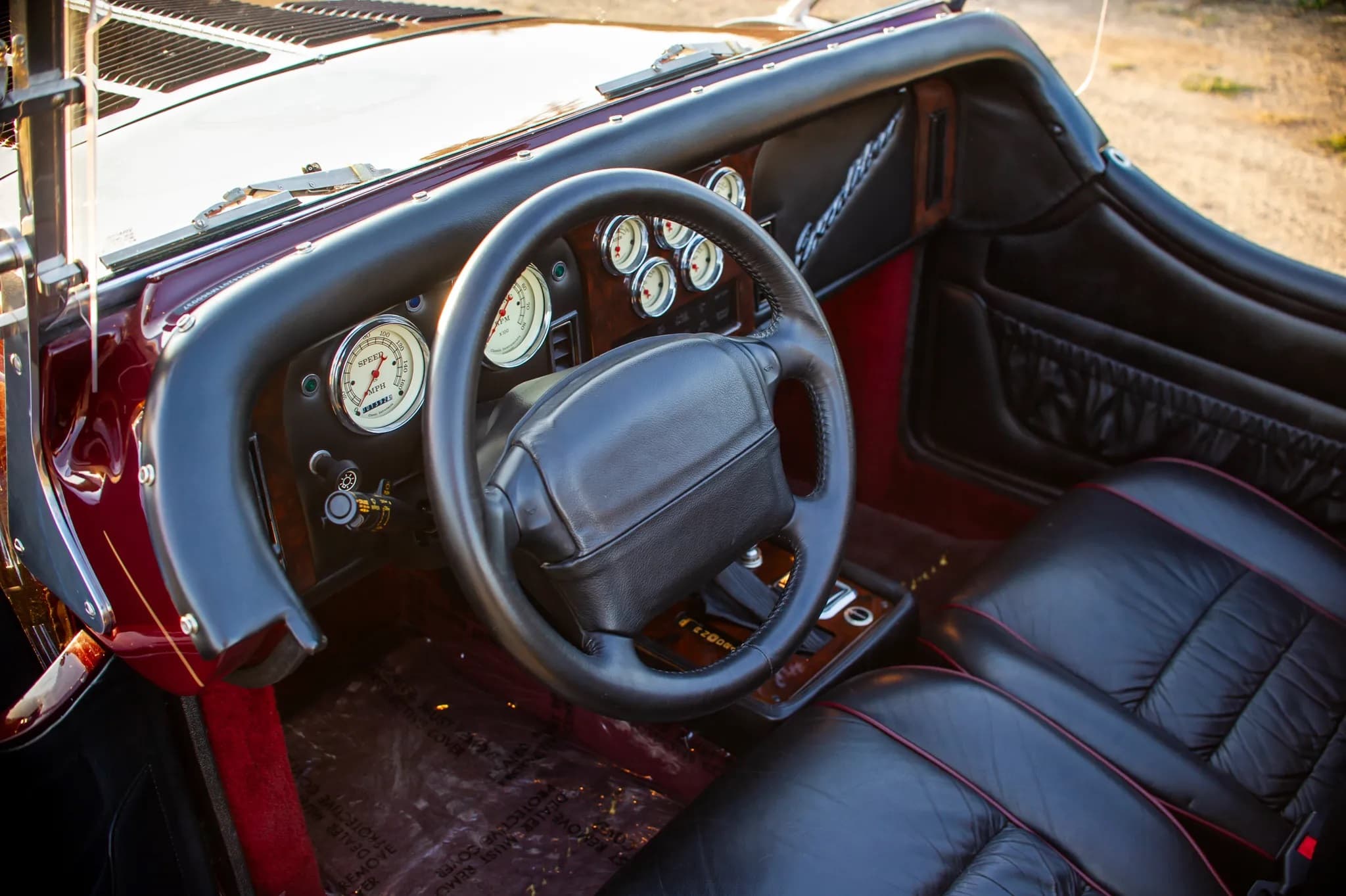 Cette Excalibur Phaeton de 1996 est l’un des 100 modèles en édition limitée construits au milieu des années 1990 après que la production ait été relancée sous différents propriétaires. La voiture est finie en bordeaux et noir sur une sellerie en cuir noir et est propulsée par un V8 Corvette LT1 de 5,7 litres associé à une transmission automatique à quatre vitesses et à un différentiel à glissement limité. L’équipement comprend une capote noire, des panneaux latéraux, des jantes à rayons de 17 pouces enveloppées de pneumatiques modernes à profil bas qui ne cadrent pas du tout avec l’esprit original…