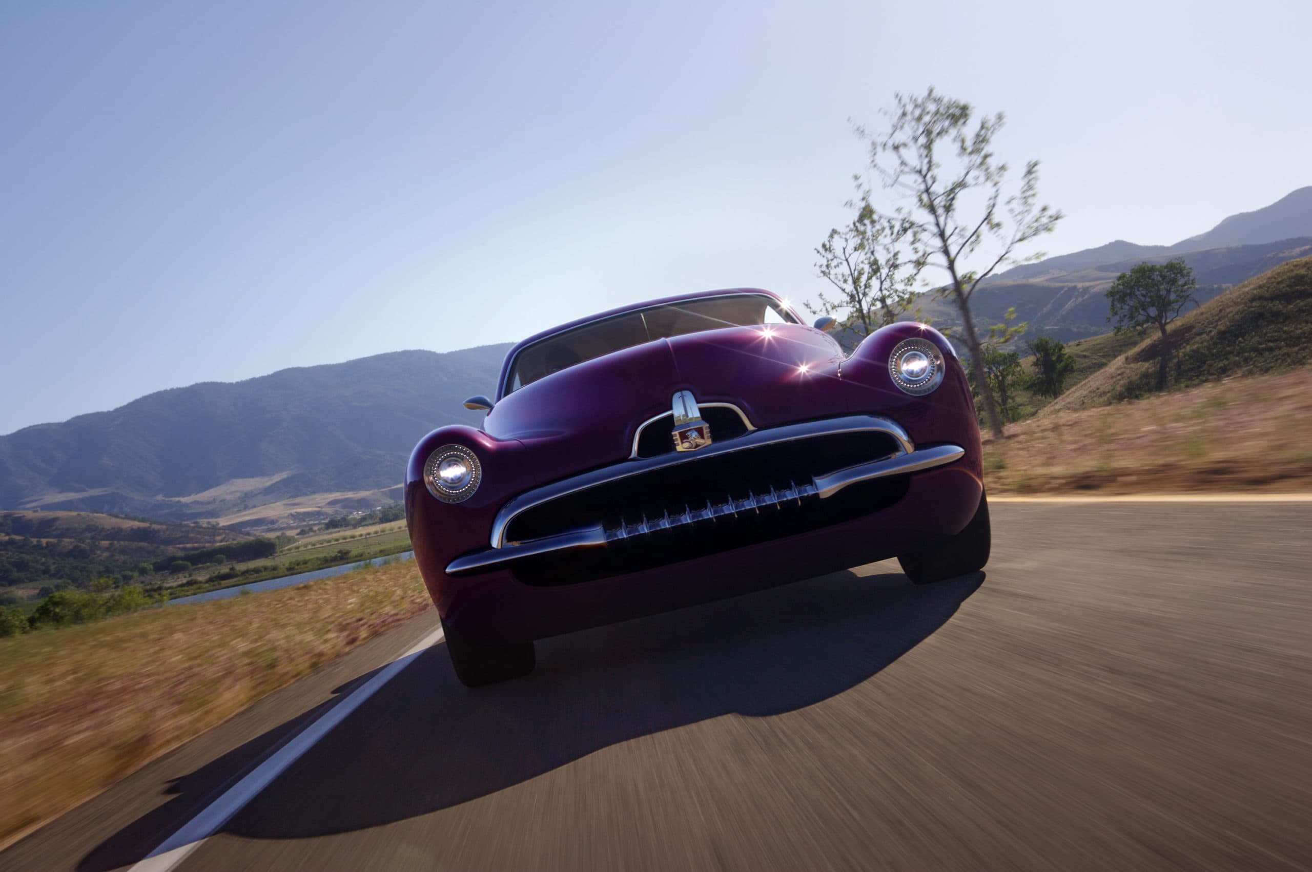 Le style, synthèse du design des années ’30 et ’50, hurlait “Hot Rod !” à qui voulait l’entendre (les visiteurs du show automobile de Sydney)… de quoi faire fumer les magnifiques roues pleines en aluminium de 20′ à l’avant et 22 à l’arrière… tandis qu’à l’intérieur de la chose, le style néo rétro continuait à fasciner les beaufs éberlués, mélangeant avec style bois, aluminium et cuir pour le tableau de bord, LED et bakélite pour l’instrumentation…