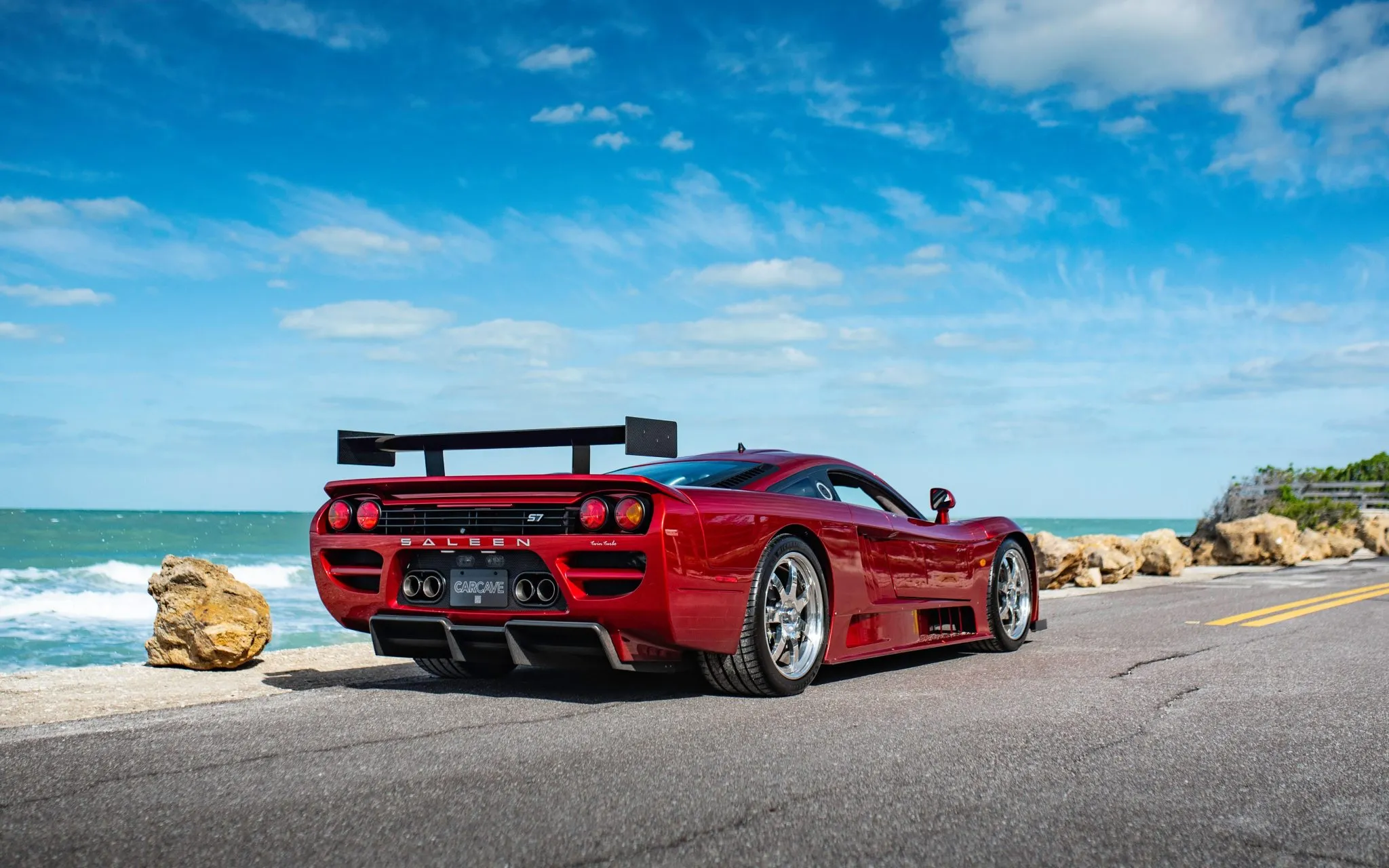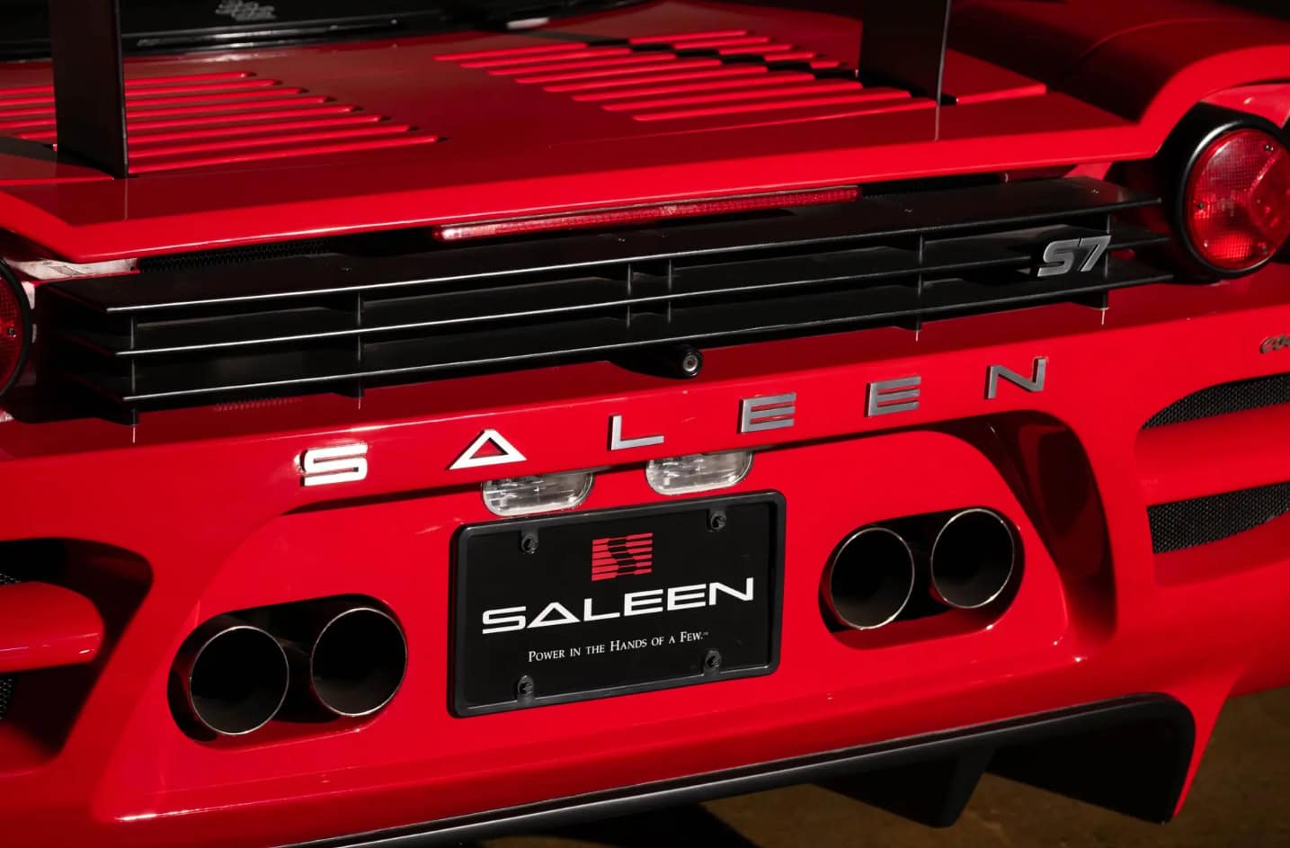 Dévoilée lors des courses historiques de Monterey en 2000, la S7 a été le premier modèle conçu et fabriqué par Saleen depuis la création de la société par Steve Saleen en 1983. La S7 a été développée en partenariat avec Hidden Creek Industries et Ray Mallock Limited du Royaume-Uni, ce dernier ayant architecturé le “Space Frame” en acier avec un renfort composite en nid d’abeille et des structures en aluminium absorbant les chocs. La S7 atmosphérique a été remplacée en 2005 par la biturbo, qui était proposée avec l’option “Competition” de 850 ou 1 000 chevaux. La carrosserie en fibre de carbone durcie à l’autoclave a été conçue par Phil Frank avec des portes papillon à commande électrique et un “évent” d’admission intégré à la ligne de toit… Voilà… Stop !
