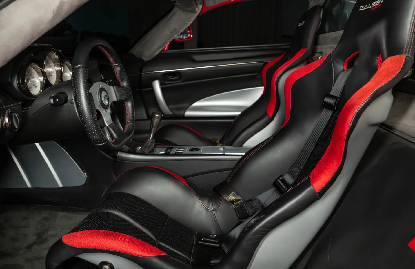 Waouwww, cela produit de l’appui à partir de 40 mph, m’a expliqué Tally. “Un nouveau carénage arrière, introduit sur les modèles 2005, a amélioré l’appui arrière et l’équilibre général de la voiture”, m’a ajouté Tally. La conduite est impressionnante pour une Supercar roulant sur des pneus à profil ultra-bas, principalement grâce à une configuration à ressorts hélicoïdaux à deux étages inspirée des motos de motocross d’usine sur lesquelles Tally avait l’habitude de travailler. Les freins inextinguibles (des disques massifs de 15 pouces à l’avant et de 14 pouces à l’arrière ) n’ont pas de système antiblocage, mais sont facilement modulables. Il n’y a pas non plus de contrôle de traction : on conduit une Saleen avec ses mains, son cœur et ses couilles dans le slip bien serré.