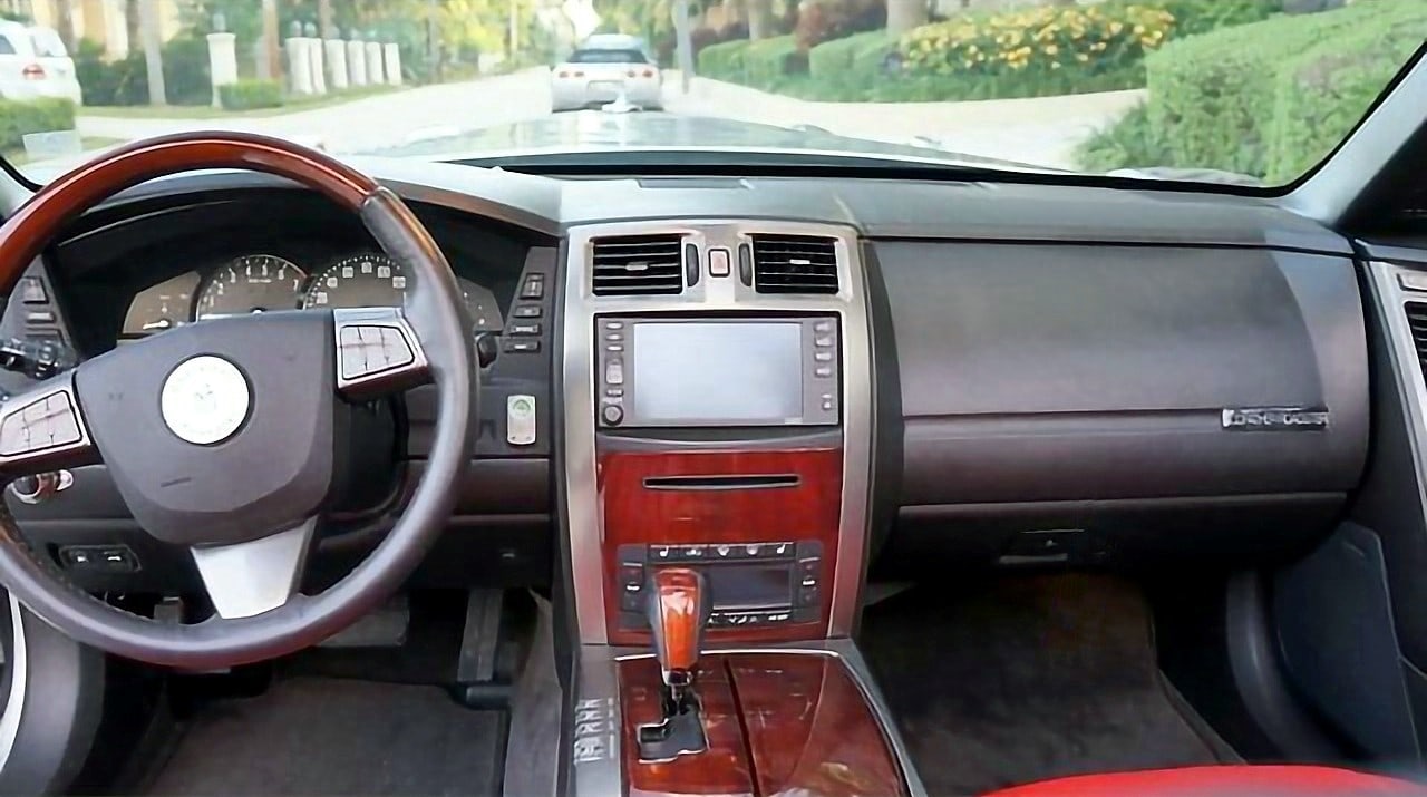 Les garnitures de la XLR en faux grain de bois (100% plastique) accentuent le tableau de bord, et tout est Cadillac XLR, le pommeau de levier de vitesses, le volant et les panneaux de porte, et la climatisation automatique à deux zones, l’affichage tête haute, l’allumage par bouton-poussoir. L’instrumentation Cadillac a été rebadgée “Bulgari” pour faire plus chic et cher se compose d’un compteur de vitesse de 160 mph, d’un tachymètre et de compteurs auxiliaires. L’équipement Cadillac était très complet et se retrouve dans cette “chose” ; Filtration de l’air, Éclairage de la zone de chargement, tapis de sol, climatisation, Appuie-tête réglables électriquement, Volant chauffant, Lampes de lecture, Régulateur de vitesse adaptatif,