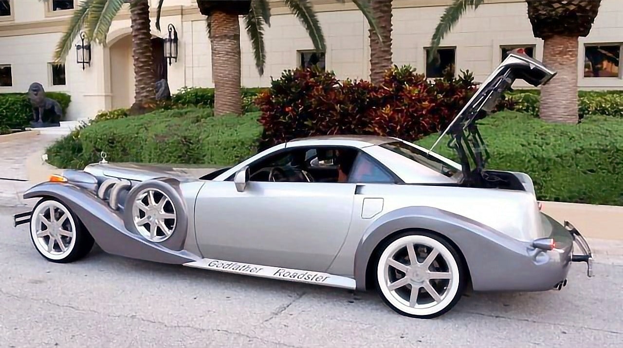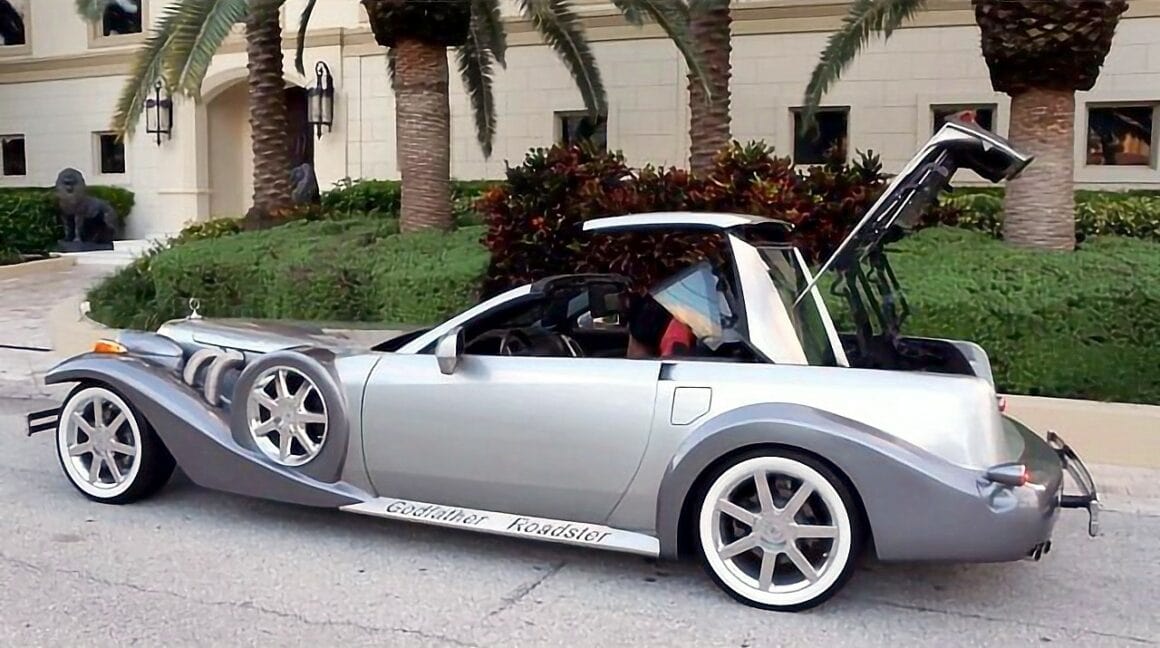 Toutes ces calculations amènent chaque Godfather Roadster à s’offrir à qui paye 150.000 $ !!!! Raisonnablement, même avec toute la quincaillerie rajoutée, c’est fondamentalement toujours une Cadillac XLR d’occasion avec un look “particulier” qui est certes tapageur, mais est très laid, limite grotesque en cause des lignes de la XLR. Les jantes en alliage poli de 18 pouces à sept rayons portent des pneus à flancs blancs. La voiture est équipée de la suspension Magnetic Ride Control et des freins à disques de la XLR. Les sièges chauffants de même origine à multi-réglages électriques sont regarnis d’une sellerie en cuir rouge.