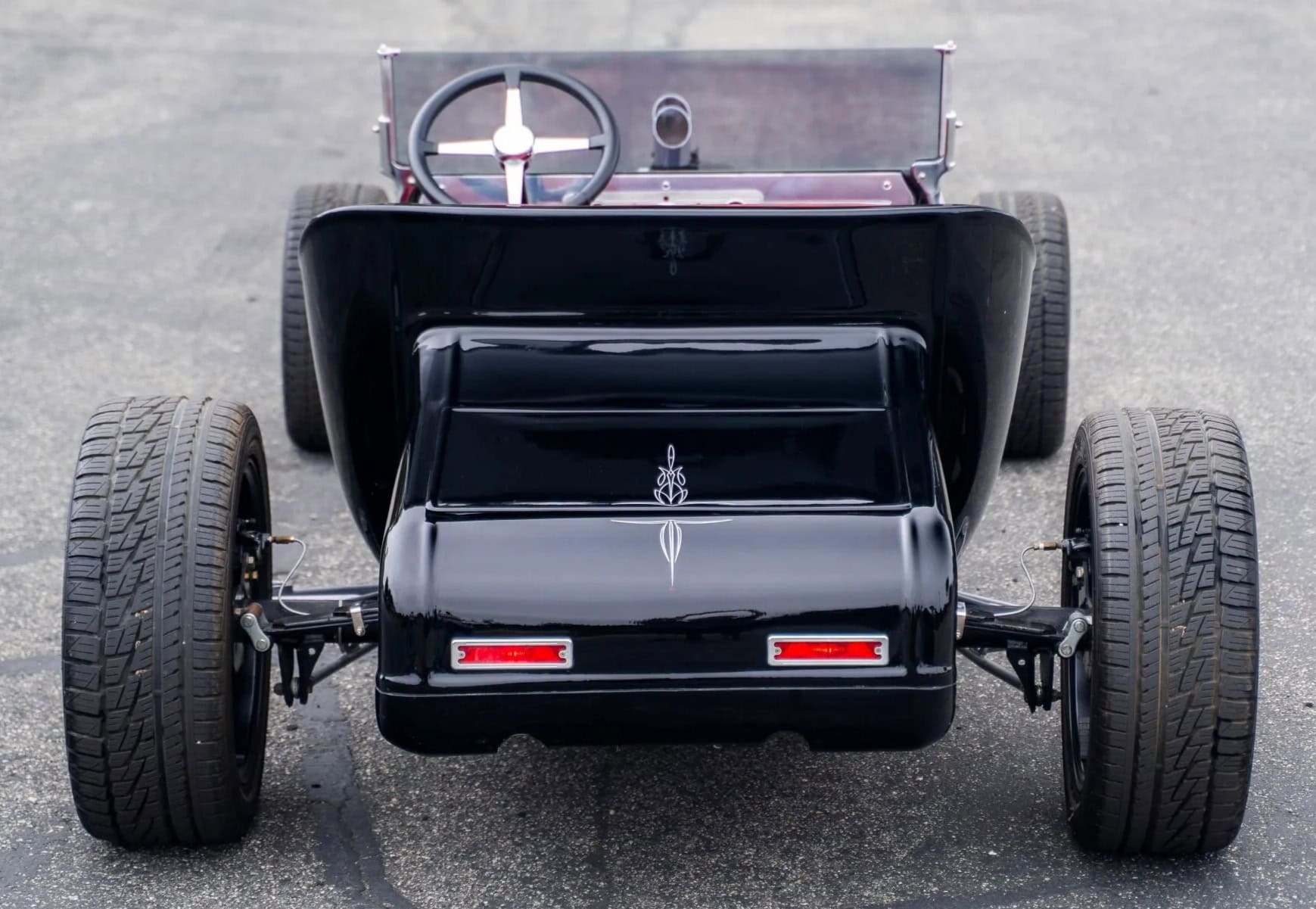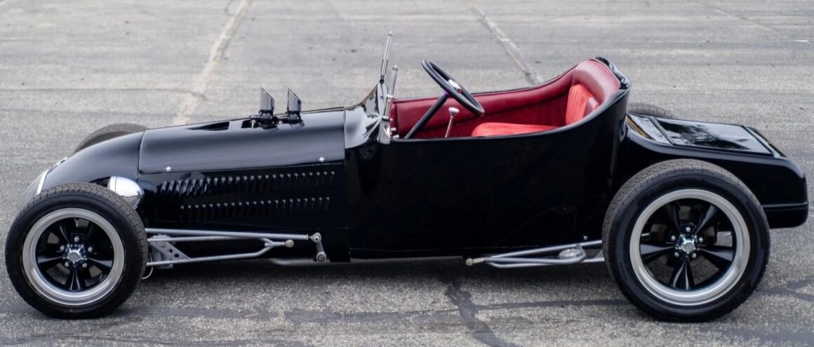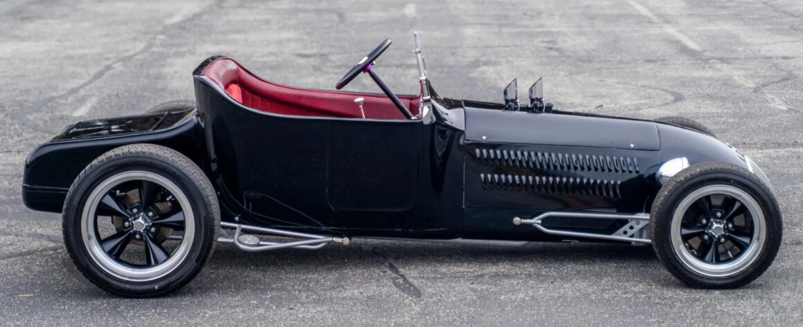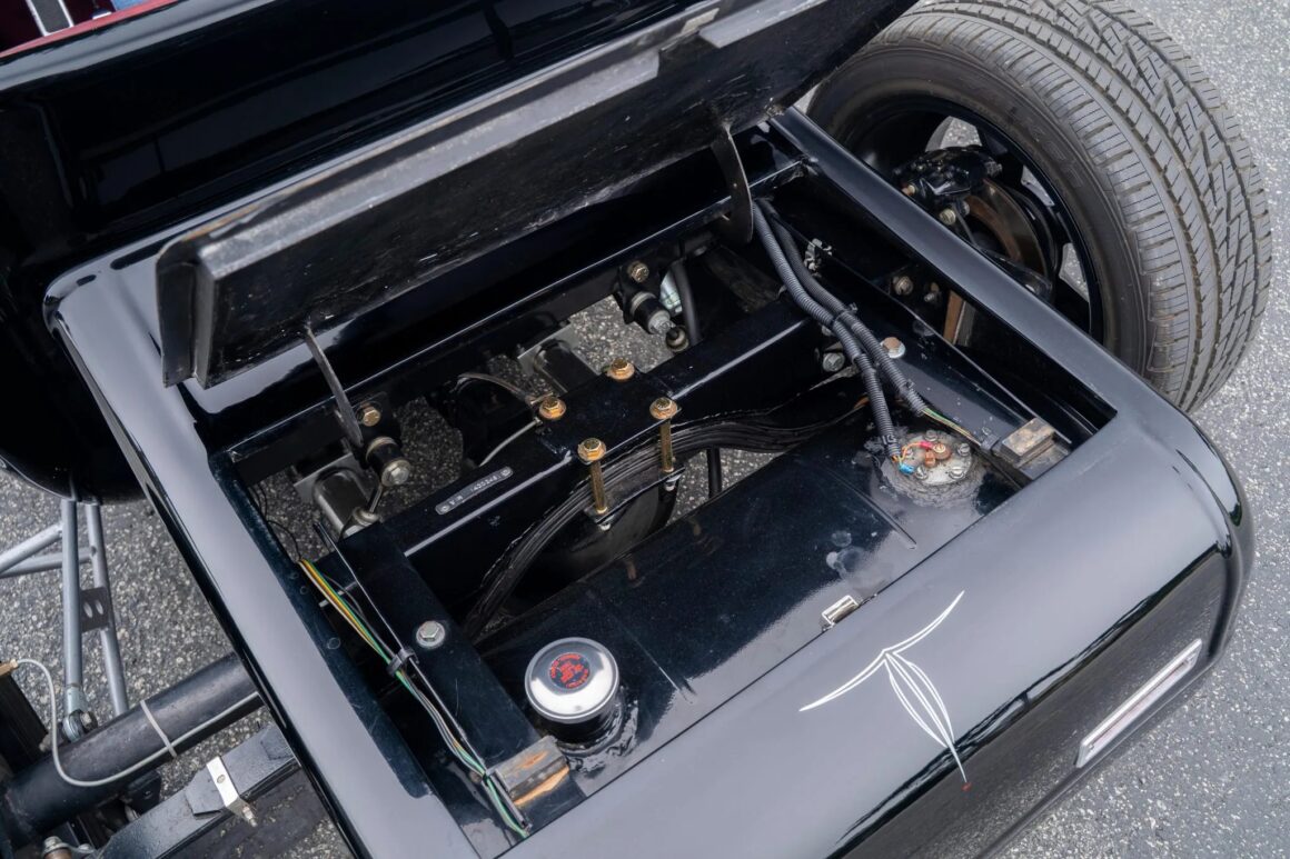 Il y a aussi un pont différentiel GM à 10 boulons. Le “Title” répertorie la voiture comme une Ford de 1926 ayant une carrosserie 1980 en fibre de verre peinte en noir avec des fioritures. Un pare-chocs avant amovible et des feux de recul “de rechange” sont inclus dans la vente qui est de 30.000$,