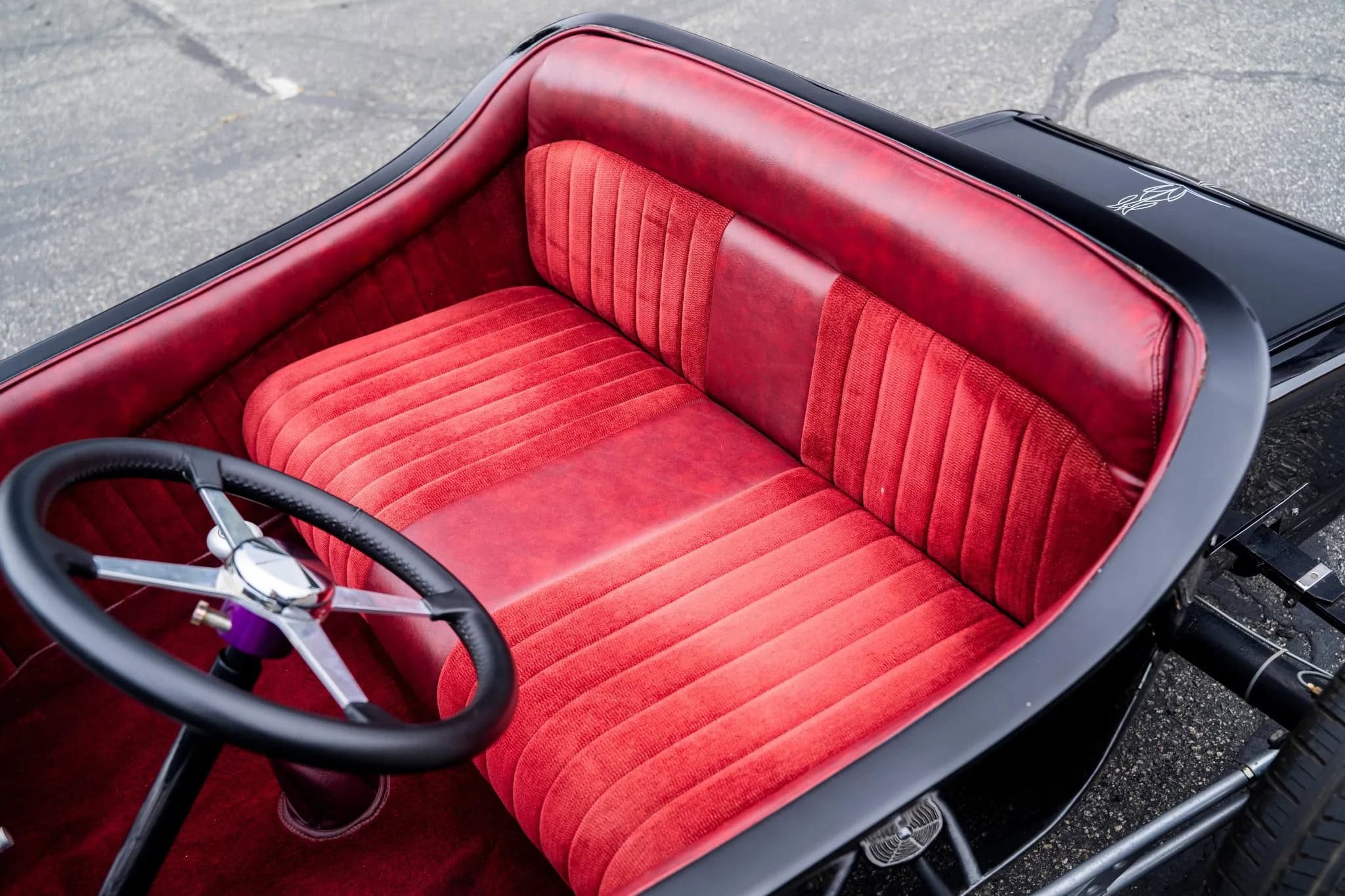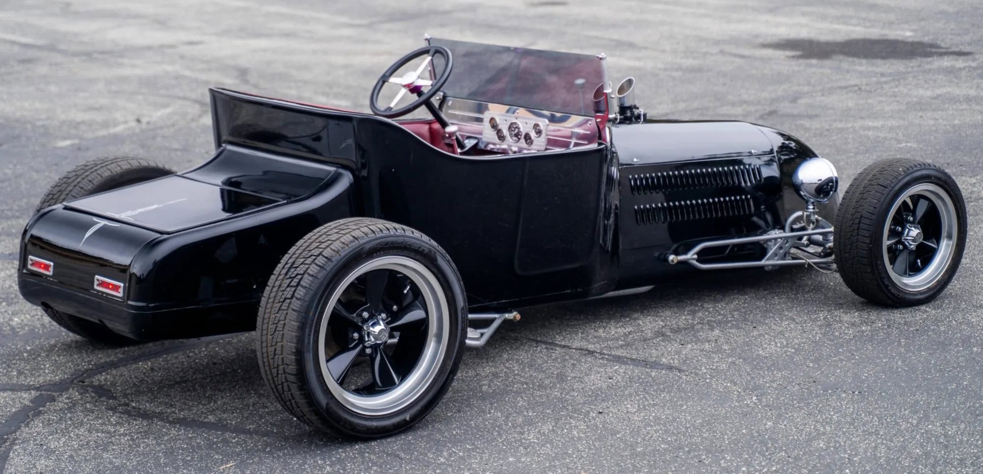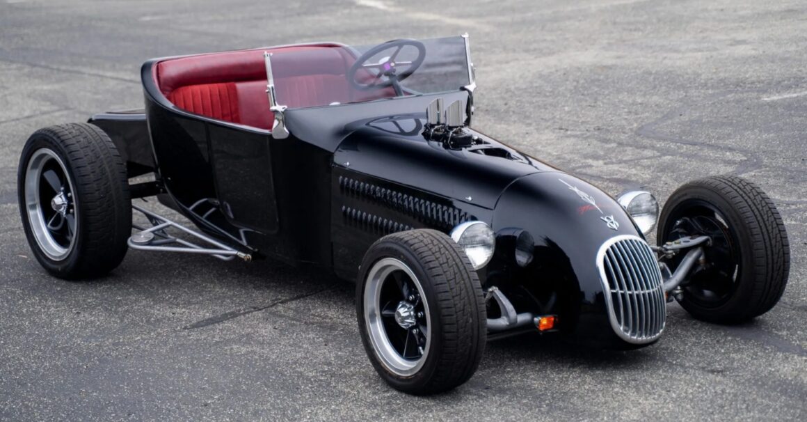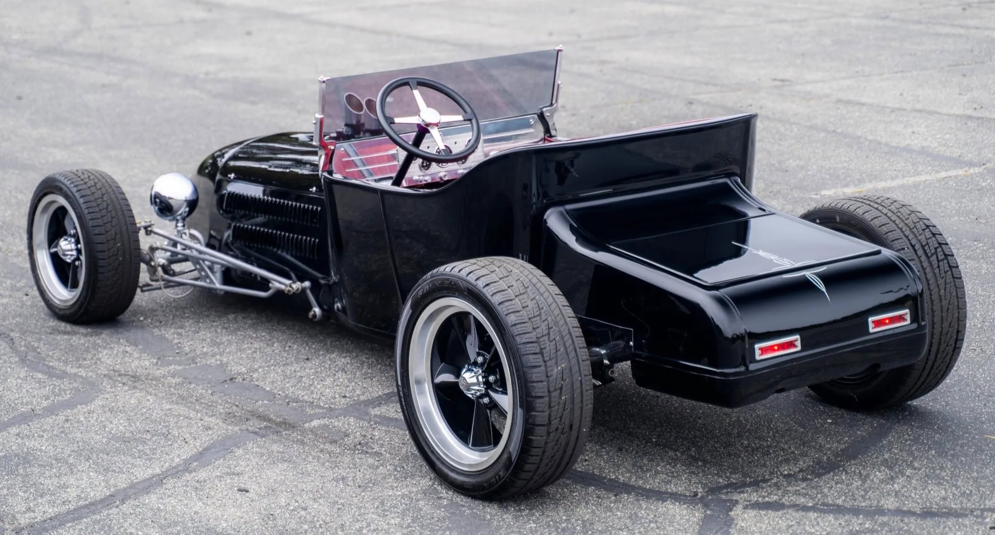 Il y a aussi un pont différentiel GM à 10 boulons. Le “Title” répertorie la voiture comme une Ford de 1926 ayant une carrosserie 1980 en fibre de verre peinte en noir avec des fioritures. Un pare-chocs avant amovible et des feux de recul “de rechange” sont inclus dans la vente qui est de 30.000$,