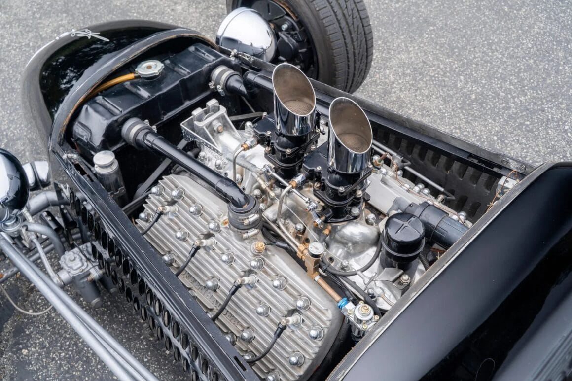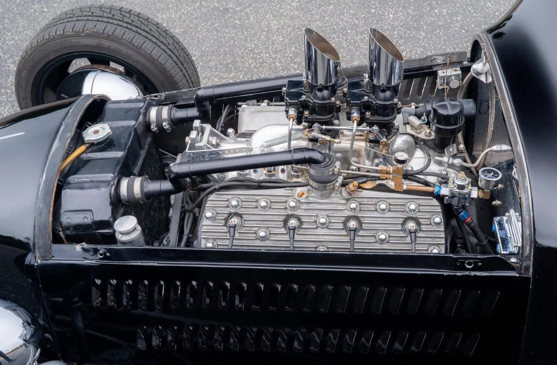 Il y a aussi des freins à disque aux quatre roues et des jantes US Mags décalées. La puissance provient d’un V8 Flathead 239ci de 1947 surmonté d’un collecteur d’admission Offenhauser, de deux carburateurs Stromberg 97 et de culasses Offenhauser, le tout lié à une transmission automatique C-4.