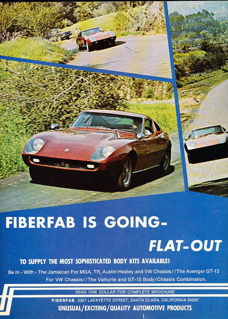 L’entreprise Fiberfab située 1870 W. Bayshore Rd., East Palo Alto, à environ 30 miles au sud du centre de San Francisco, avait ainsi été démontée/accaparée par “Maitresse Jamaïca Karen Ellwood”… puis fiscalement remontée avec ses directives et sa seule autorité, sous le couvert (fiscal) d’une société-écran contrôlée par la société Velocidad, Inc. située à Los Angeles, Californie. Fiberfab était donc officiellement un constructeur de véhicules-récréatifs-Kit-Cars-plastique aux seules mains de “Maîtresse Jamaïca Karen Ellwood” qui avait le sens des affaires, également avec des clients multimillionnaires comme Elvis Presley, mais s’organisait pour payer un minimum d’impôts avec divers paravents fiscaux !