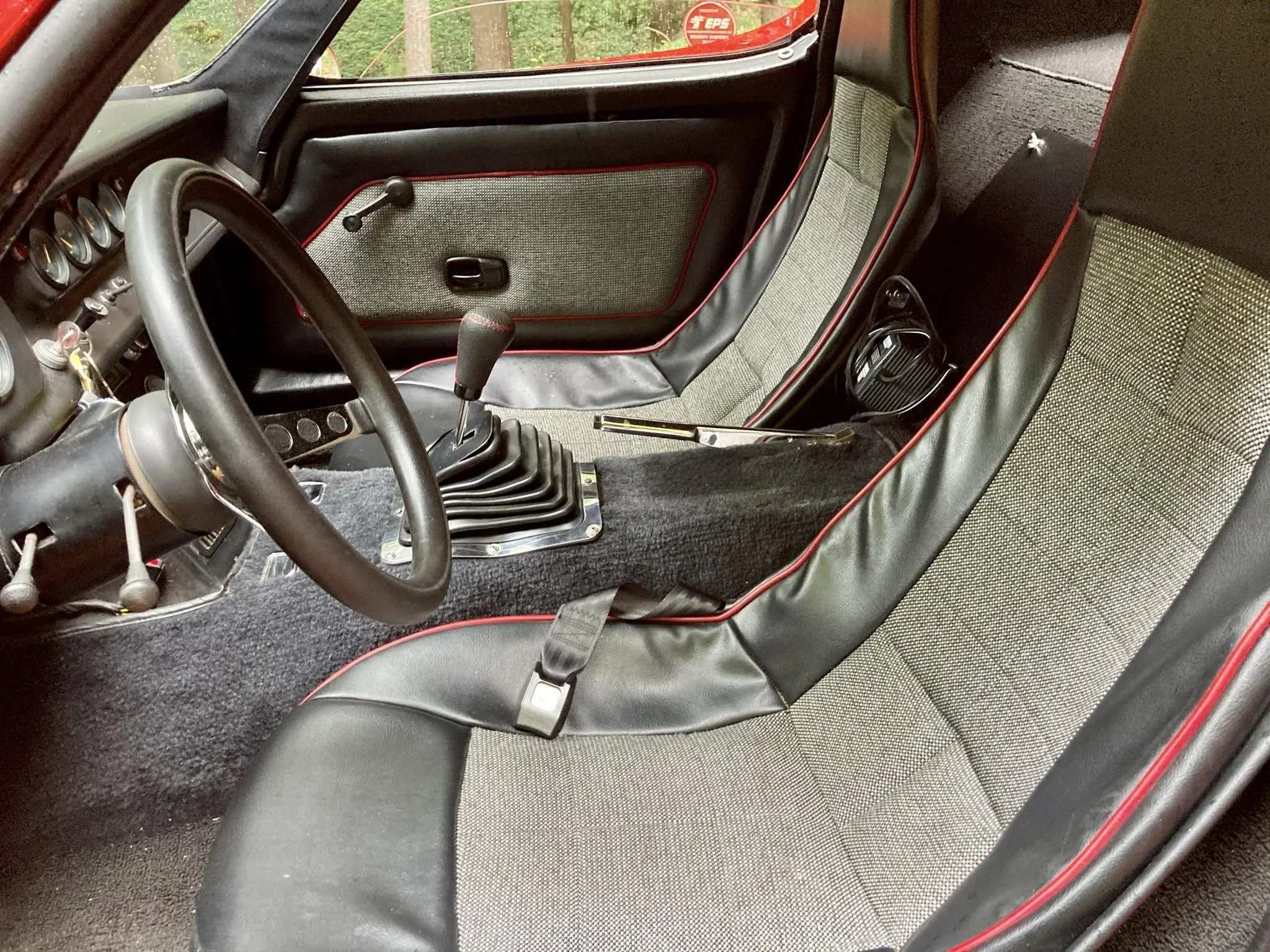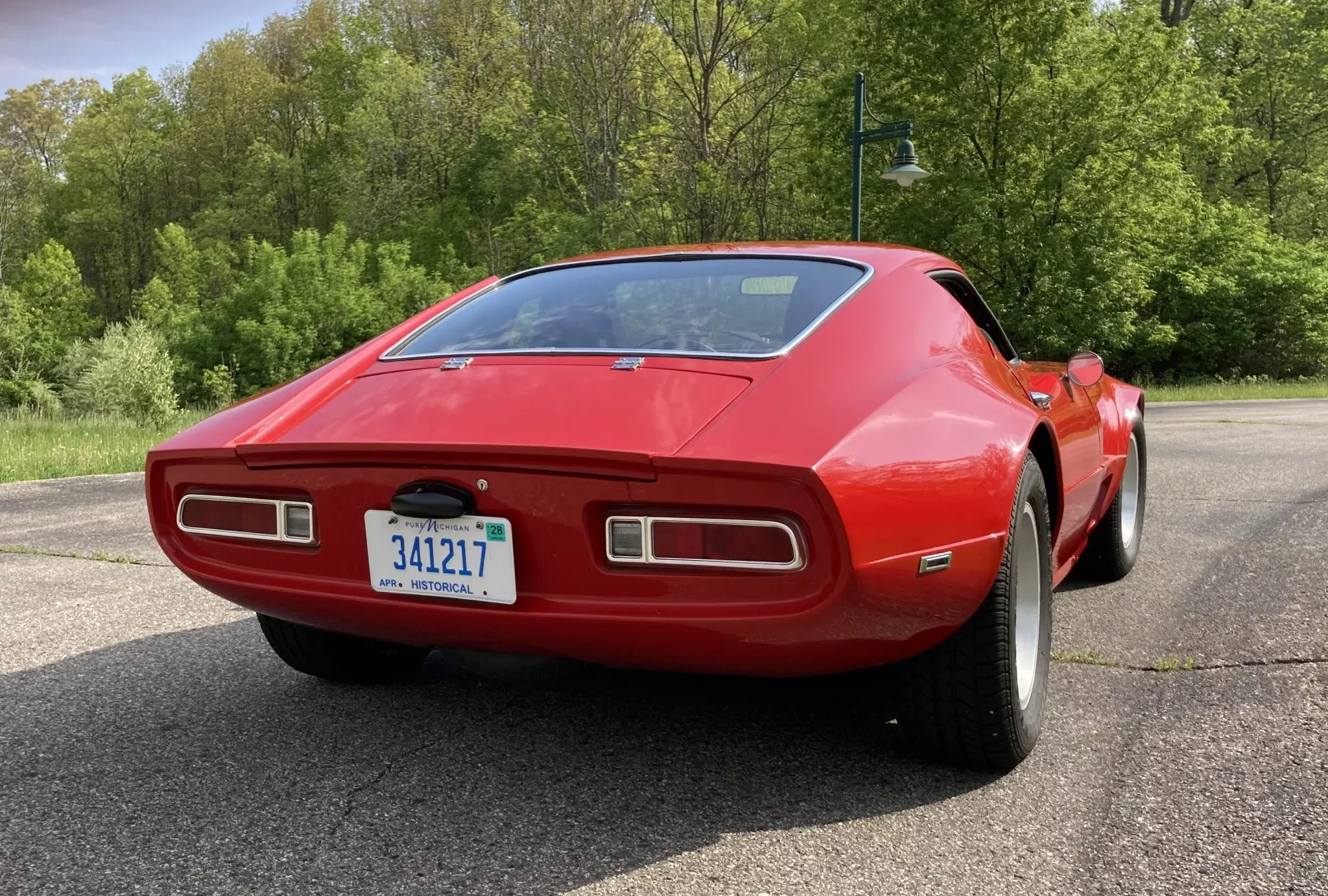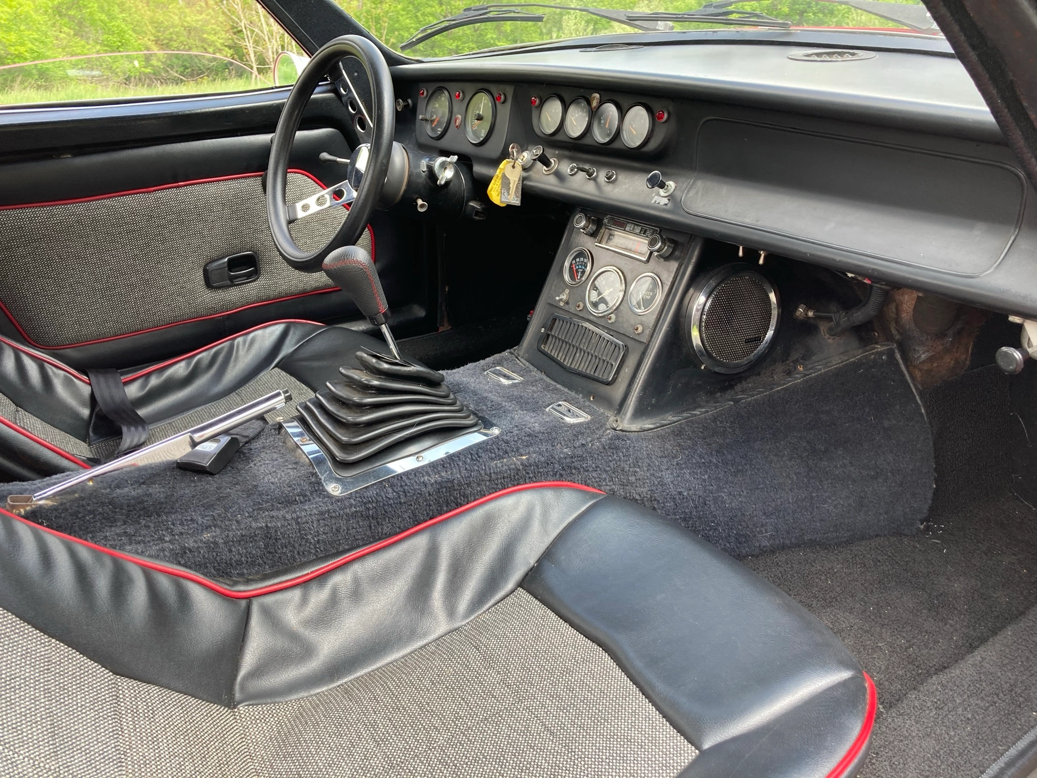 La carrosserie en fibre de verre de la Jamaïcan de cet article est finie en rouge-Lamborghini, elle a une sellerie en vinyle noir et en tissu, est équipée de rétroviseurs latéraux chromés, de jantes Enkei de 15 pouces chaussées de pneus Mastercraft Avenger G / T 235/60 et d’une radio AM/FM à bouton-poussoir. L’intérieur de la voiture (spartiate) est équipé au minimum suivant les normes basiques du monde des voitures en kit ! Le compteur kilométrique indique un peu plus de 13.000 miles, mais le kilométrage réel est inconnu. Le V8 Chevrolet est surmonté d’un carburateur Quadrajet à quatre corps.