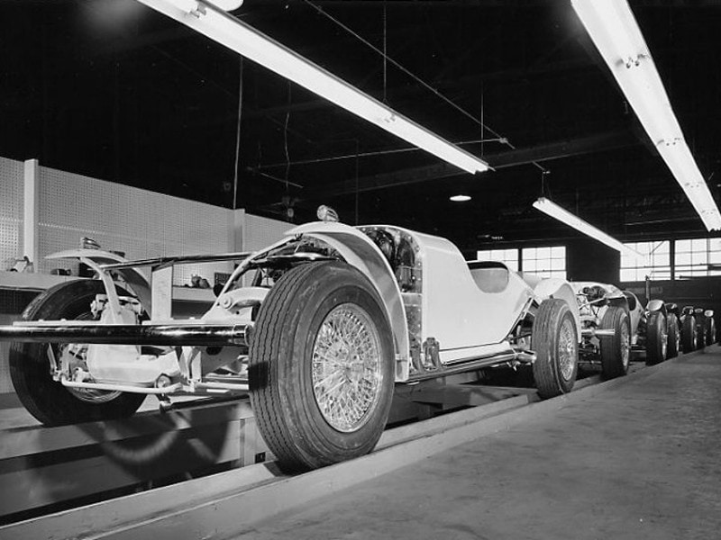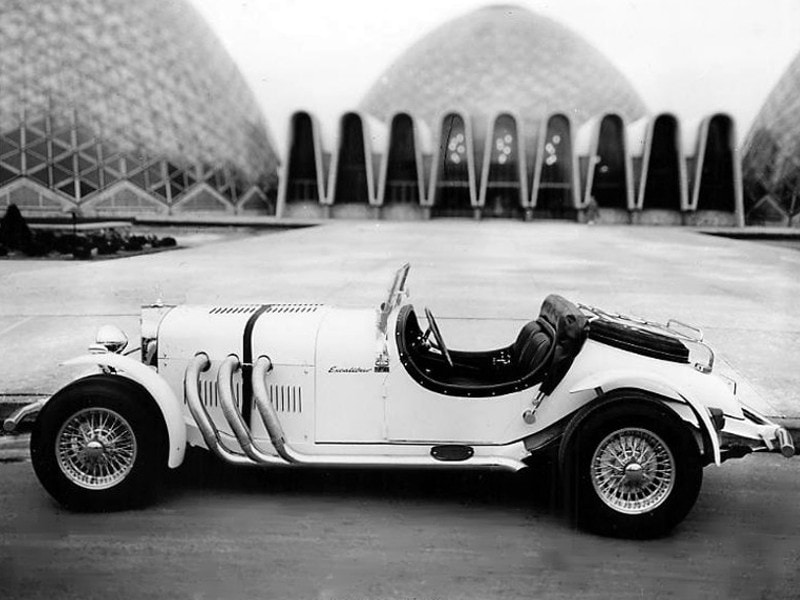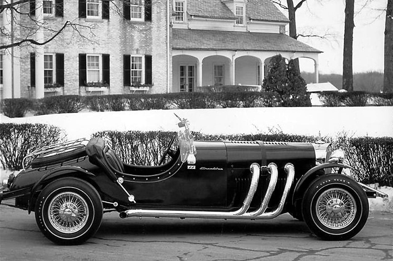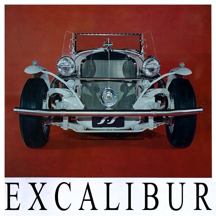 Cette incroyable automobile était pourtant un pur “Bitza“, construit de bric et de broc, s’inspirant d’un modèle d’avant guerre, en plein milieu des années soixante, années tournées vers l’avenir et non vers la modernisation du passé… Brook Stevens va alors créer une usine nommée Excalibur Motor et va y place ses deux fils pour qu’ils lancent une commercialisation semi artisanale… La faillite de Studebaker permet à la famille Stevens d’acquérir à vil prix des centaines de châssis Studebaker Lark. C’est alors que le concessionnaire Chevrolet de New-York, Jerry Allen propose un contrat d’achat ferme de plusieurs dizaines d’Excalibur pour autant qu’elles soient propulsées par des moteurs V-8 Chevrolet 327ci provenant des Corvette Sting Ray… Les frères Stevens modifient les châssis et lancent la production à Mequon, Wisconsin, près de Chicago…