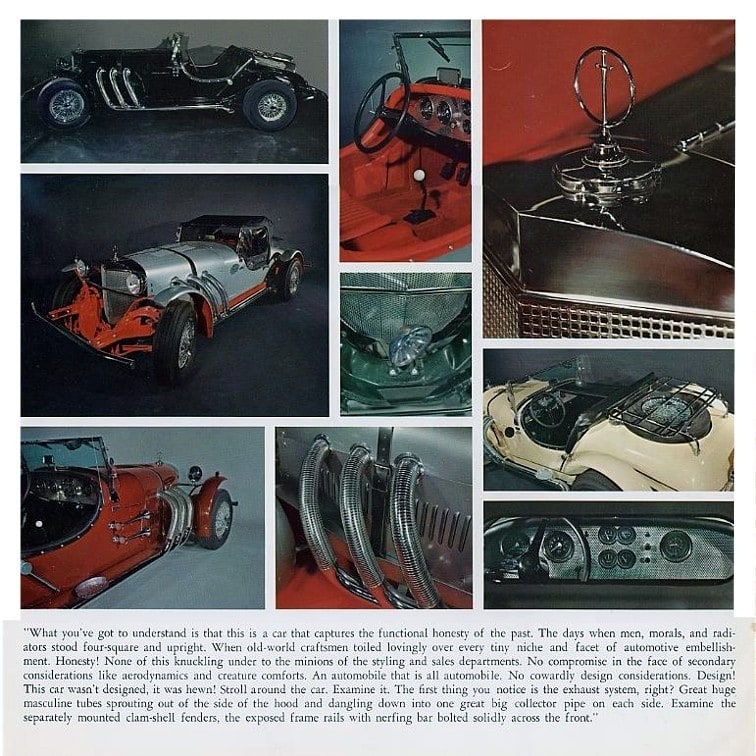 Les gens de 15/20 ans qui avaient vécu les années ’20 et ’30 en ne pouvant que rêver des magnifiques automobiles d’alors et qui dès mi des années’50, étaient confrontés à la résurrection de ces voitures vendues “comme neuves” soit “Usine” soit “en-Kit” étaient en âge et en moyens (financiers) d’acheter et de conduire une voiture du style de leur jeunesse. Beaucoup aspiraient au style du passé qui relevait du domaine du Néo-Classique, alors que d’autres voulaient des alternatives futuristes (ou en total rétro-pédalage) aux Chevy’s Corvette. Simultanément les “Bad-Boys” issus des courses de rue et sur lacs asséchés avaient inventés les Hot-Rods, qui avec l’arrivée des clones de carrosseries en polyester pouvaient construire leur Hot-Rod-Kit-Car… Dans l’euphorie générale, des carrossiers inventifs, tels les frères Barris, ont proposé aux déjantés mais fortunés Hollywoodiens, de personnaliser leurs nouvelles voitures… C’était un tournant historique de l’histoire automobile américaine !