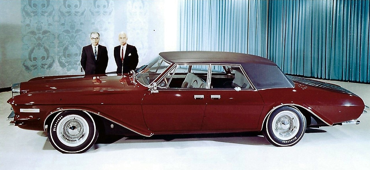 À cette époque, Exner était fraîchement disponible pour concevoir comme il le voulait. Il avait été licencié de Chrysler après des désaccords avec la direction sur l’abandon de ses thèmes de style toujours plus farfelus, en particulier en ce qui concerne la Chrysler Imperial ! Exner a incorporé une société de design en son propre nom en 1963 et, à la fin de cette année, a présenté une série de ce qu’il a appelé des “voitures de réveil” pour faire revivre les marques mortes. Les croquis de ces voitures ont été présentées dans le magazine Esquire et étaient en quelque sorte des versions Néo-Classiques des looks de Duesenberg, Packard, Mercer et Stutz.