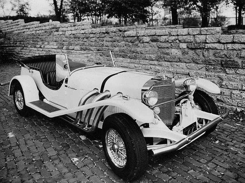 Un an plus tard, avec l’Alfa-Roméo 6C-1750 “Gran Sport” réplique de Zagato en tête, en 1964, Books Stevens propose à Studebaker de réaliser une Mercebaker reprenant le look de la légendaire Mercedes SSK des années”20 plutôt que l’Avanti proposée par Raymond Loewy. Brook Stevens n’a pas attendu de feu-vert et a construit un prototype roulant… Mercedes râle de cette copie “infamante”, et Studebaker refuse ce projet préférant l’Avanti… Brooks Stevens remet en fonction sa marque d’automobiles de courses Excalibur et rebadge sa Mercebaker du nom Excalibur et l’expose au salon automobile de Détroit en tant qu’Excalibur S1, réplique moderne néo-classique de la Mercedes SSK !