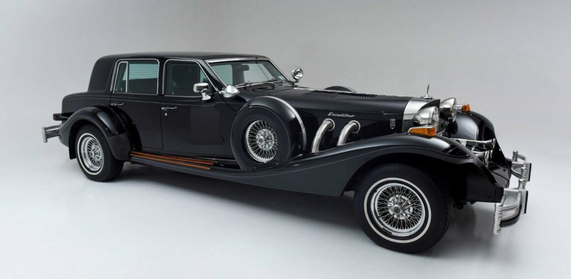 Malgré qu’un voisin, marchand de voitures spéciales, Harry Kauffman, s’évertue (en contrepartie de commissions importantes) d’assurer les ventes en proposant les Excalibur’s neuves en dessous du seuil psychologique des 100.000 US$, la firme Excalibur fait faillite pour la seconde fois et est reprise par un milliardaire allemand. Celui-ci met en chantier une nouvelle version de l’ancienne Séries III dénommée “Séries 100 Limited“, équipée du moteur V-8 Corvette C-4 injection, moteur qui équipe également les toutes dernières Séries V, toutes versions confondues. La firme se lance simultanément dans la fabrication d’une réplique de Cobra 427. Le succès ne viendra pas, la Cobra est disgracieuse, ses pare-chocs détruisent la ligne, les Series V quant-à-elles ne sont plus en phase avec le renouveau automobile. La firme Excalibur fait faillite pour la troisième et dernière fois… Les Clénet, Sceptre-Griffin, Gatsby, Zimmer, Panther vont suivre le même chemin. L’époque des Néo-Classiques se termine !